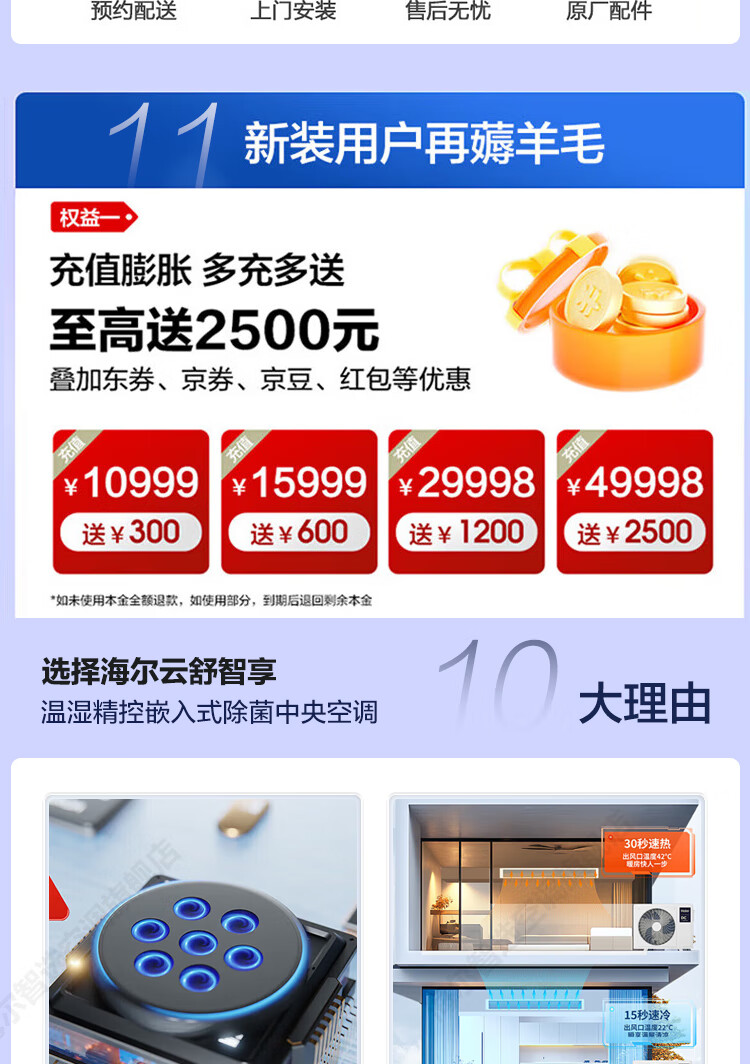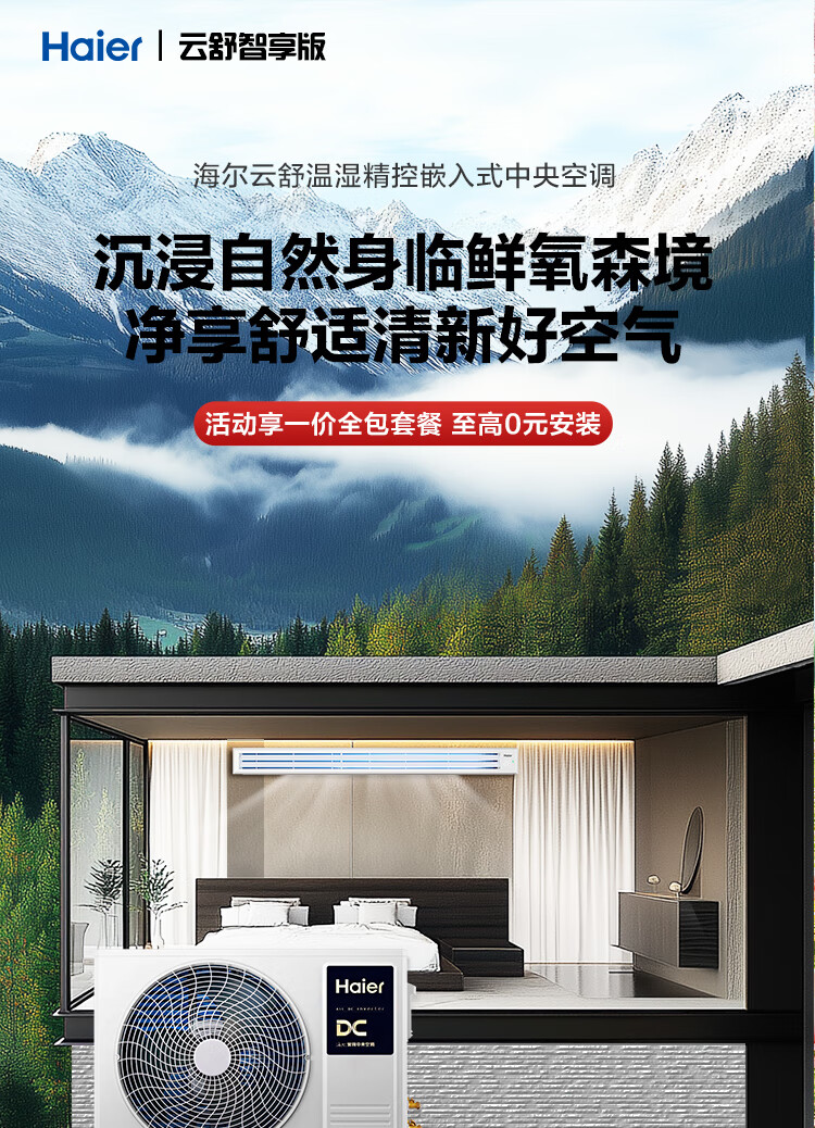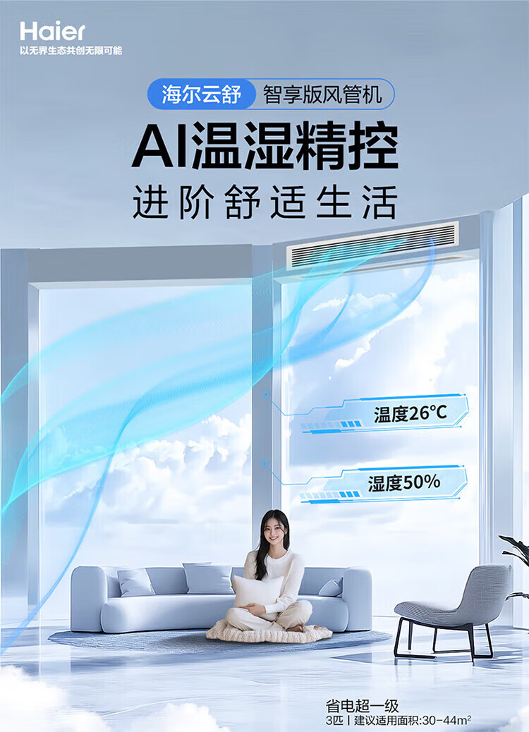 Haier central air conditioner Yunshu Zhixiang duct machine one-to-one 3 hp new first-level energy efficiency living room home embedded whole house smart connection full DC frequency conversion net power saving 15% discount when ordering 3 hp first-class energy efficiency Yunshu Zhixiang + precise temperature and humidity control sterilization + large air volume energy saving