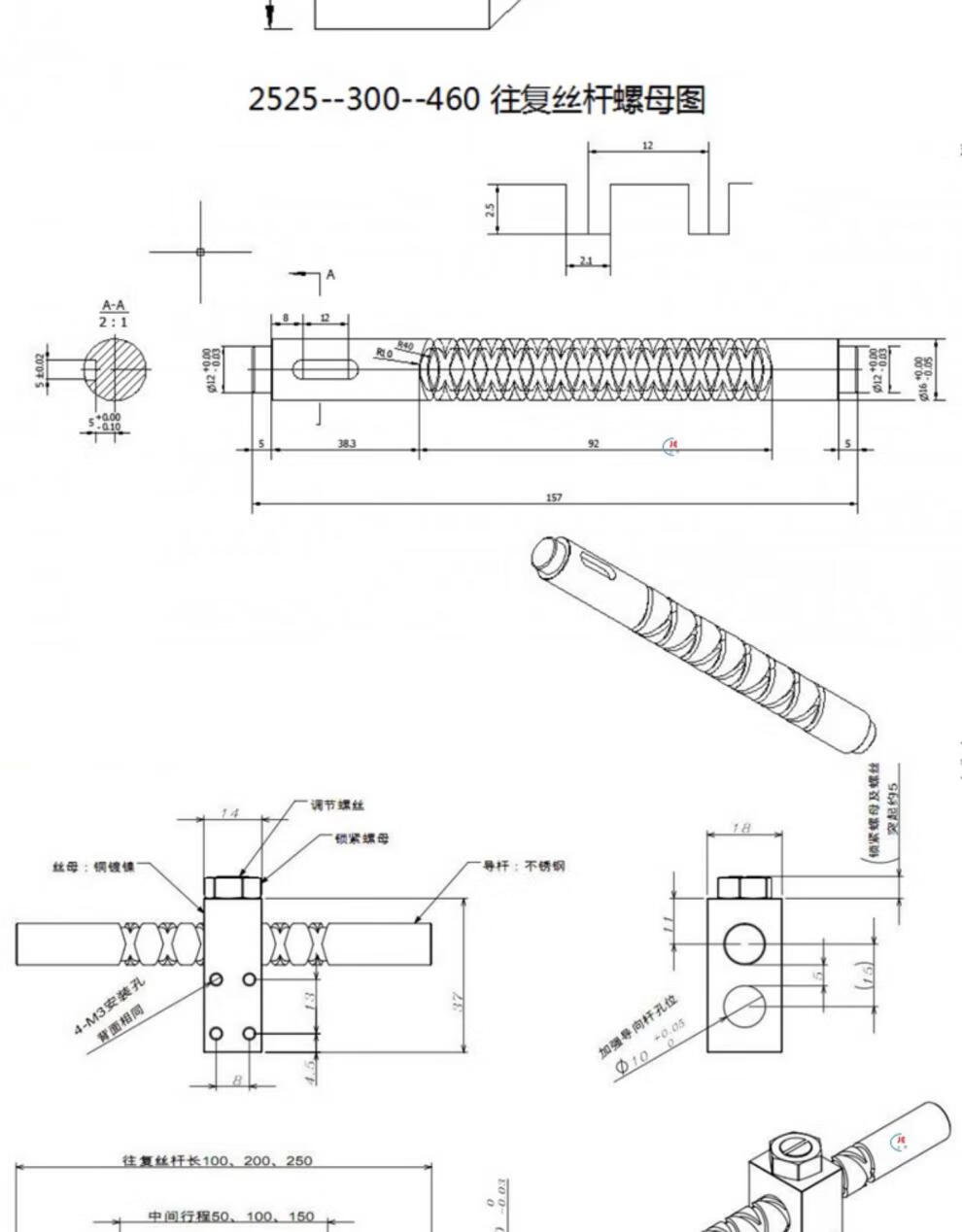 Crown reciprocating screw 10 strokes 50 80 100 120 150 180 200 220 small reciprocating shaft 5.8*4.82-28.55-54.9mm rod copper plated