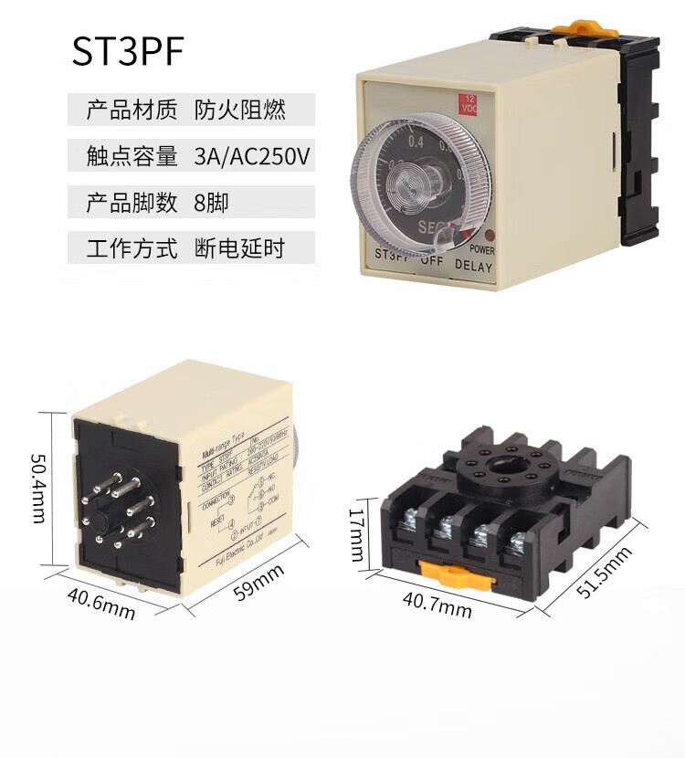 Power off delay ST3PF timing adjustable 10 seconds 60 minutes time relay AC220V DC24V DC12 1S seconds without base AC AC220V