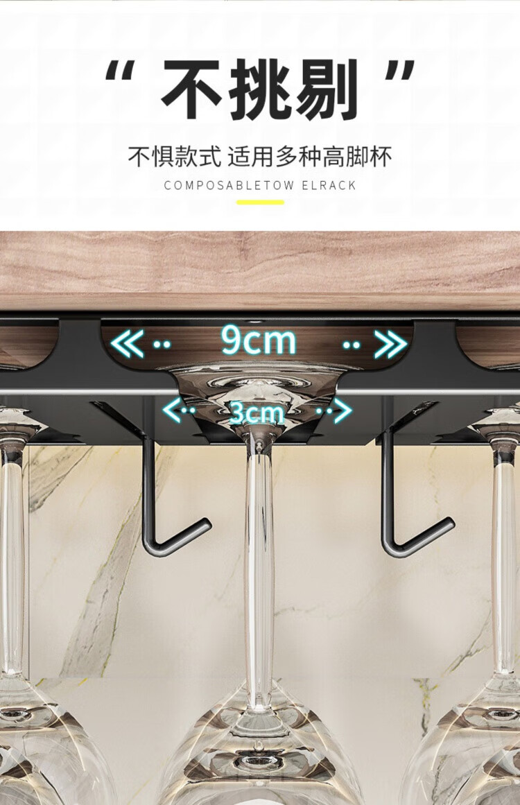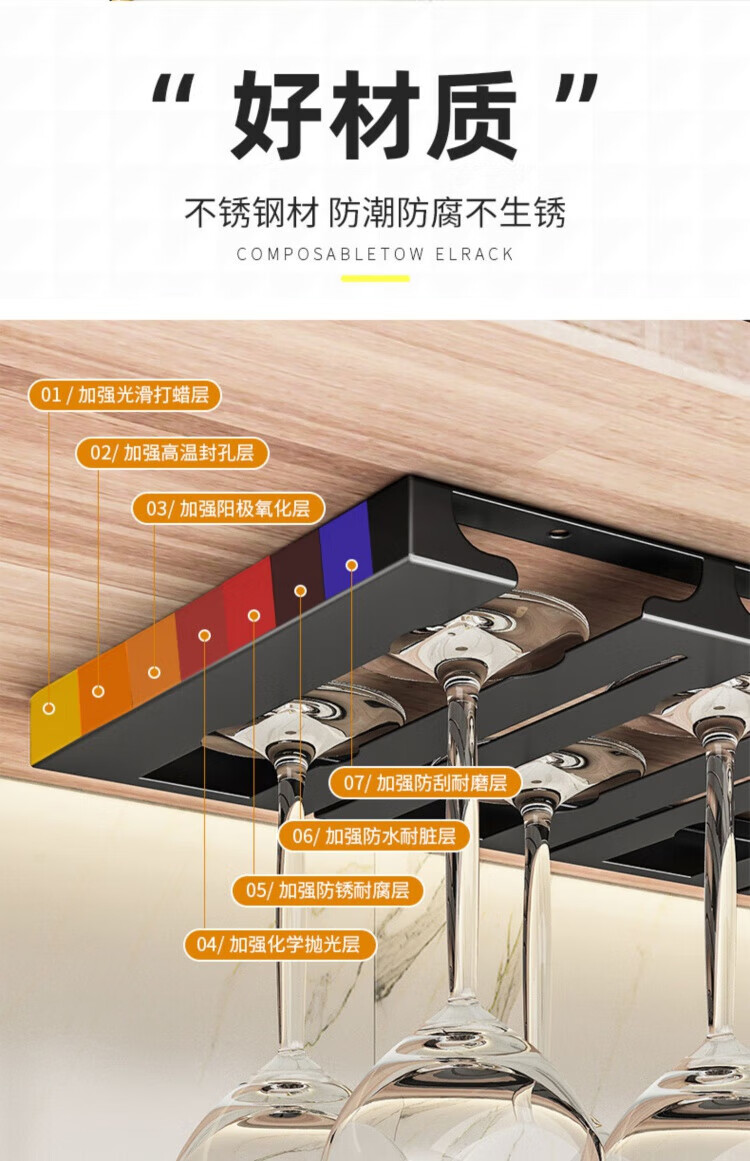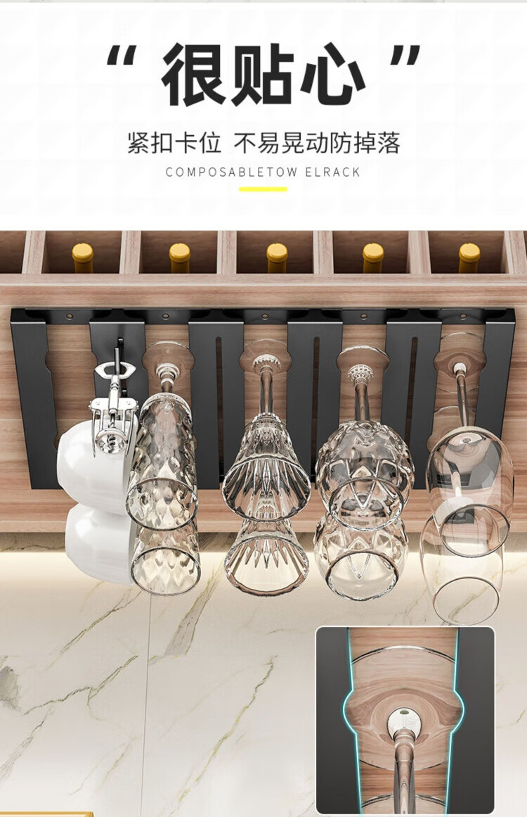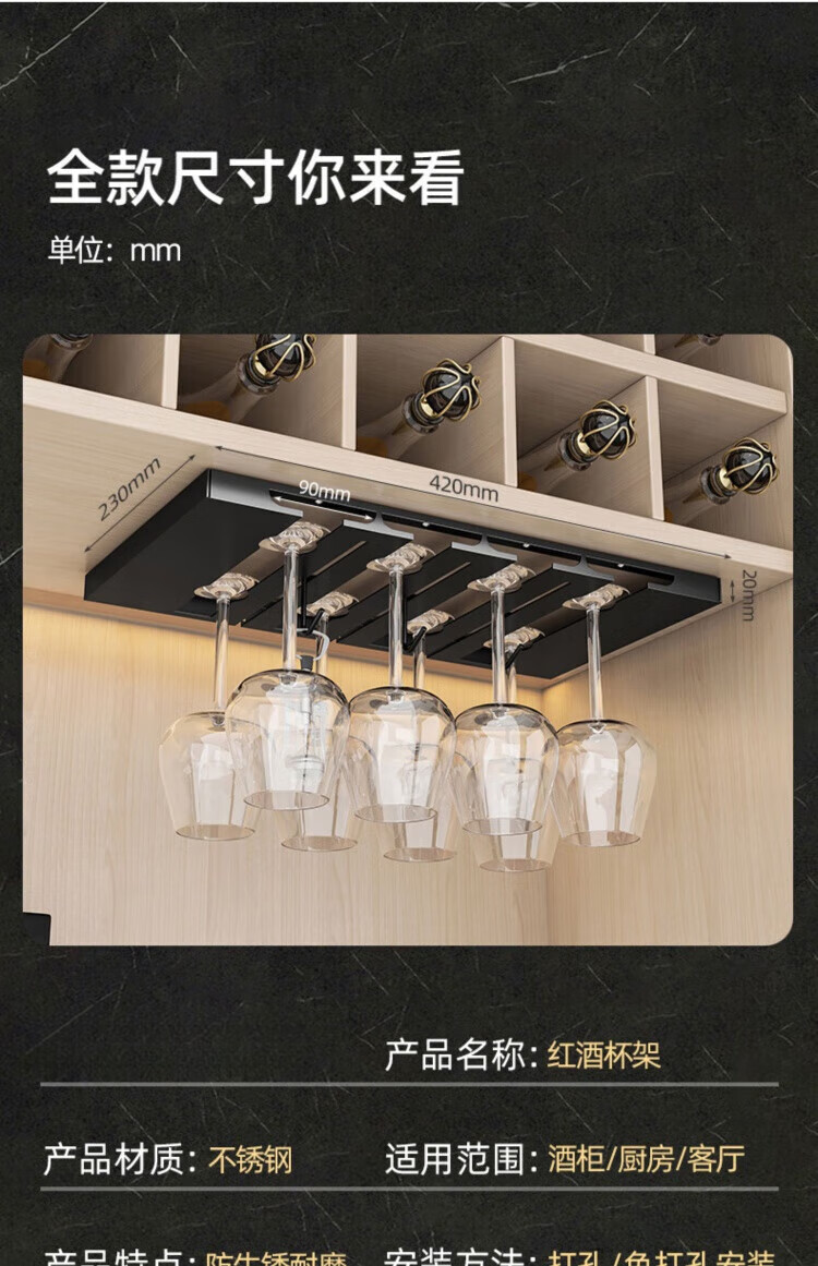 CKULH German stainless steel wine glass hanger, upside-down cup holder, goblet storage rack, home light luxury ornaments hanging, gun gray six slots + five hooks - can hang 12 cups (punch/no need to punch)