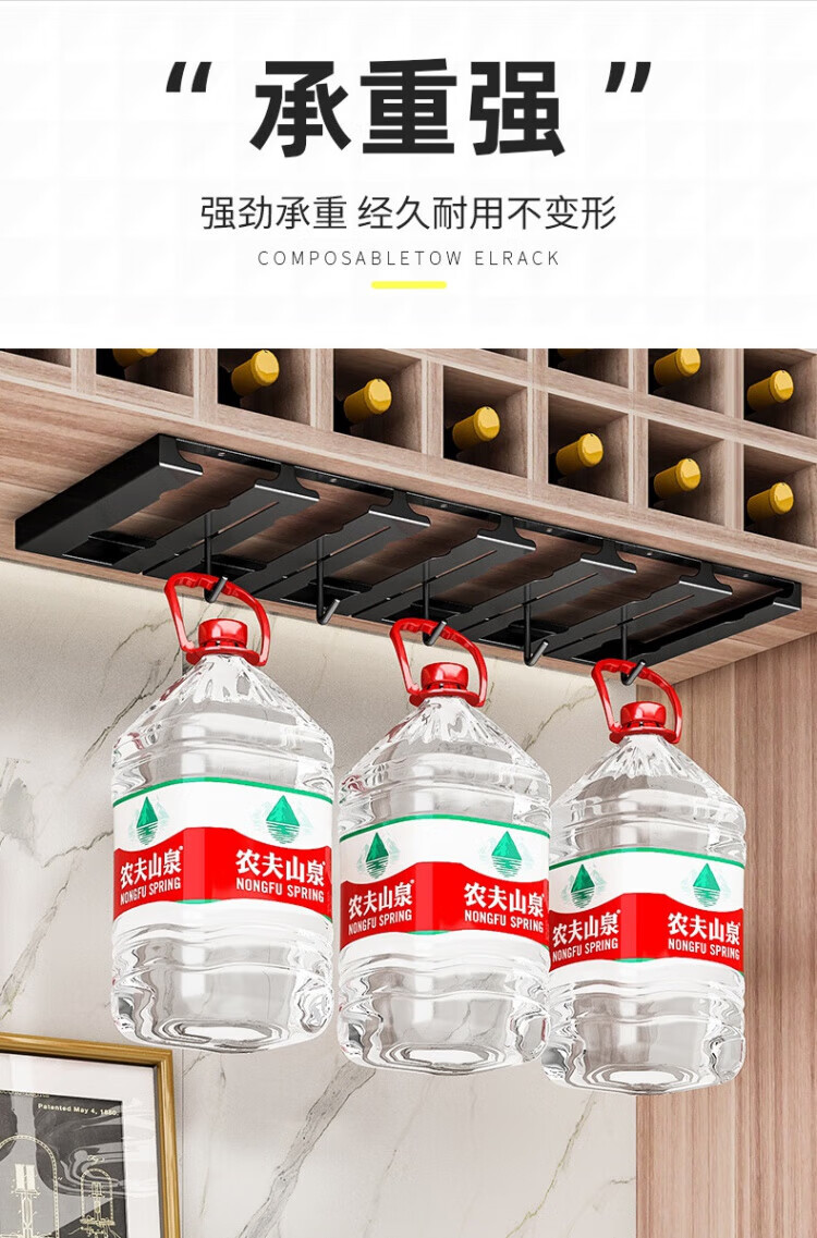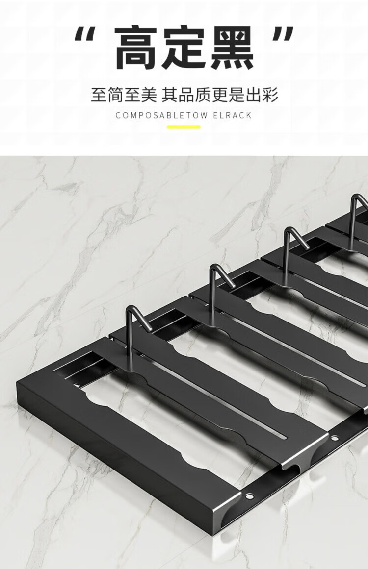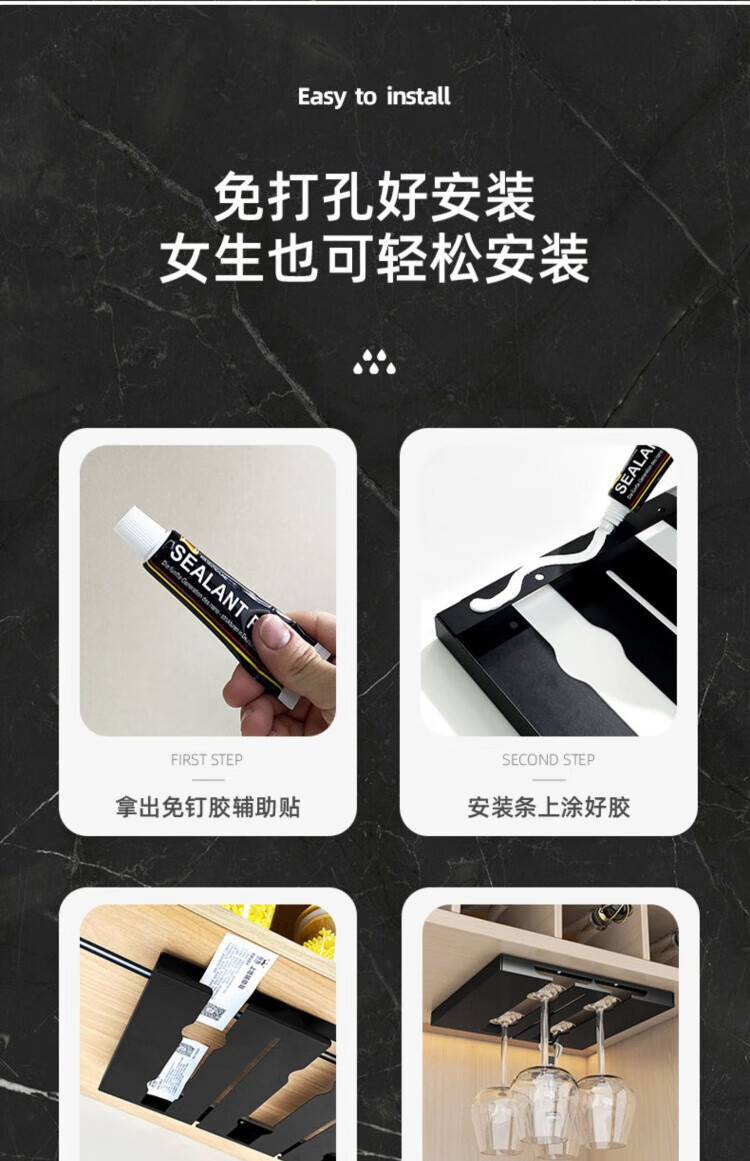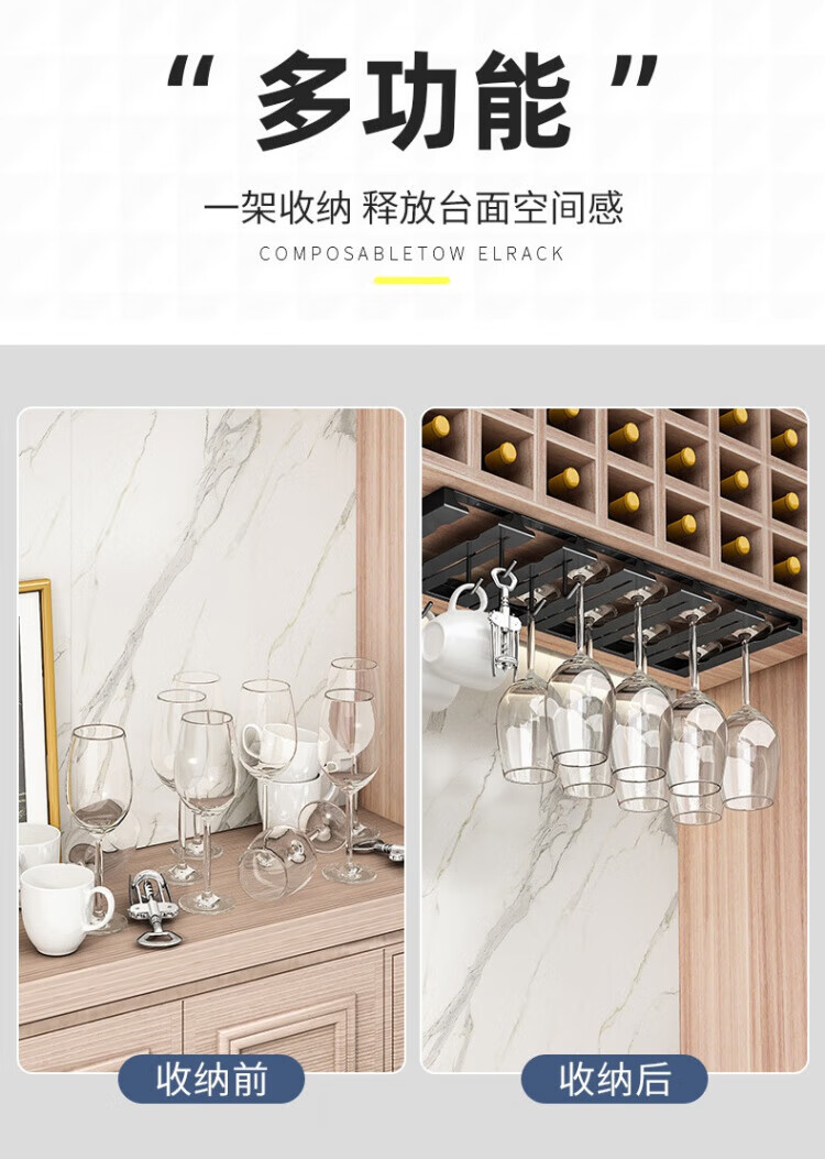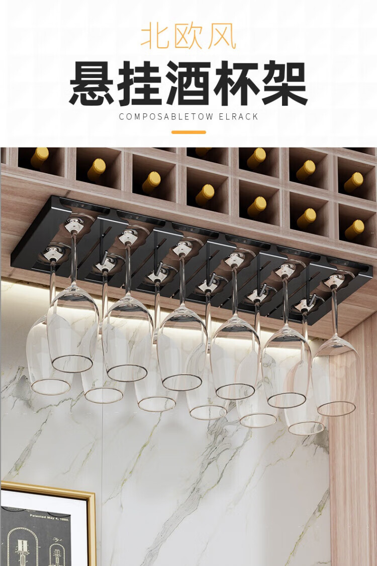CKULH German stainless steel wine glass hanger, upside-down cup holder, goblet storage rack, home light luxury ornaments hanging, gun gray six slots + five hooks - can hang 12 cups (punch/no need to punch)