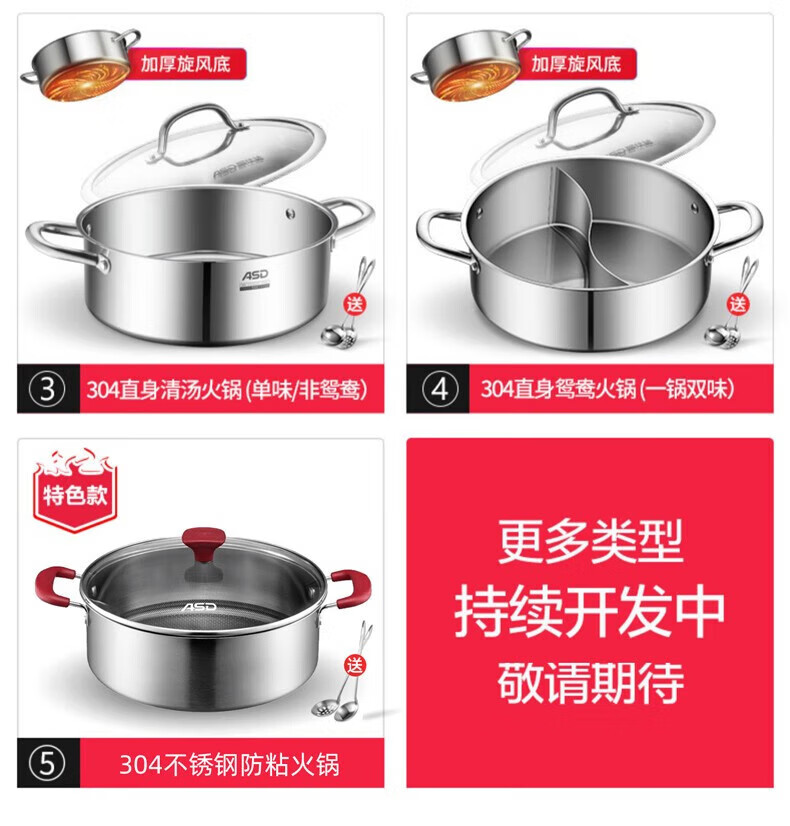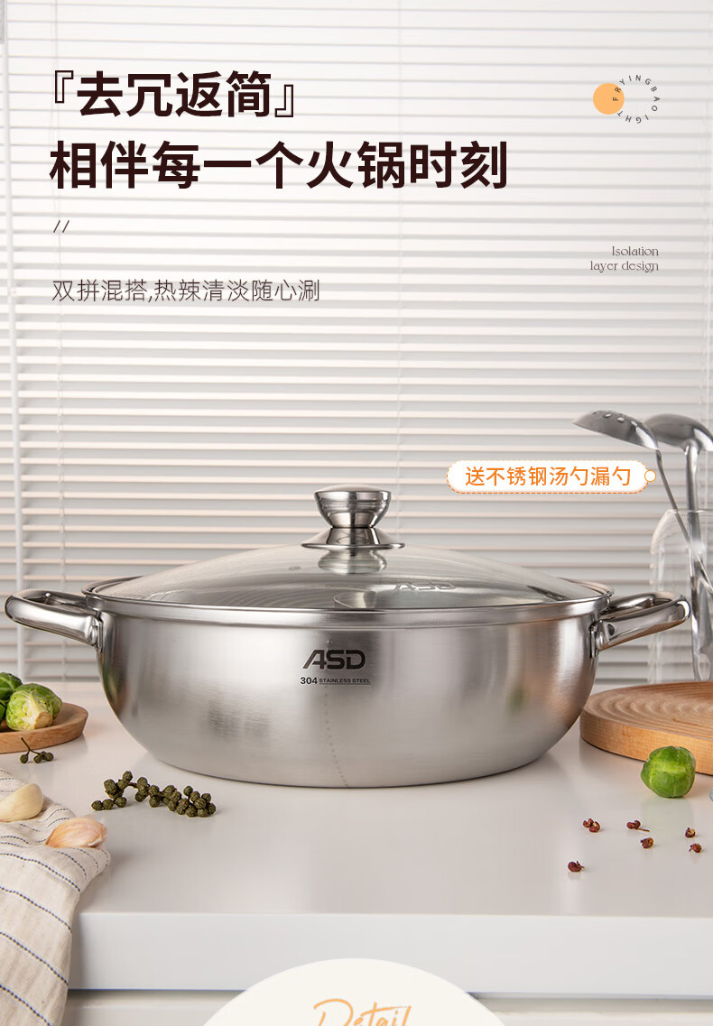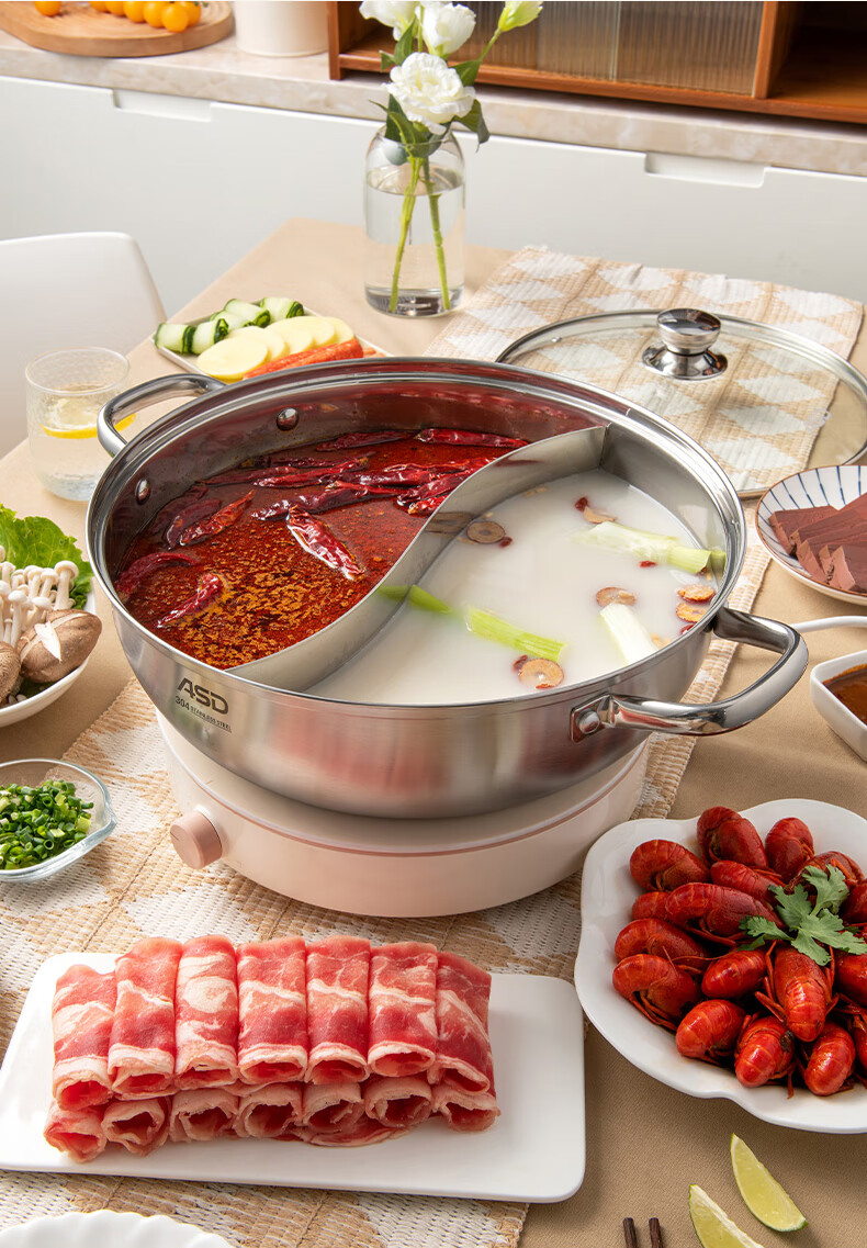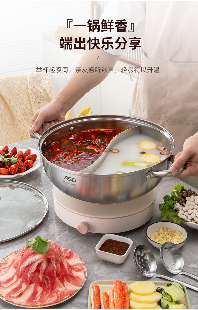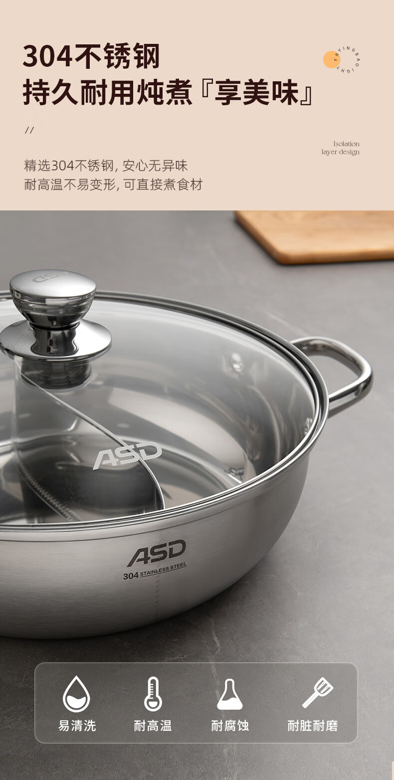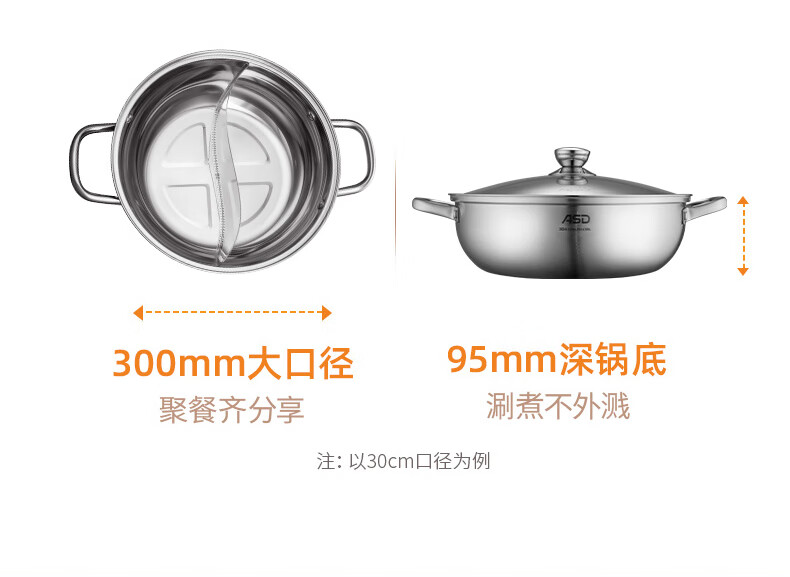 ASD (ASD) hot pot 304 stainless steel hot pot household kitchen soup pot shabu-shabu one pot multi-purpose gas open flame induction cooker universal cyclone double bottom clear soup hot pot 30cm
