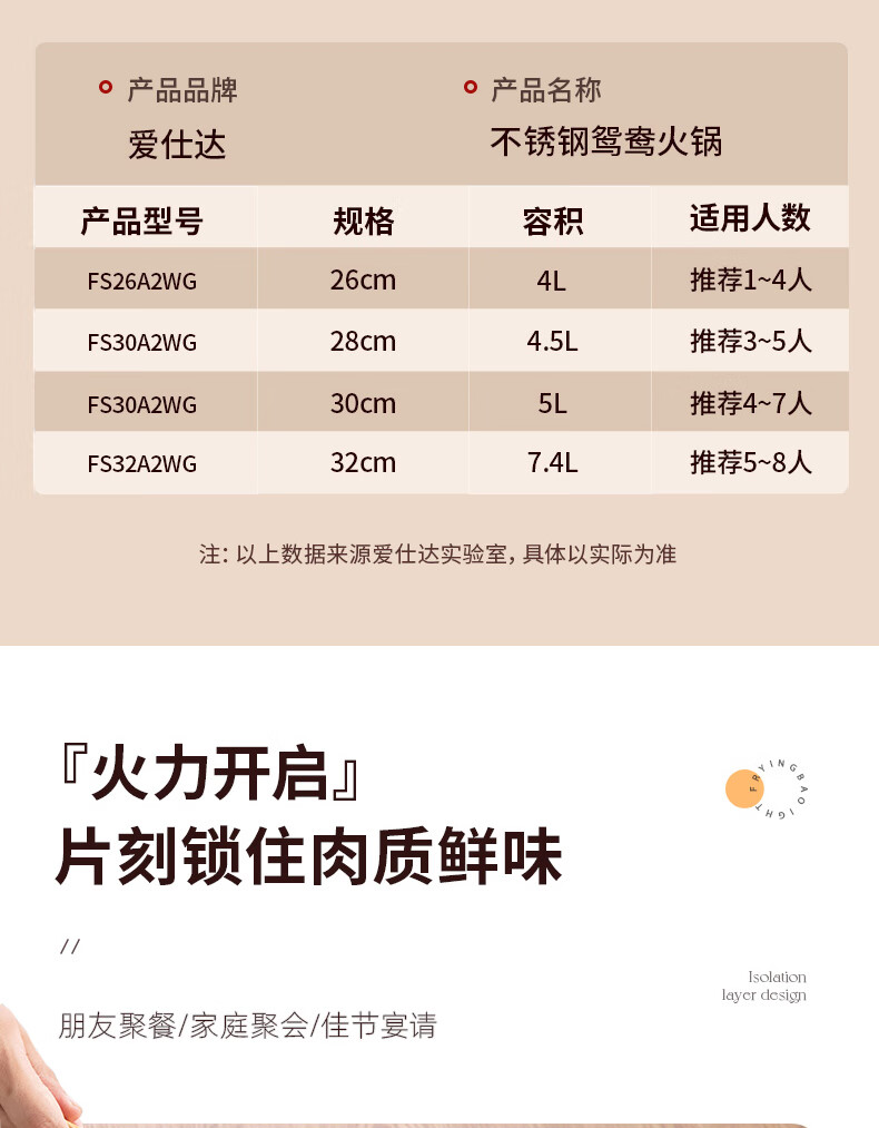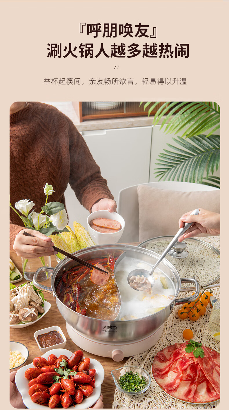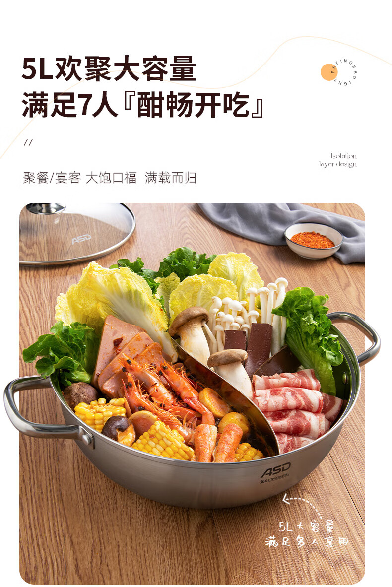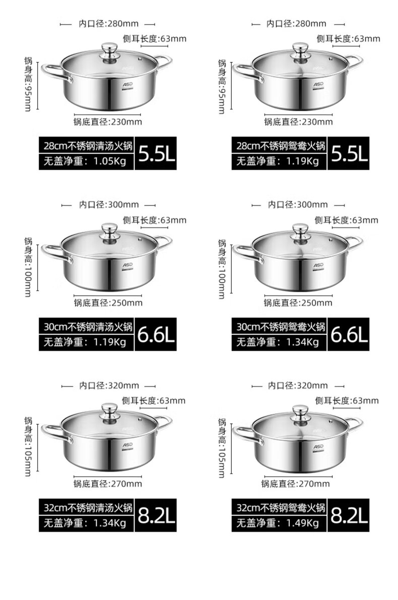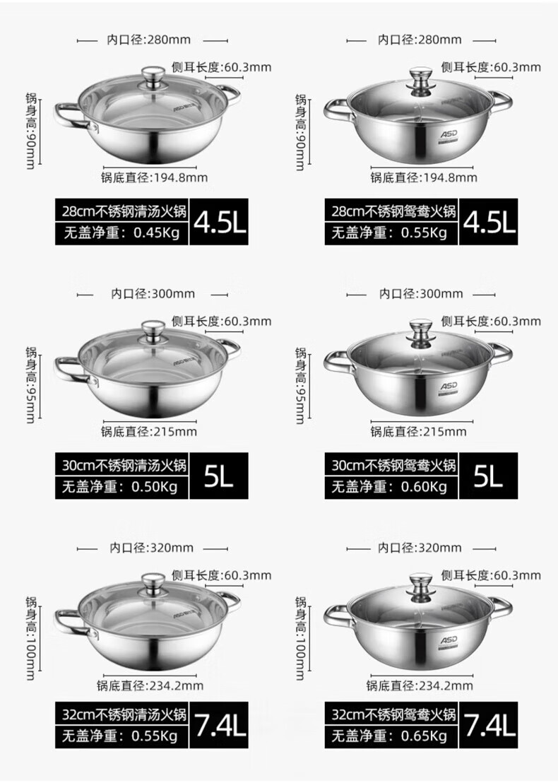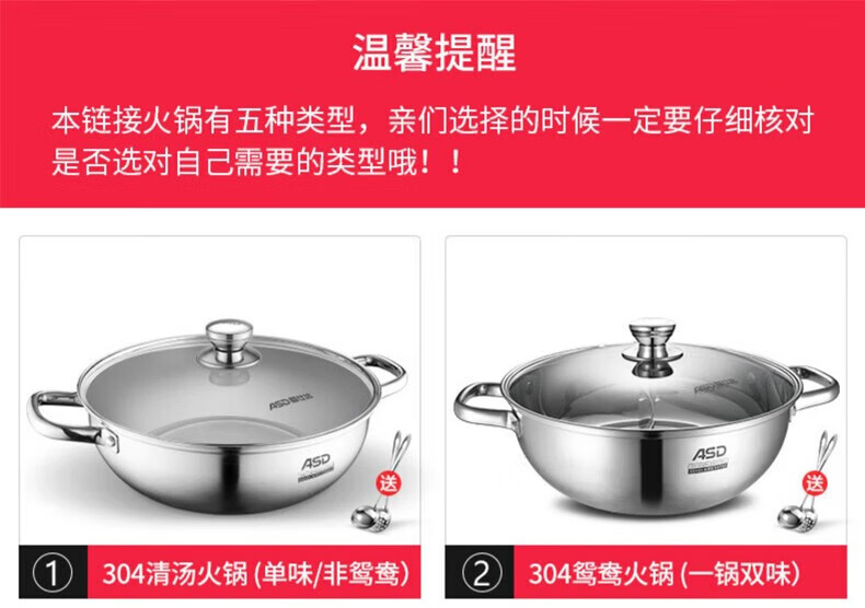 ASD (ASD) hot pot 304 stainless steel hot pot household kitchen soup pot shabu-shabu one pot multi-purpose gas open flame induction cooker universal cyclone double bottom clear soup hot pot 30cm