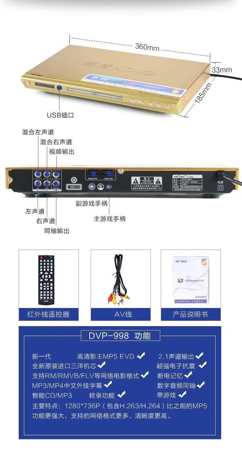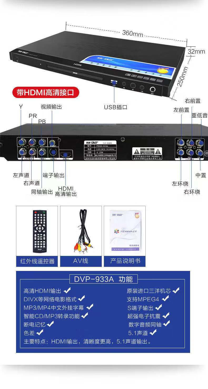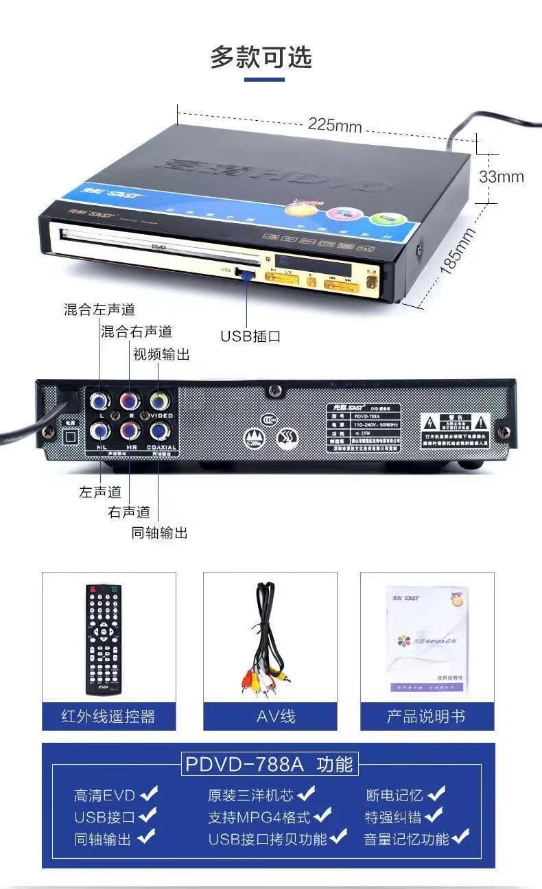 SAST DVD-788A DVD player HD evd player intelligent error correction vcd disc home learning machine 788 standard version remote control + USB interface