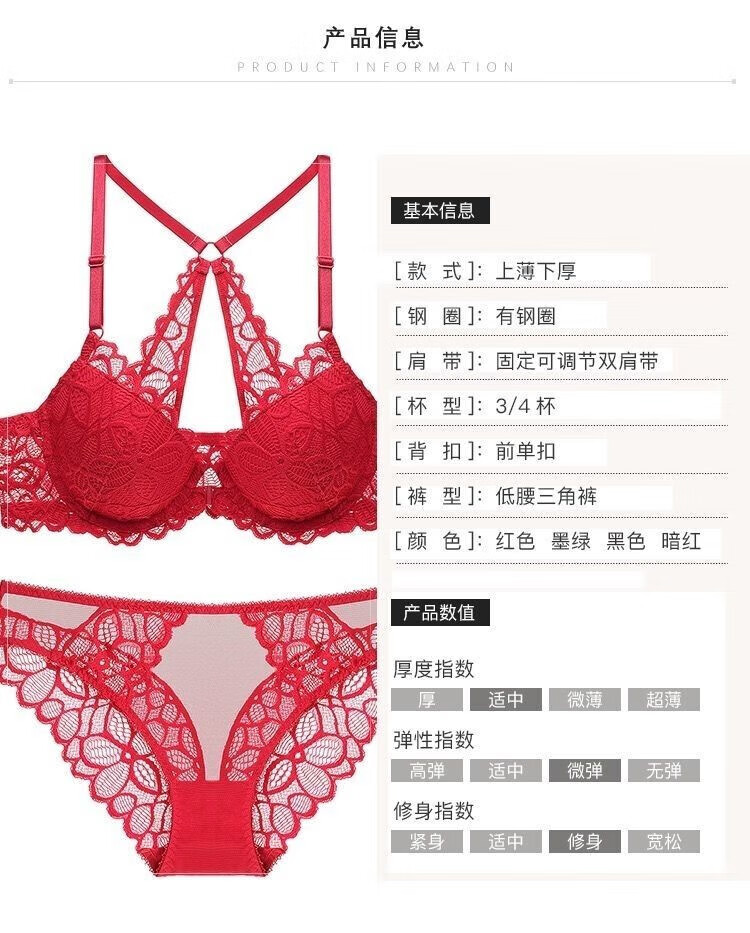 Maohuo (MAOHUO) horse-front buckle underwear for women with small breasts, gathered without wire rings, red zodiac year bra, lace bra, Valentine's Day gift, zodiac year red set 70A
