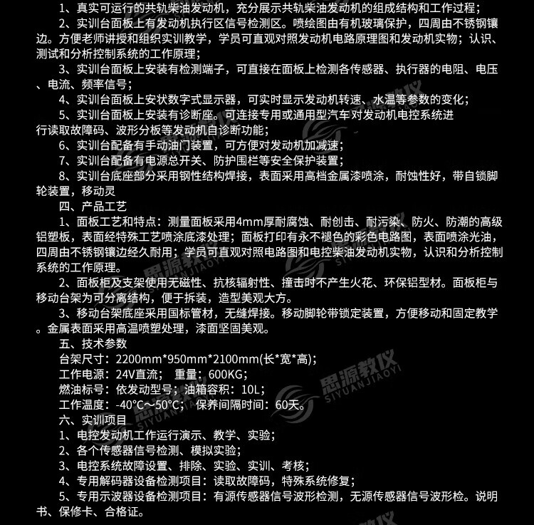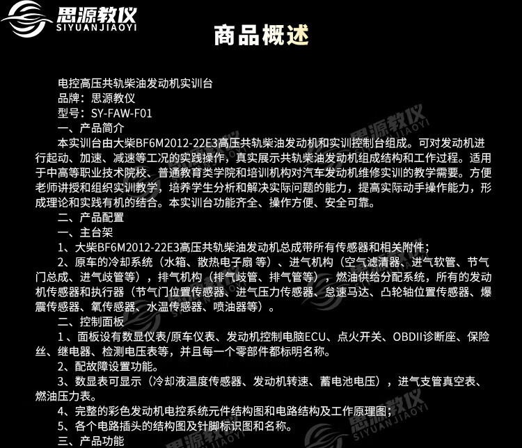 Siyuan teaching instrument SY-FAW-F01 Jiefang CA1125J electronically controlled diesel high-pressure common rail engine training platform teaching equipment