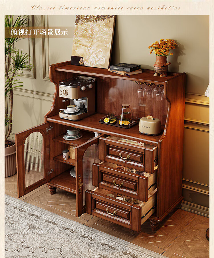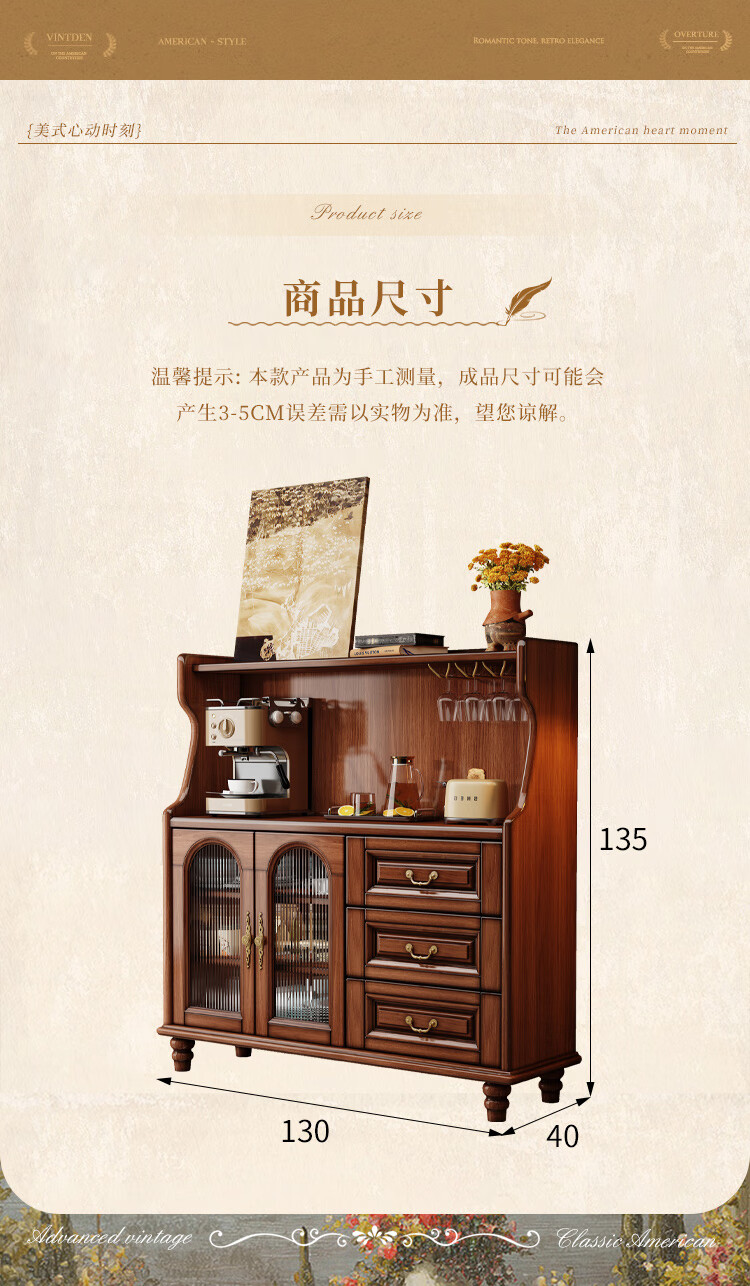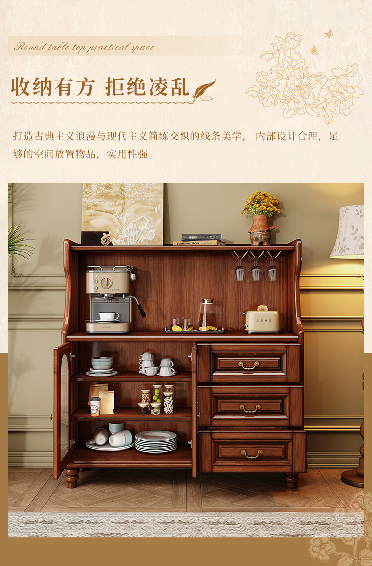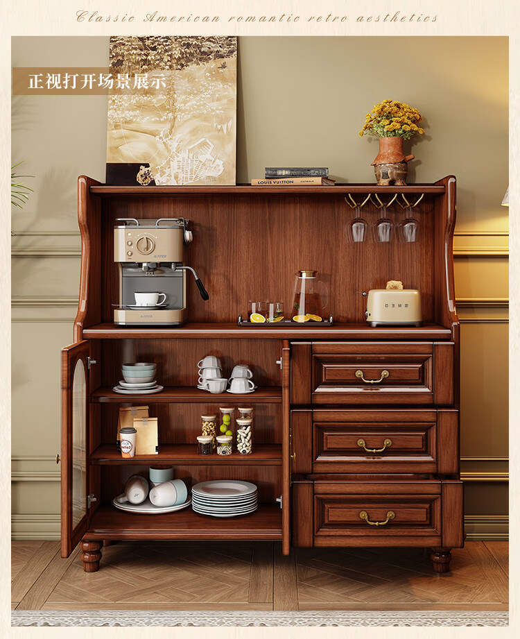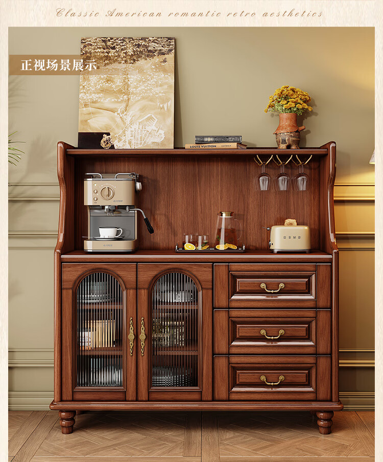 Wood grid Shangpin American retro solid wood sideboard home kitchen cabinet mahogany large storage storage wine cabinet wall cupboard retro walnut color sideboard