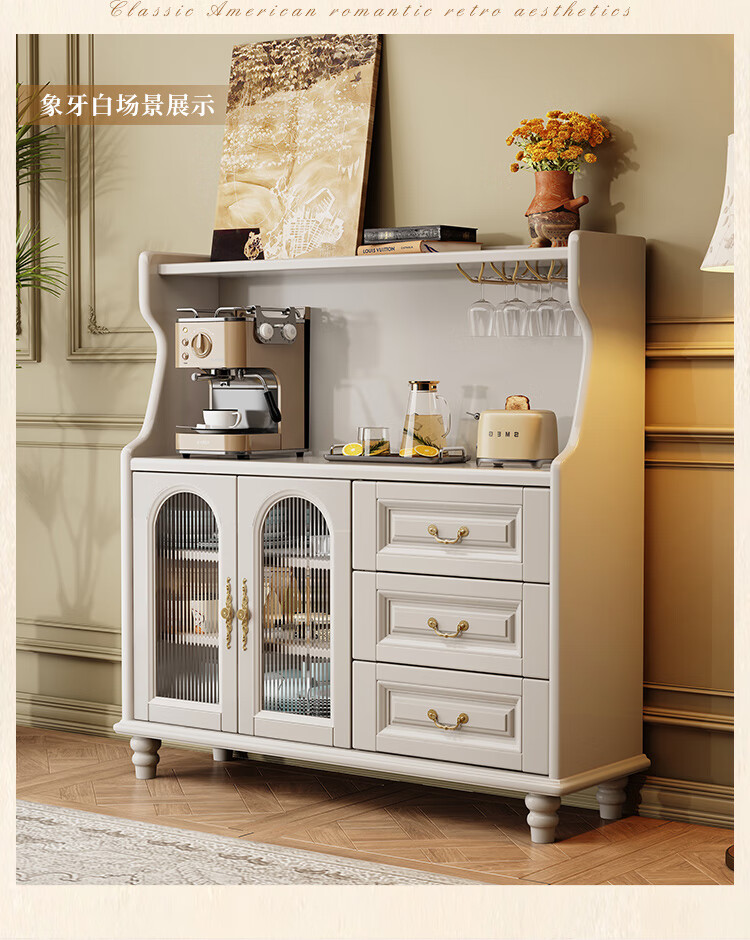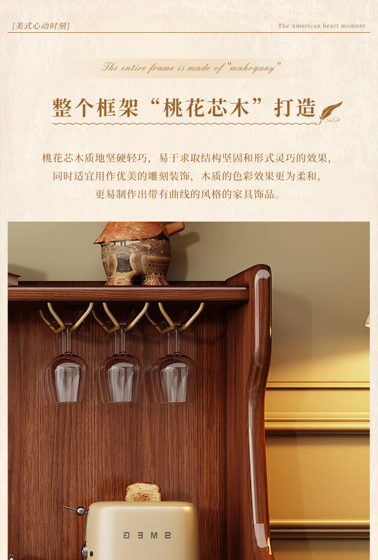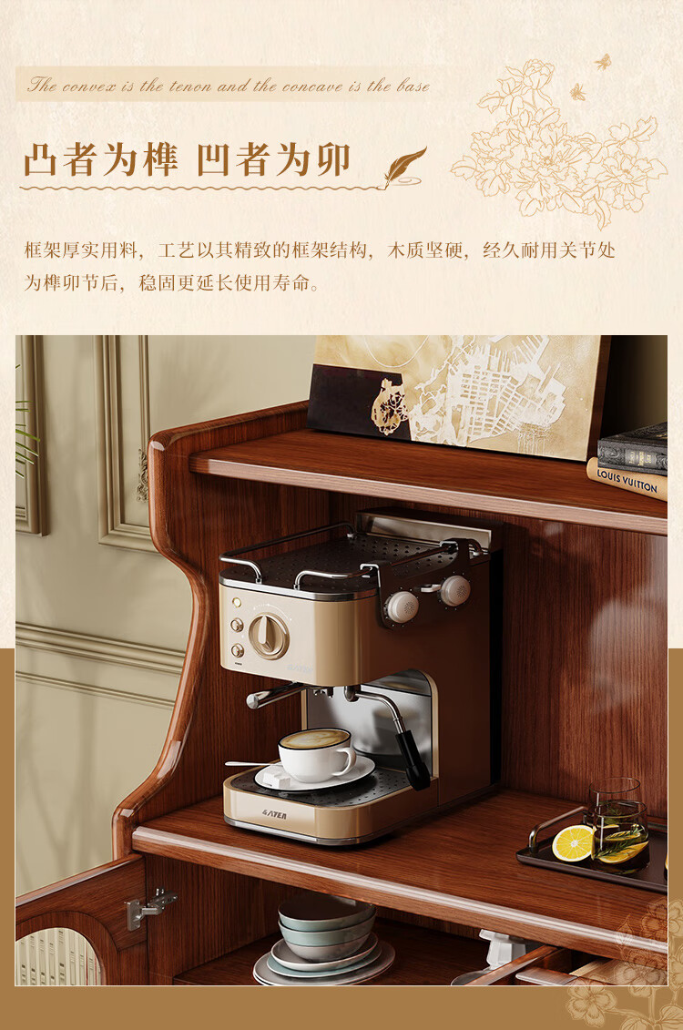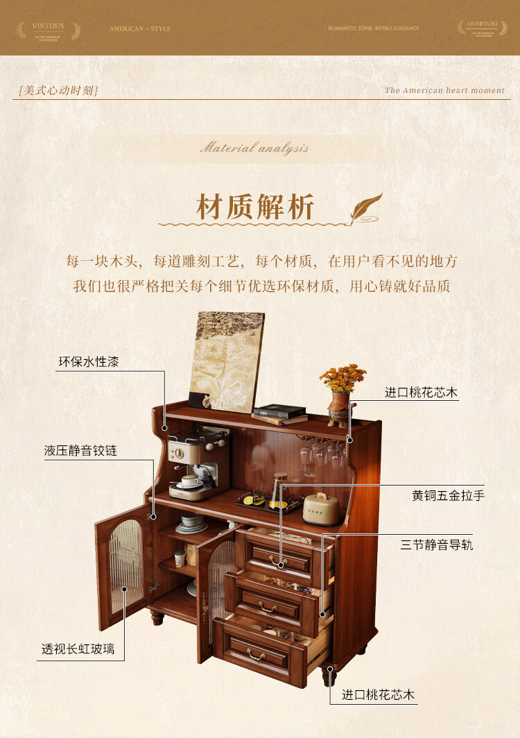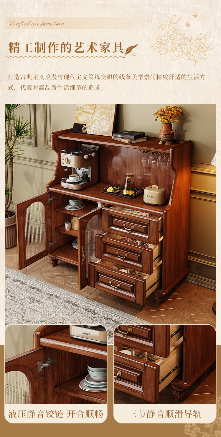 Wood grid Shangpin American retro solid wood sideboard home kitchen cabinet mahogany large storage storage wine cabinet wall cupboard retro walnut color sideboard