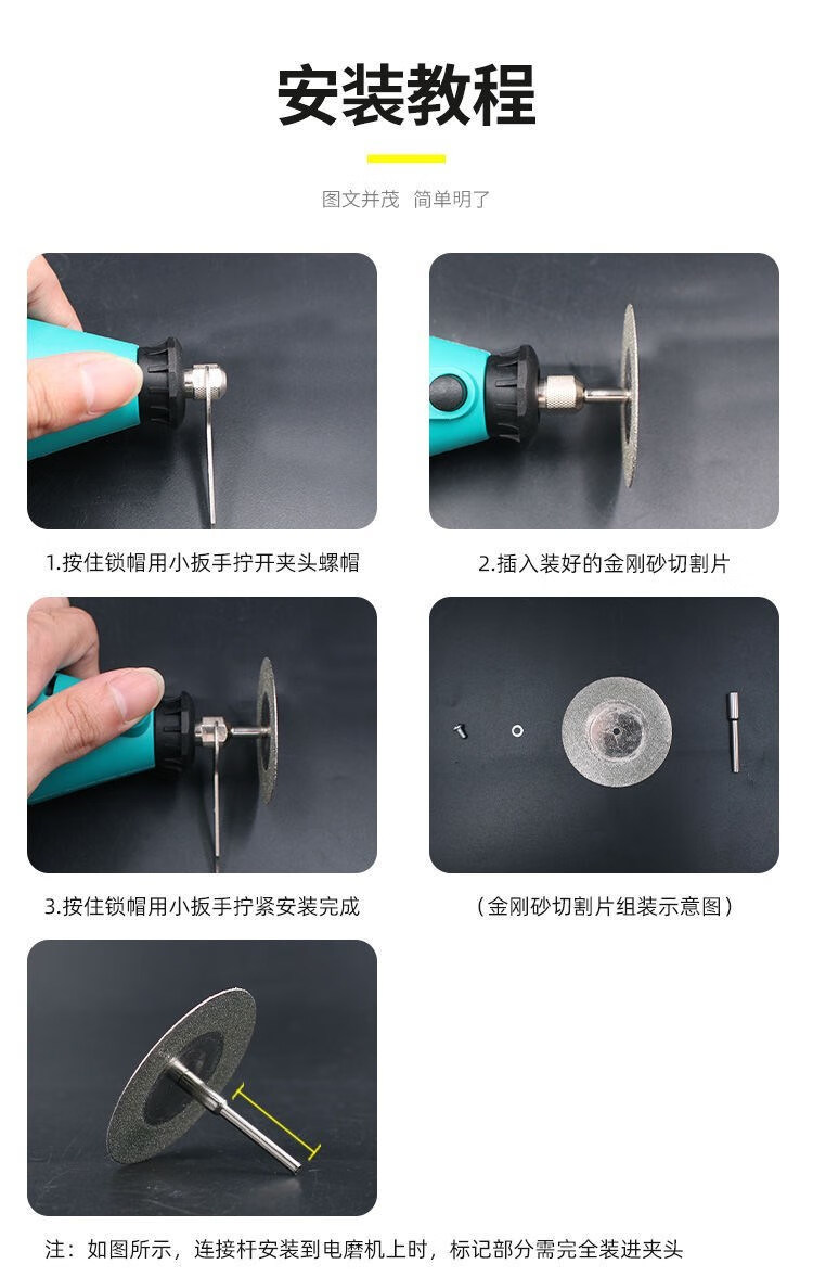 An Junsheng emery cutting disc diamond small saw blade jade glass jade mini slice grinding disc electric grinding accessories 30mm 2 pieces + free 1 connecting rod