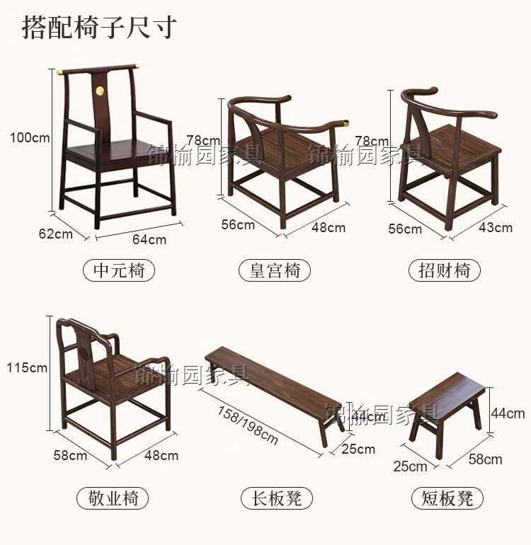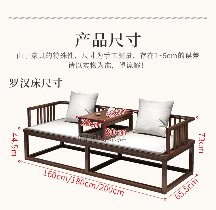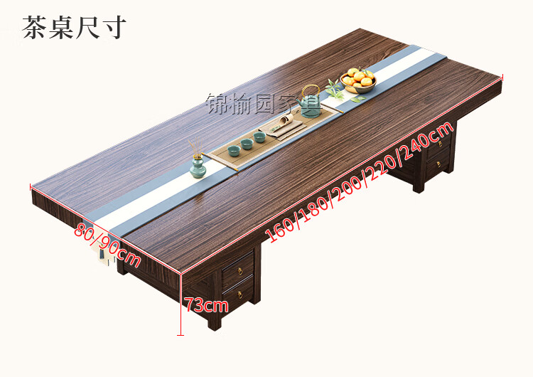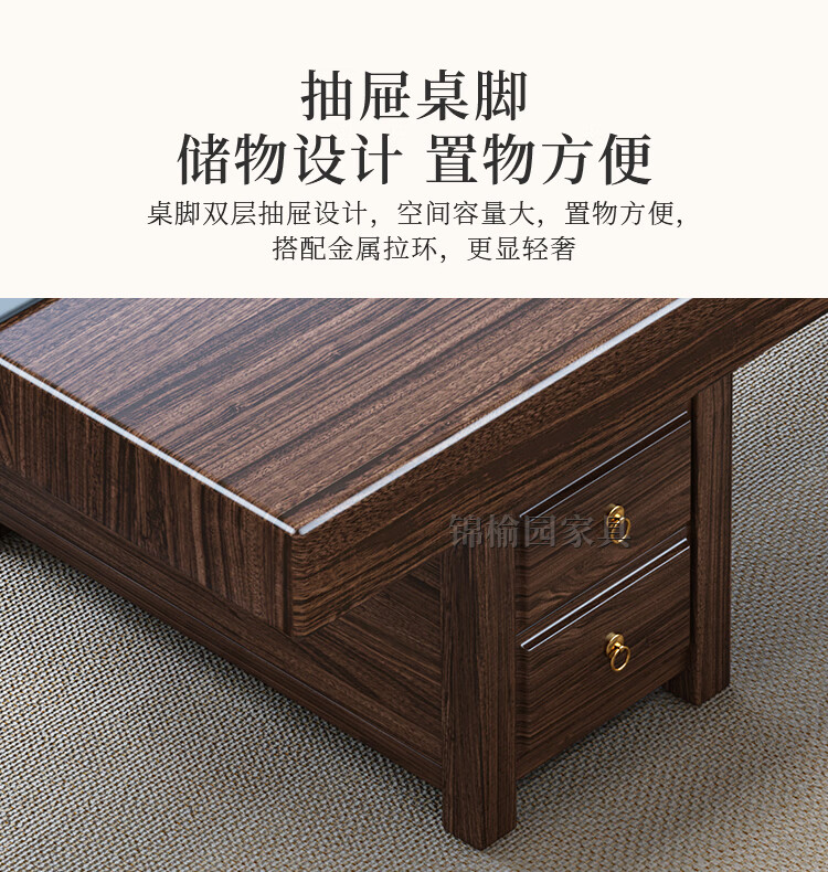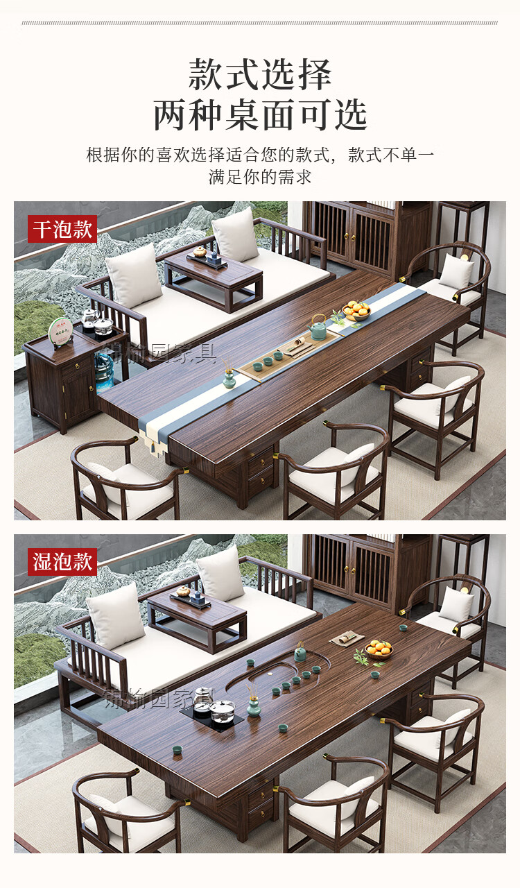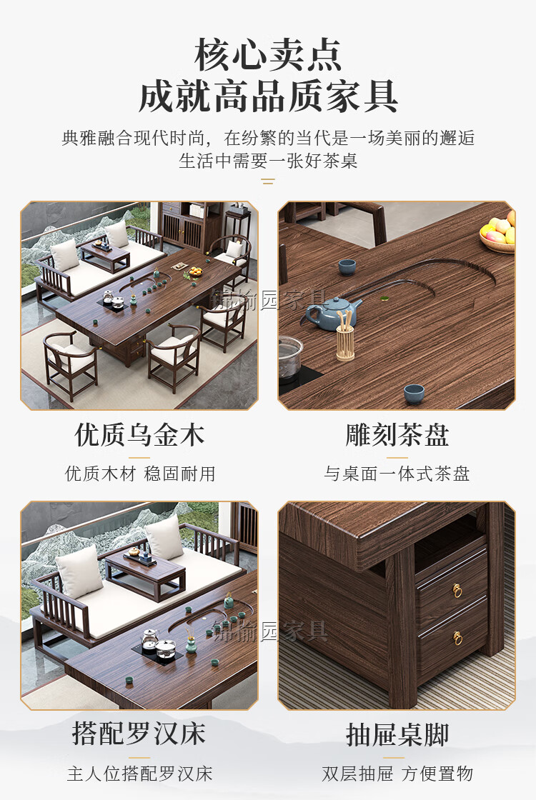 Jinyuyuan black gold large solid wood Arhat bed tea table and chair combination living room home coffee table office tea table tea table 2.2m flat model + Arhat bed + 5 palace chairs + side cabinet