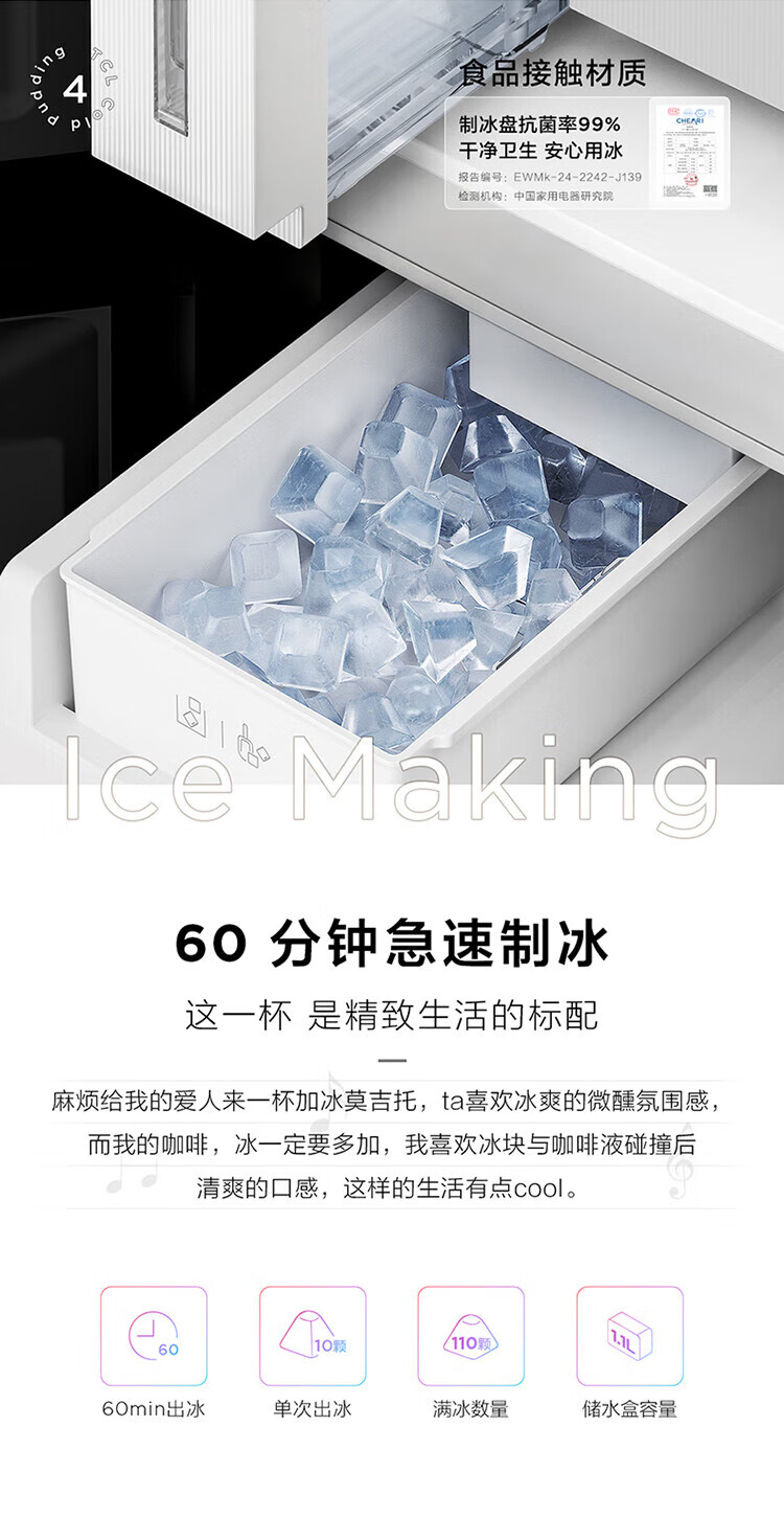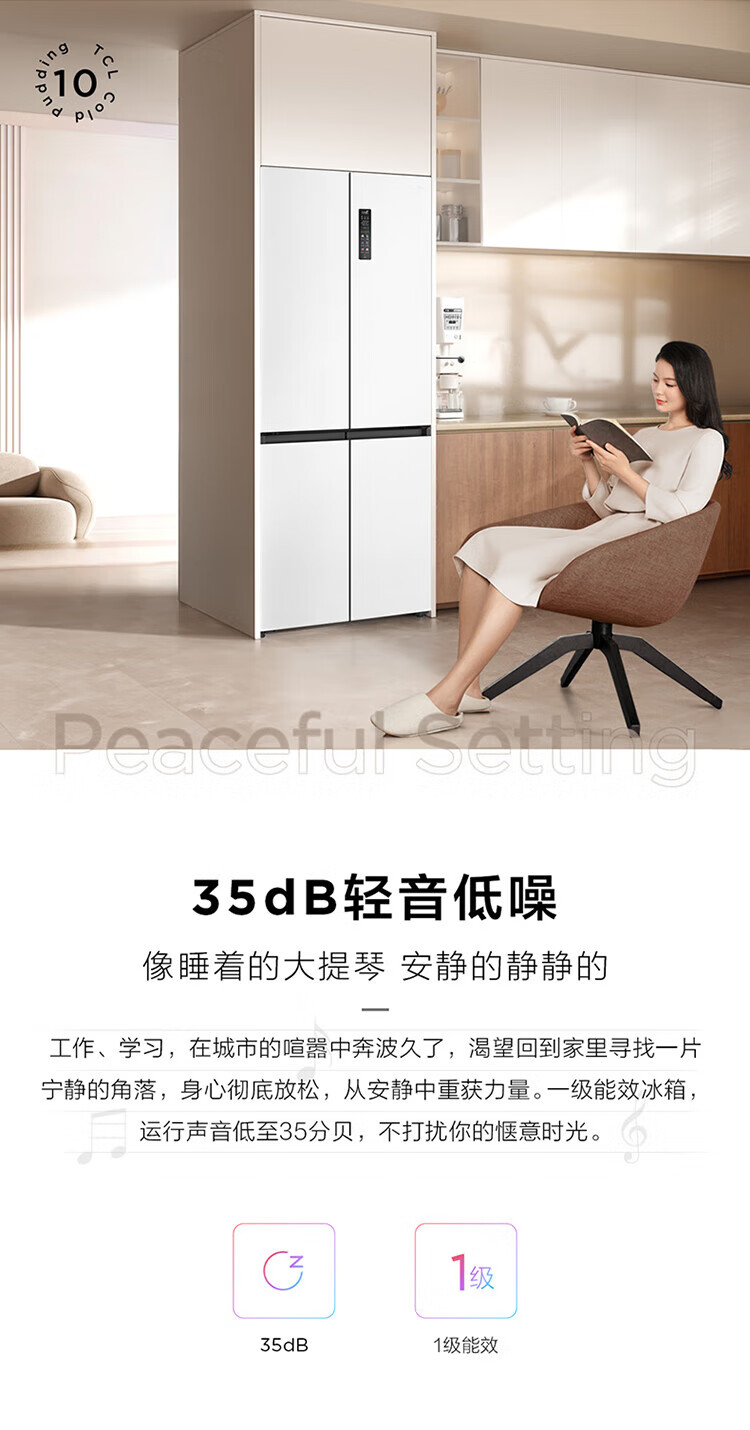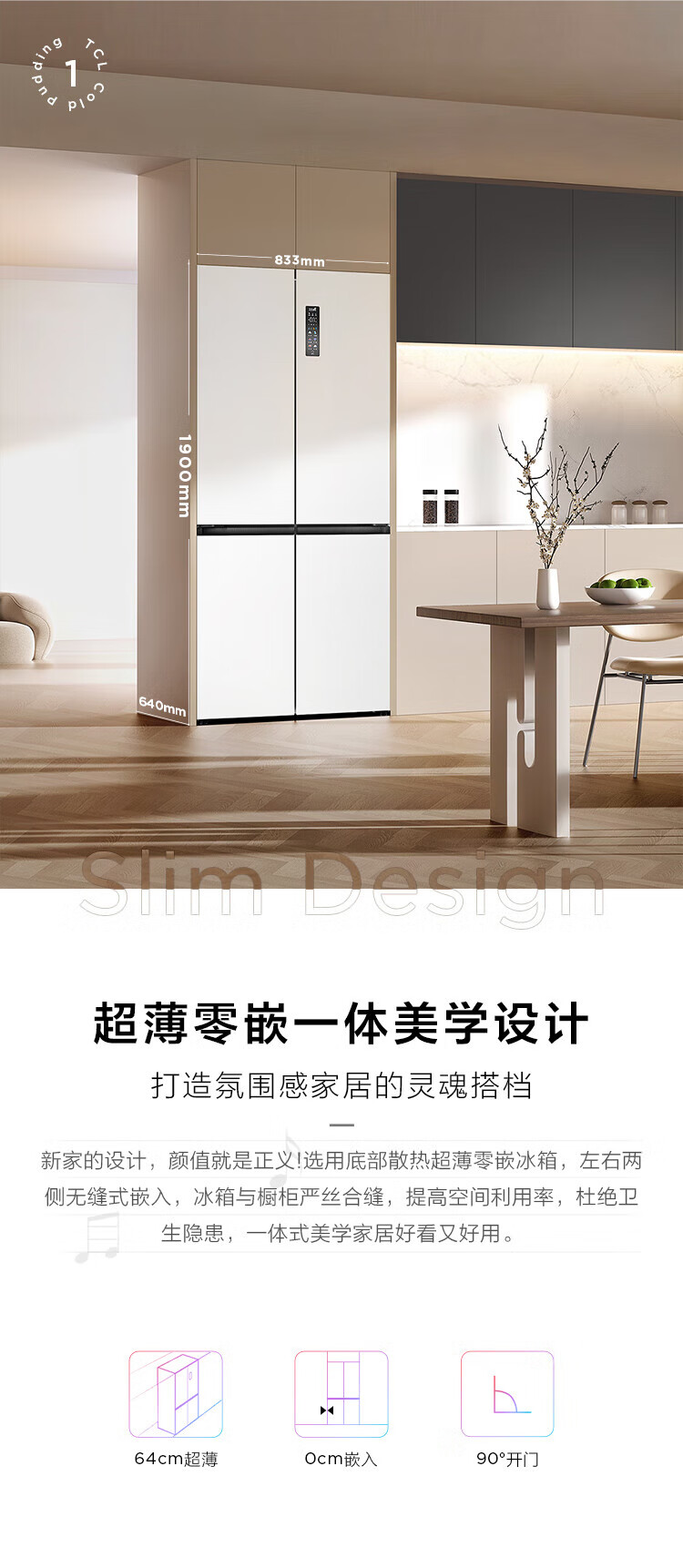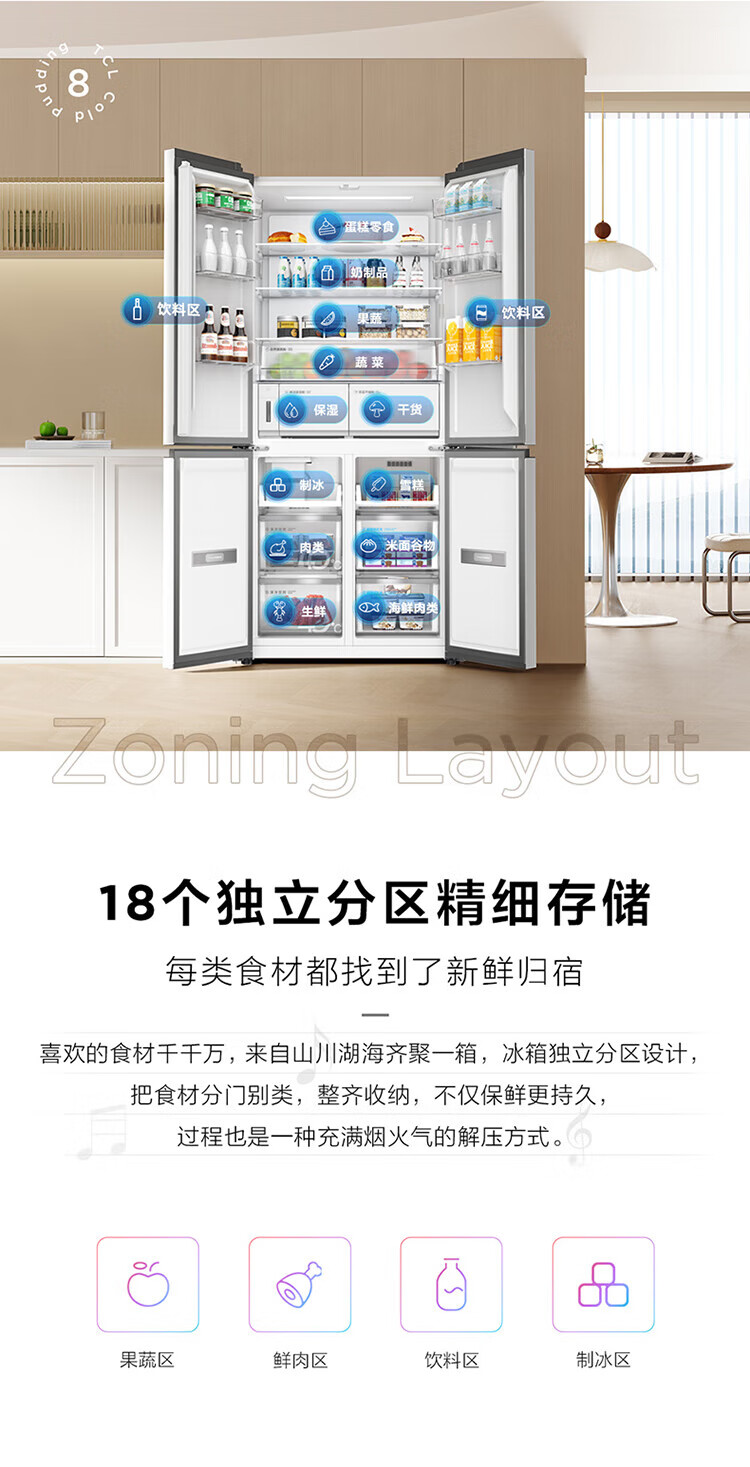 TCL522 liter cross-fold four-door ultra-thin zero-embedded large-capacity refrigerator fully automatic ice making deep cold freshness lock home refrigerator trade-in R522T9-UQB Rhythm White