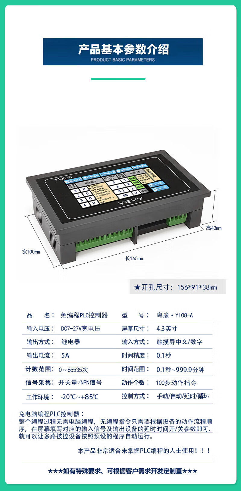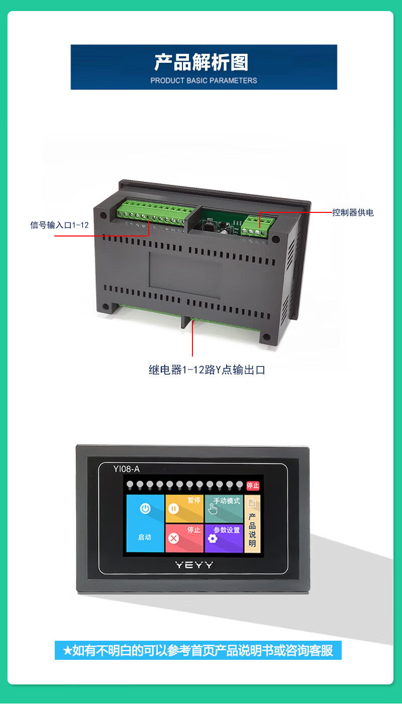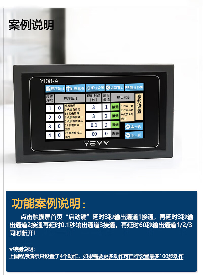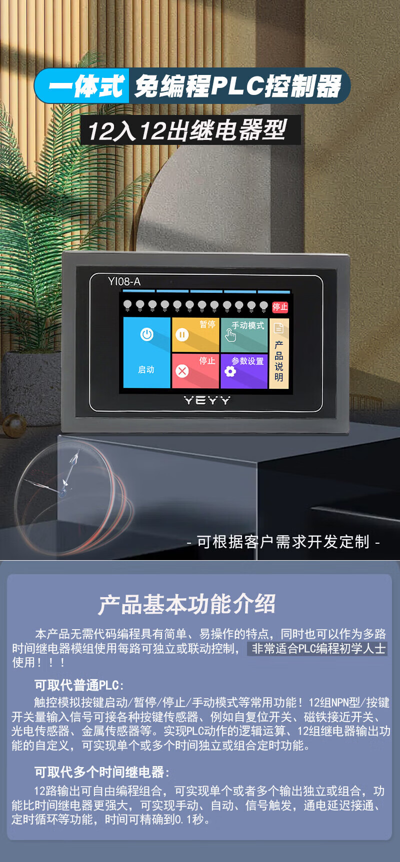 PLC multi-channel delay time relay module on-off switch cycle touch screen programmable control 12V24V YIO8-A control board (DC7-27V)