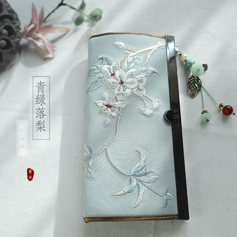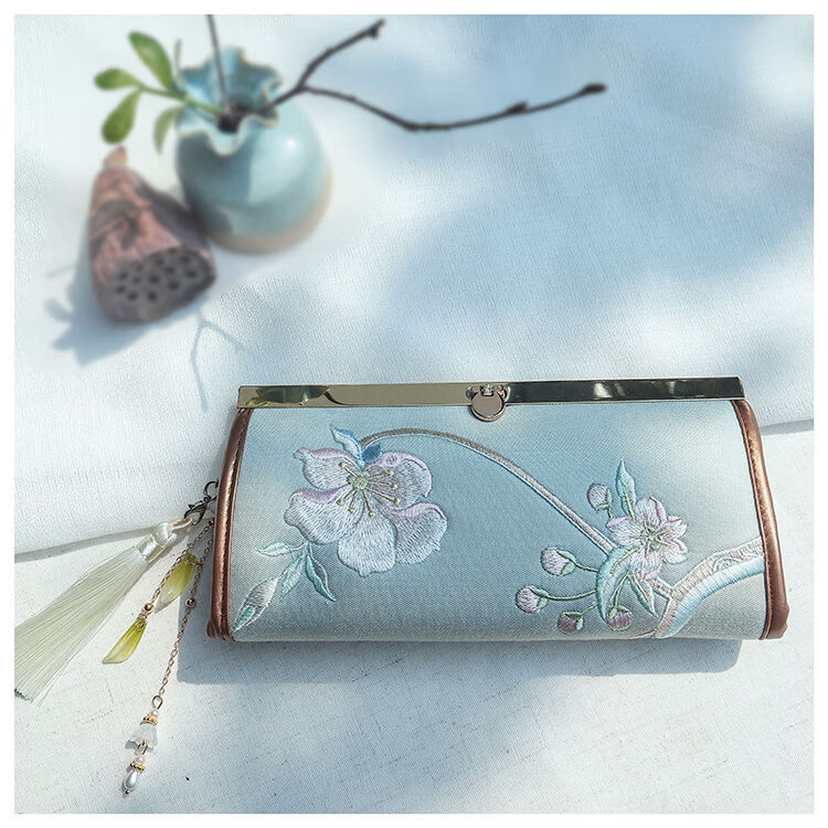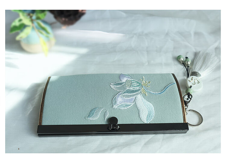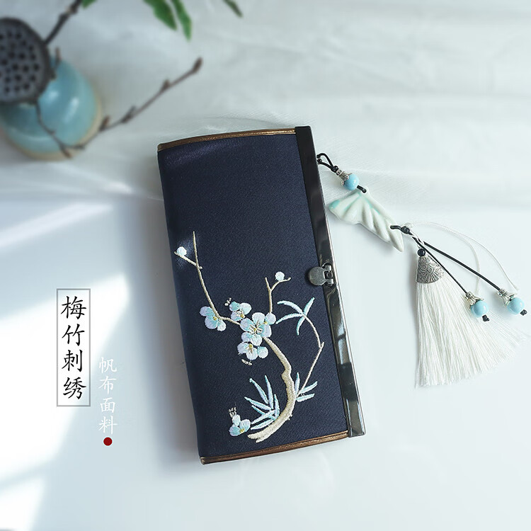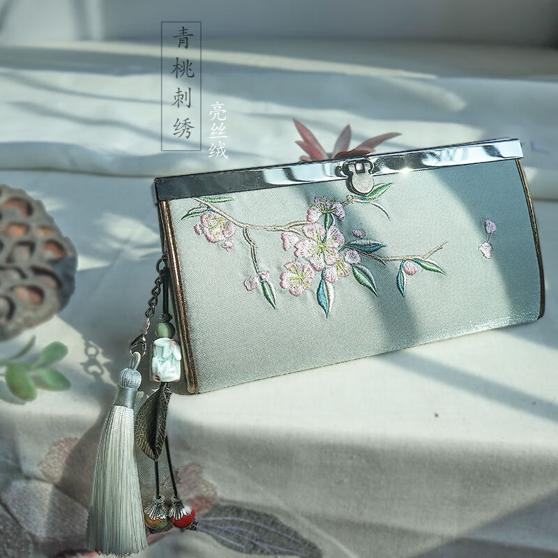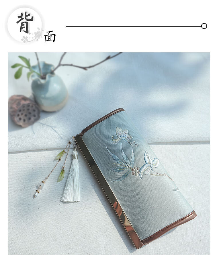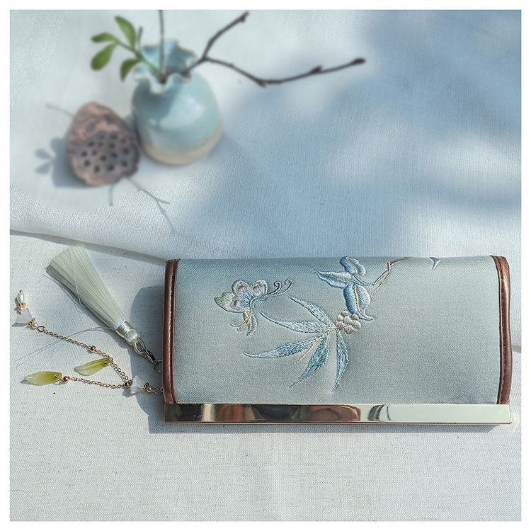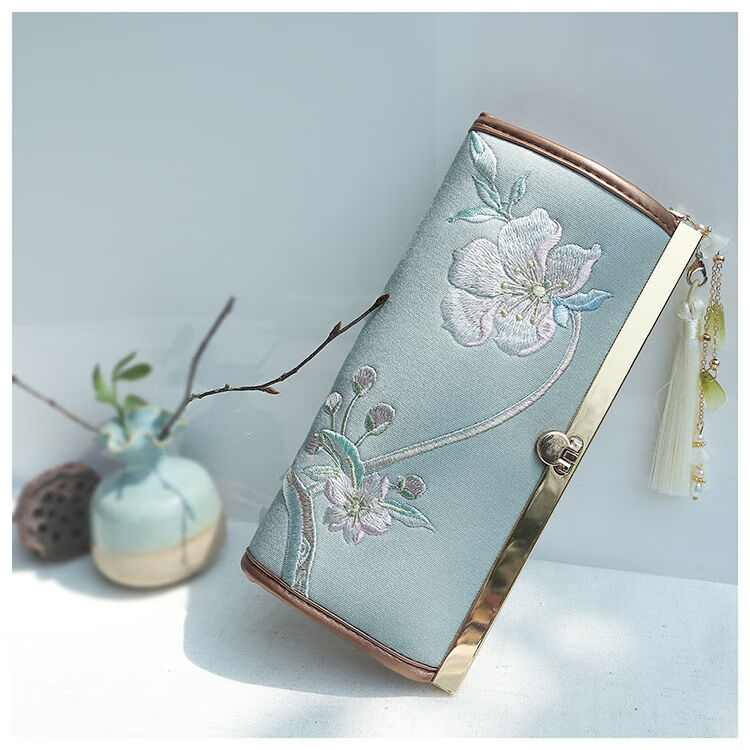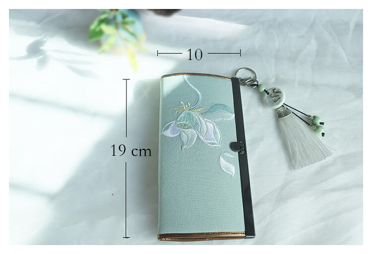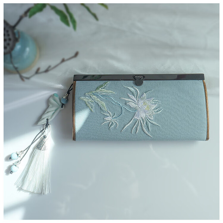 CLCEY hand-held long wallet 8 cards embroidered cloth bag handmade fabric forest style literary retro Chinese style antique ladies gift gift flower and leaf embroidery--bright velvet 19*10
