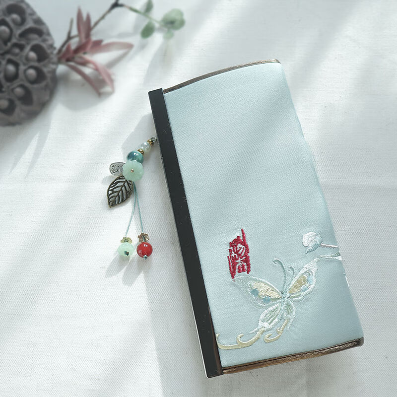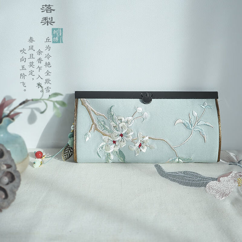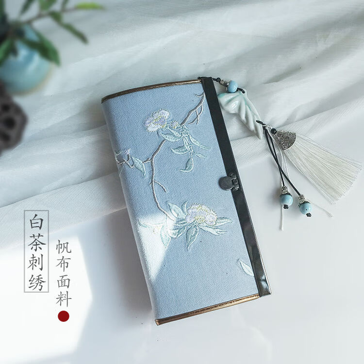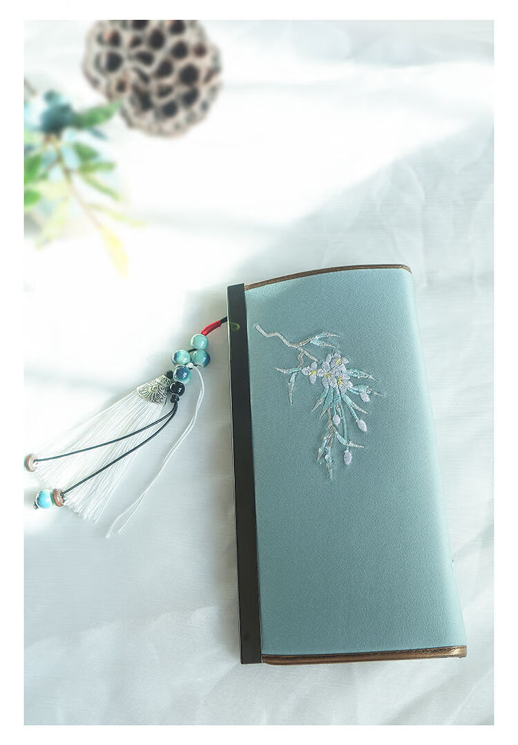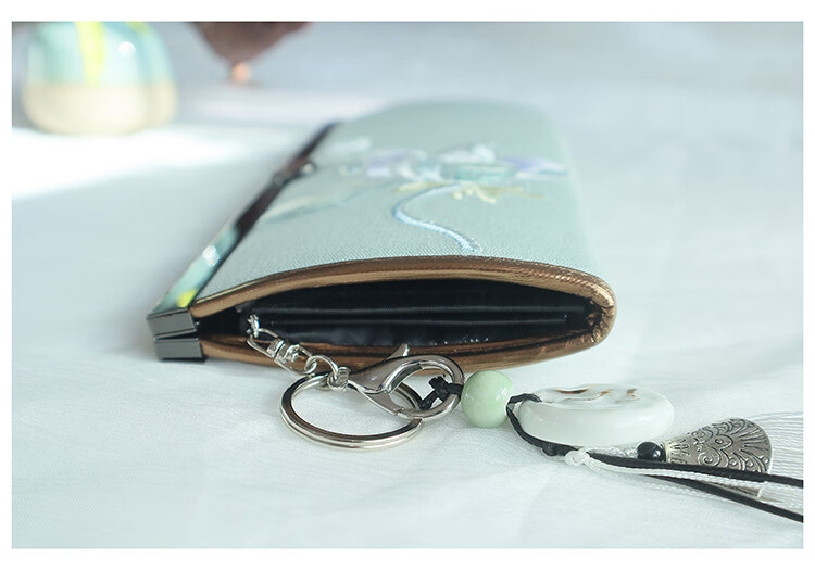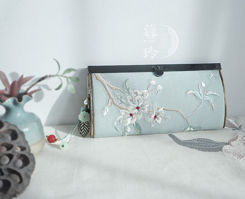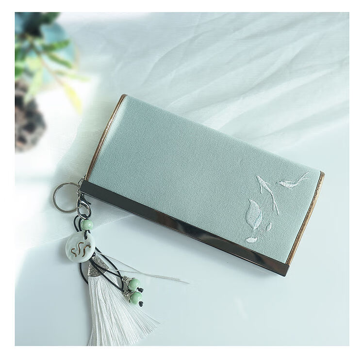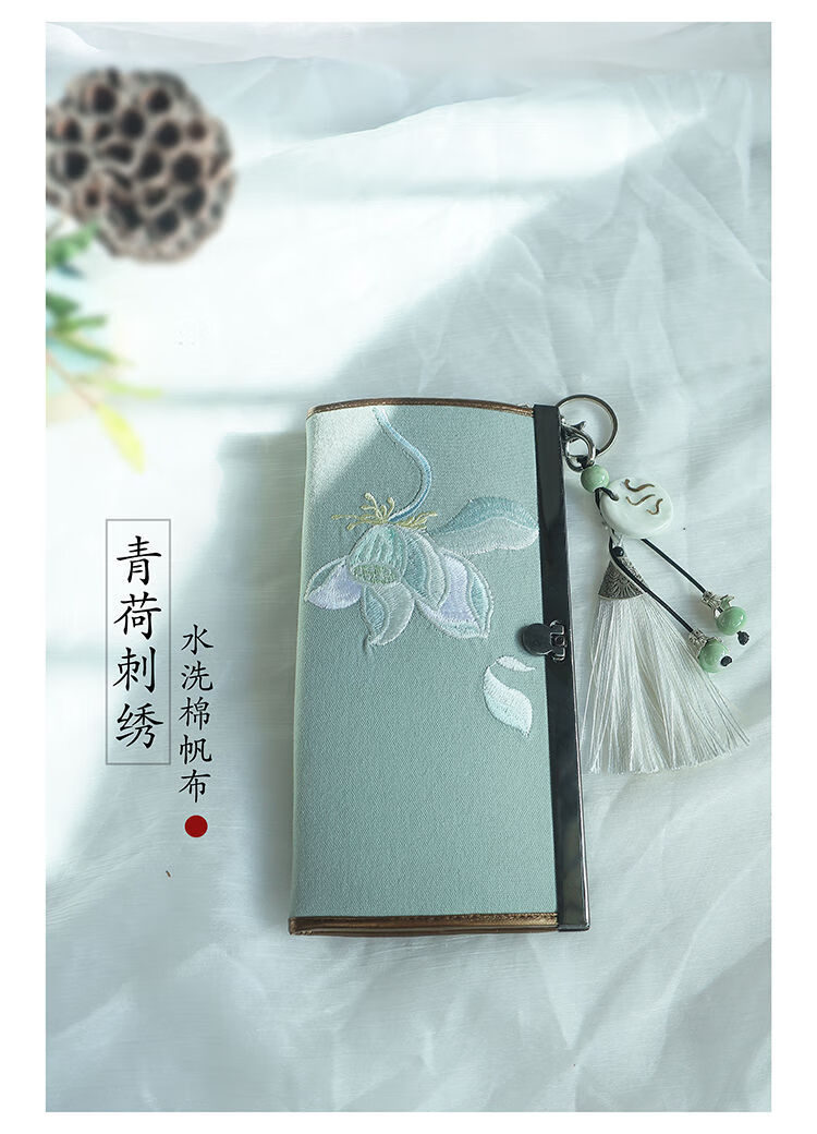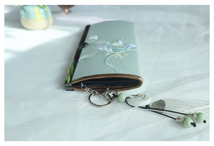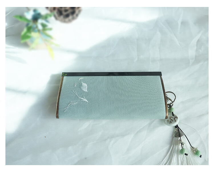 CLCEY hand-held long wallet 8 cards embroidered cloth bag handmade fabric forest style literary retro Chinese style antique ladies gift gift flower and leaf embroidery--bright velvet 19*10