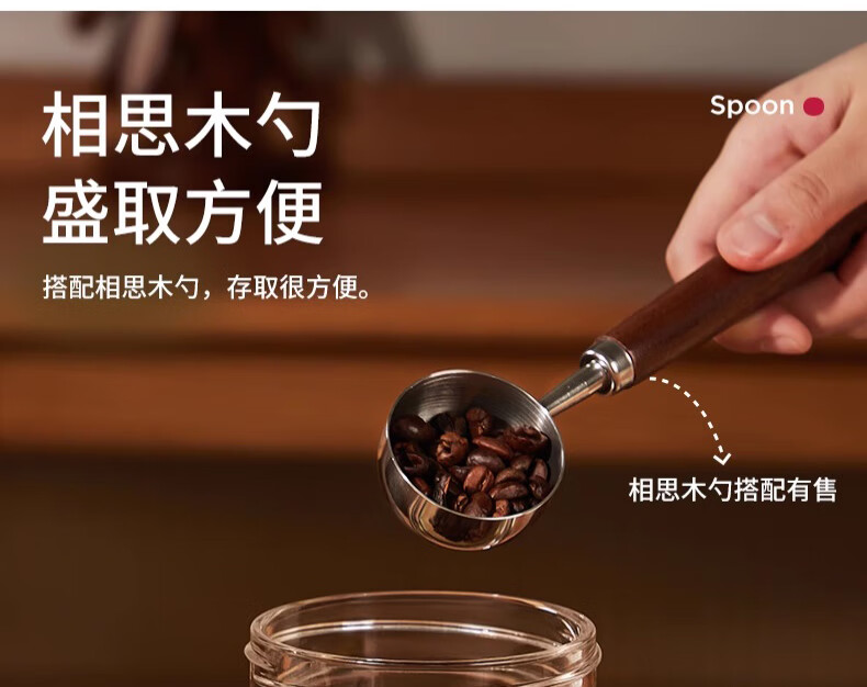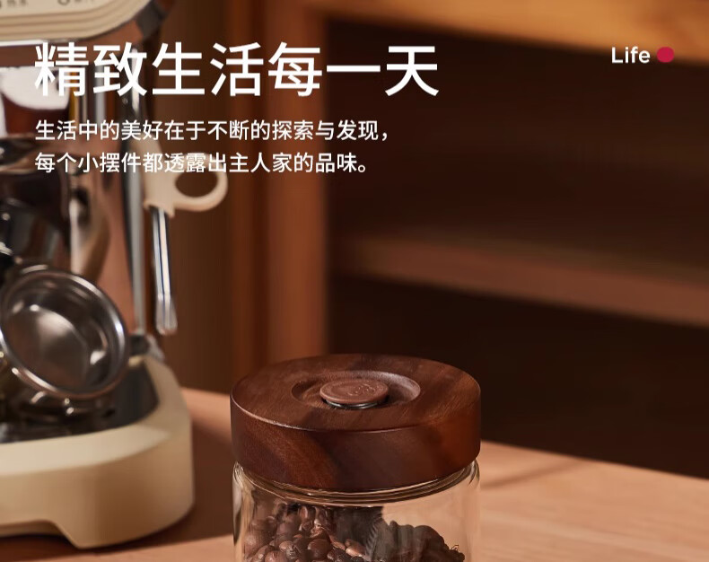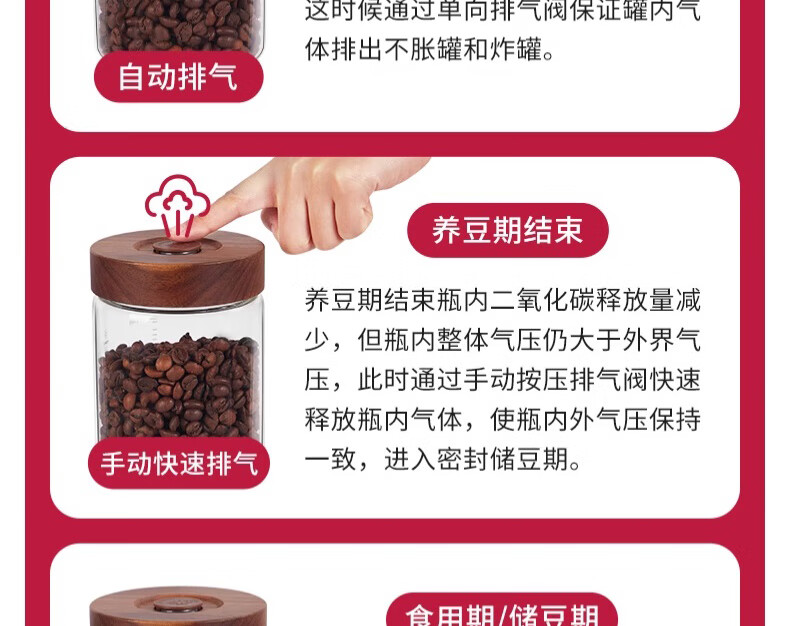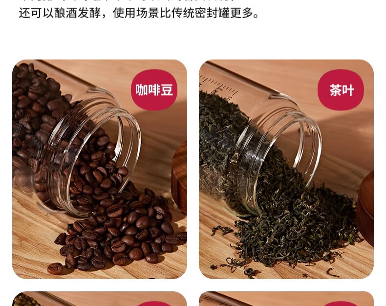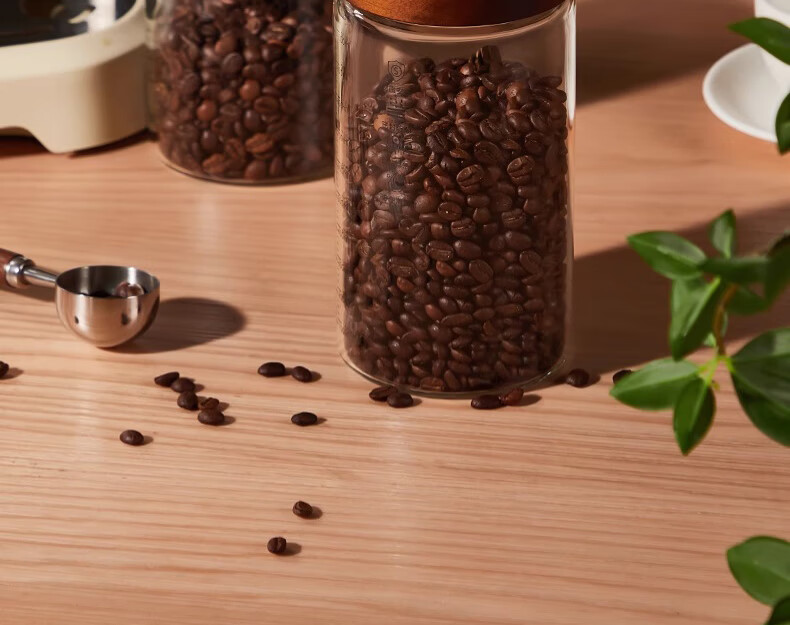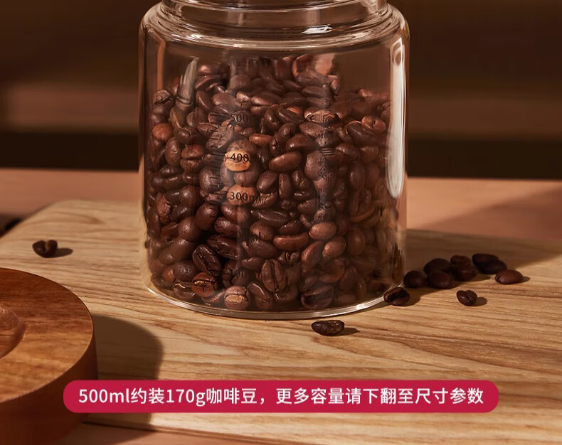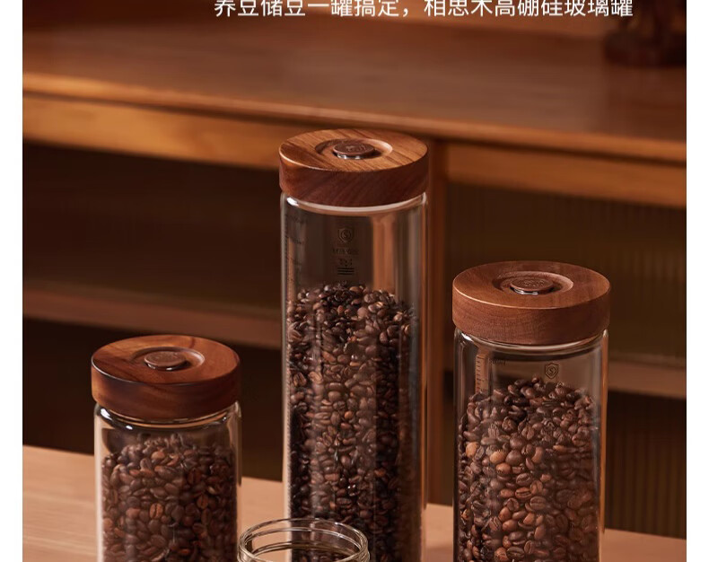 WELLMEET one-way exhaust coffee bean storage tank bean-raising tank coffee powder sealed tank wooden lid glass tea tangerine peel storage tank 1000ml one-way exhaust acacia wood coffee can