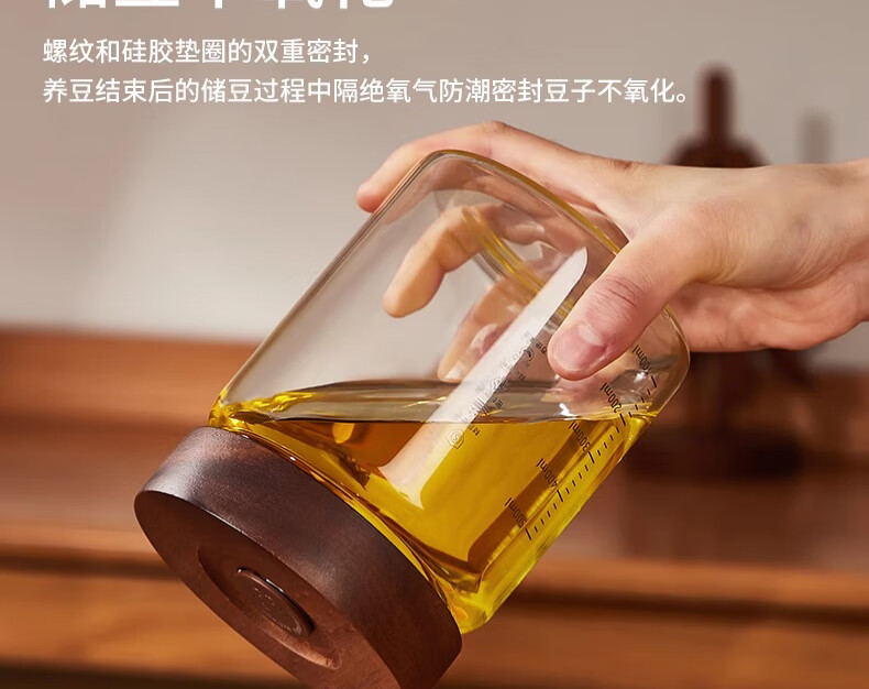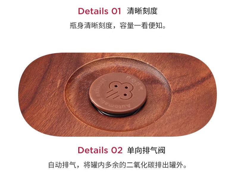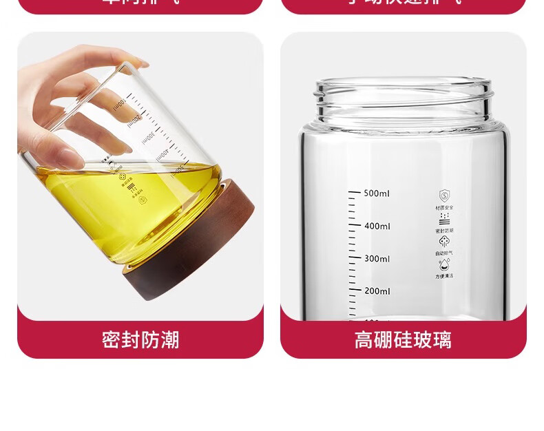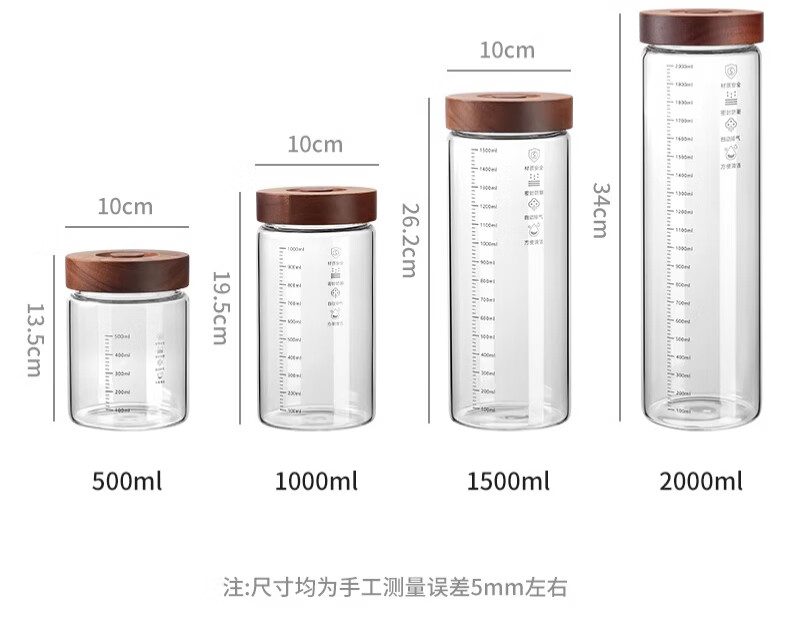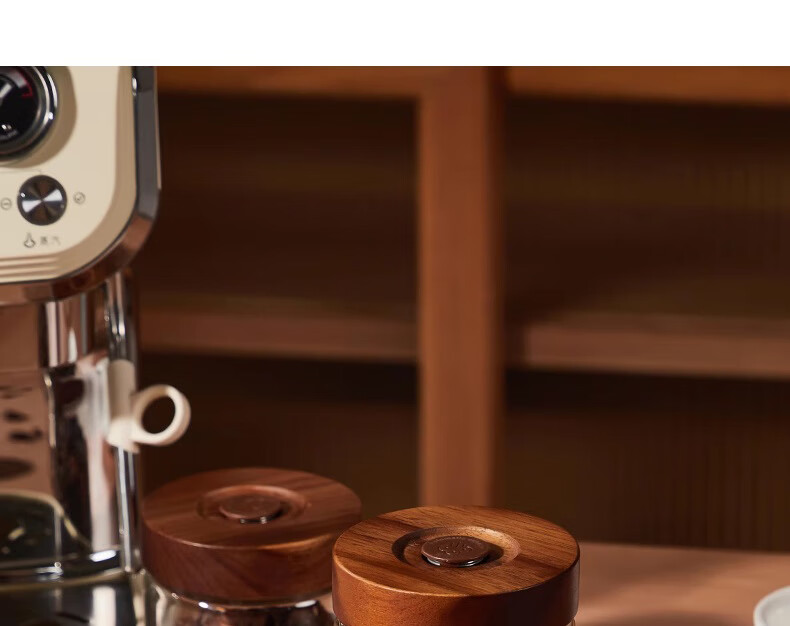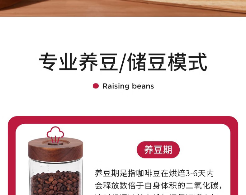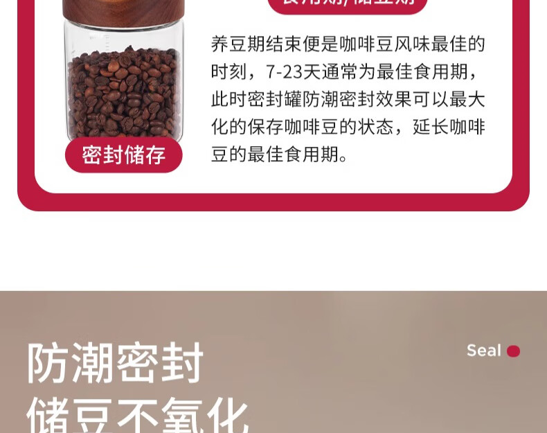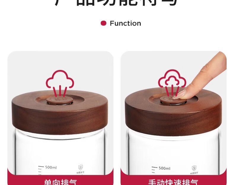 WELLMEET one-way exhaust coffee bean storage tank bean-raising tank coffee powder sealed tank wooden lid glass tea tangerine peel storage tank 1000ml one-way exhaust acacia wood coffee can