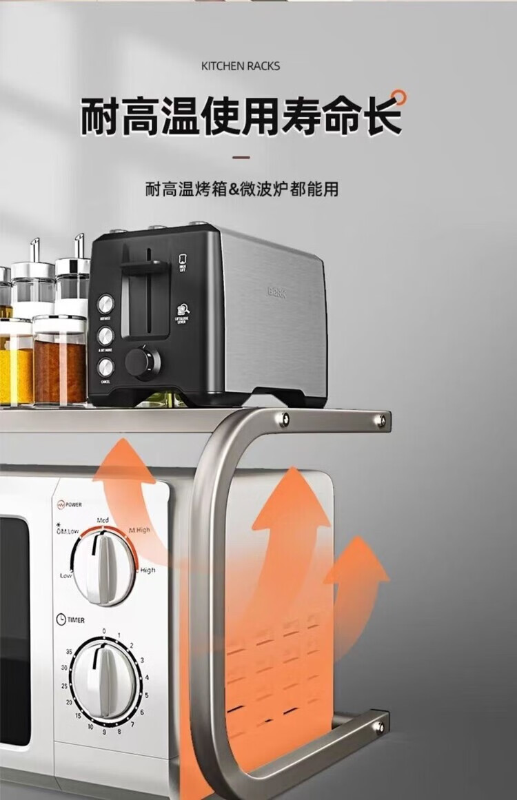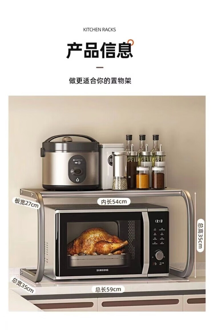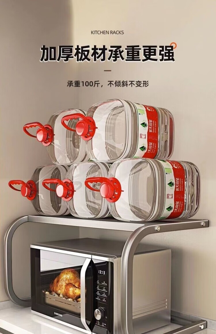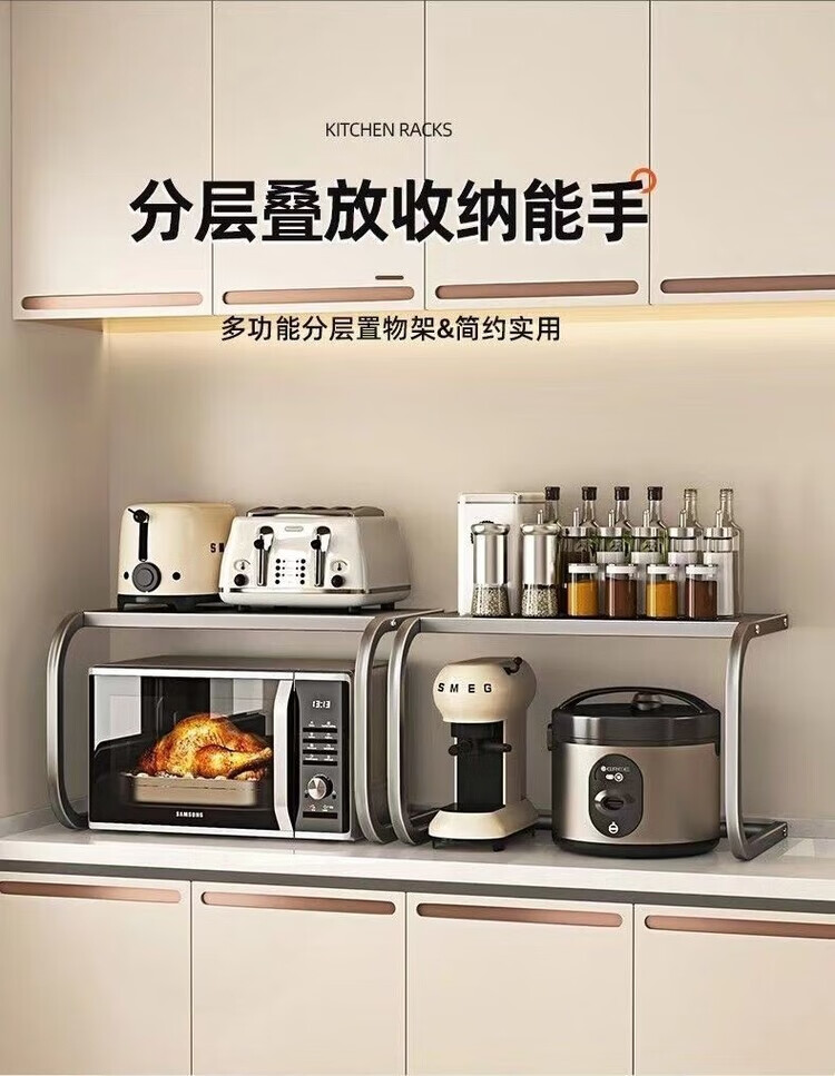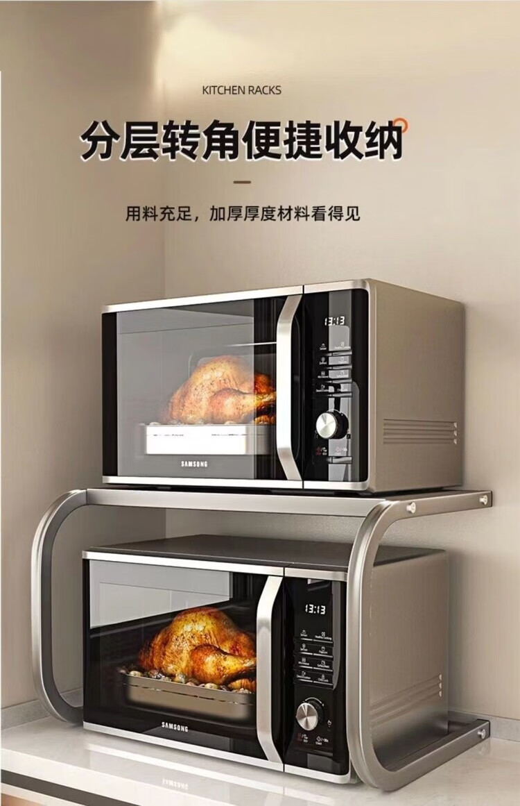 QCSK Microwave Oven Storage Rack Kitchen Storage Rack Countertop Multifunctional Rice Cooker Integrated Double Layer Countertop Oven Storage Rack 2.0 Upgraded Model - Bold and Thickened Stackable Noble Gray 59cm