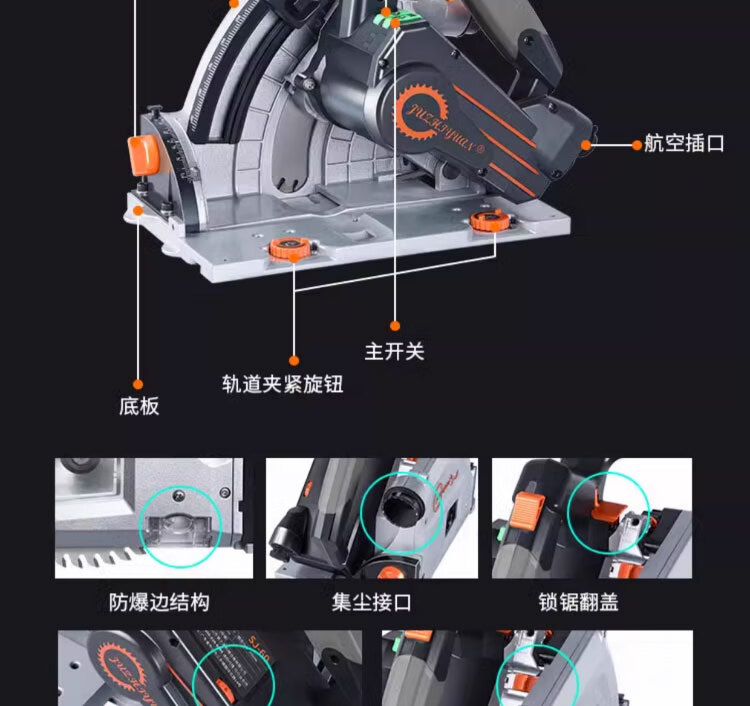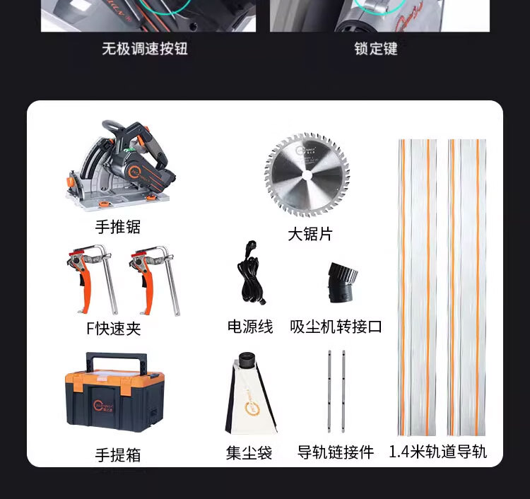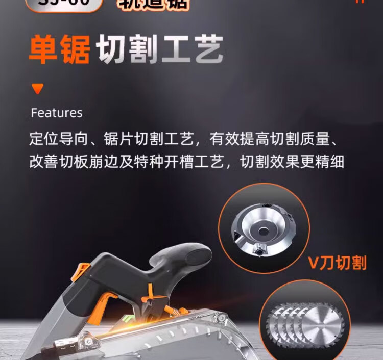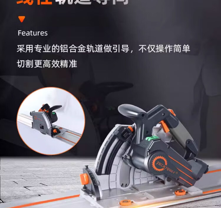 Source of saws 2025 new brushless track saw woodworking chainsaw guide rail dust-free electric circular saw portable sheet gypsum board single saw SJ-60+1.4m track*2+portable vacuum cleaner
