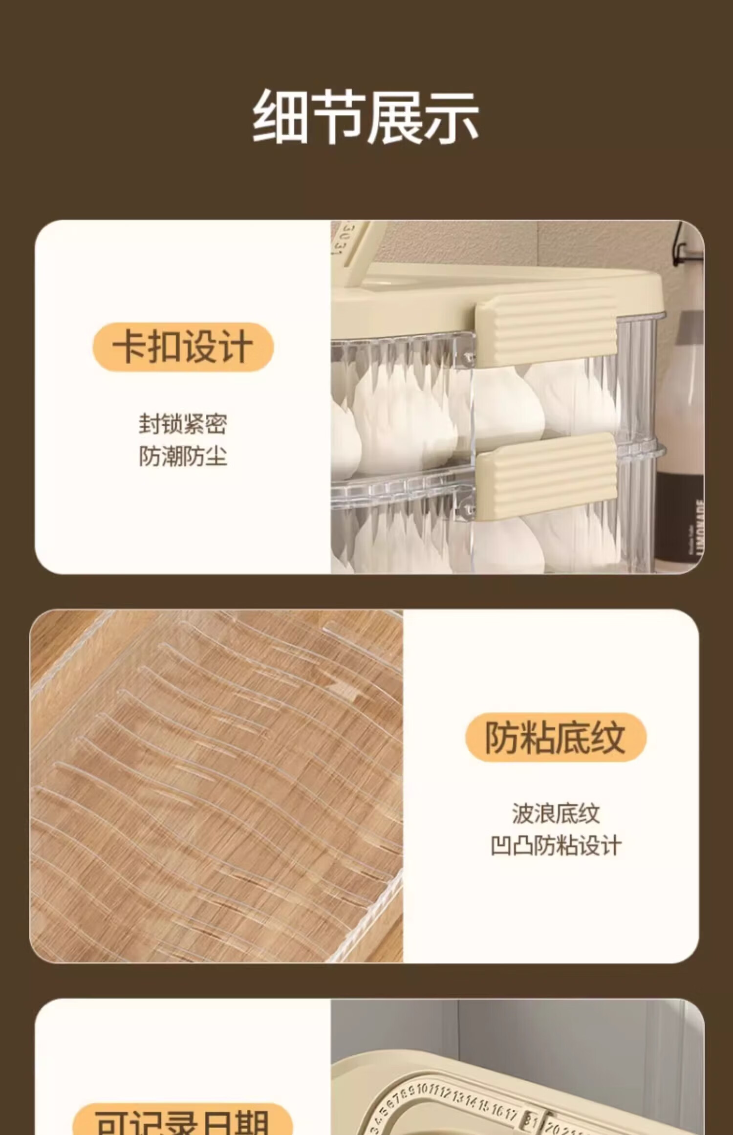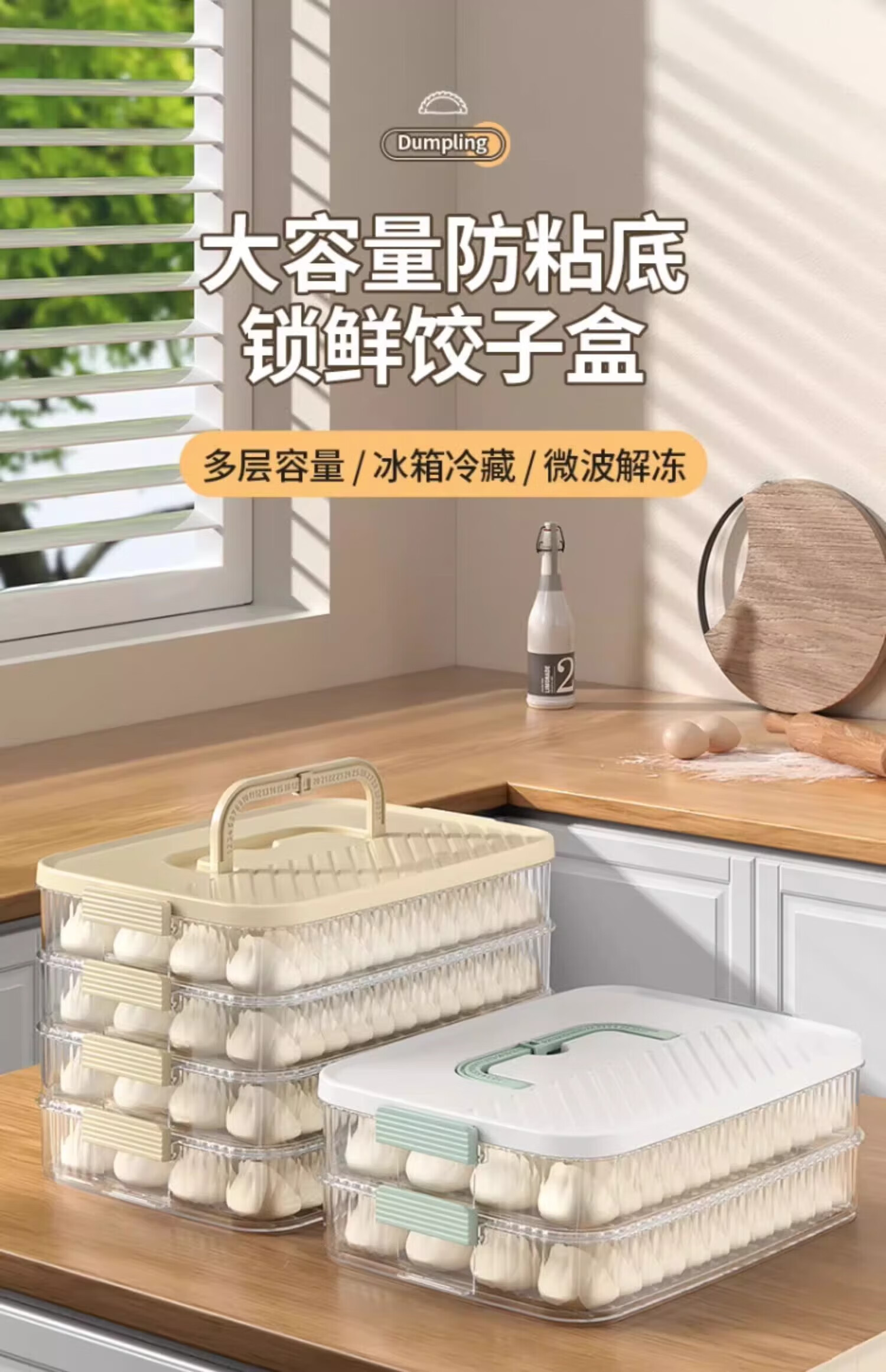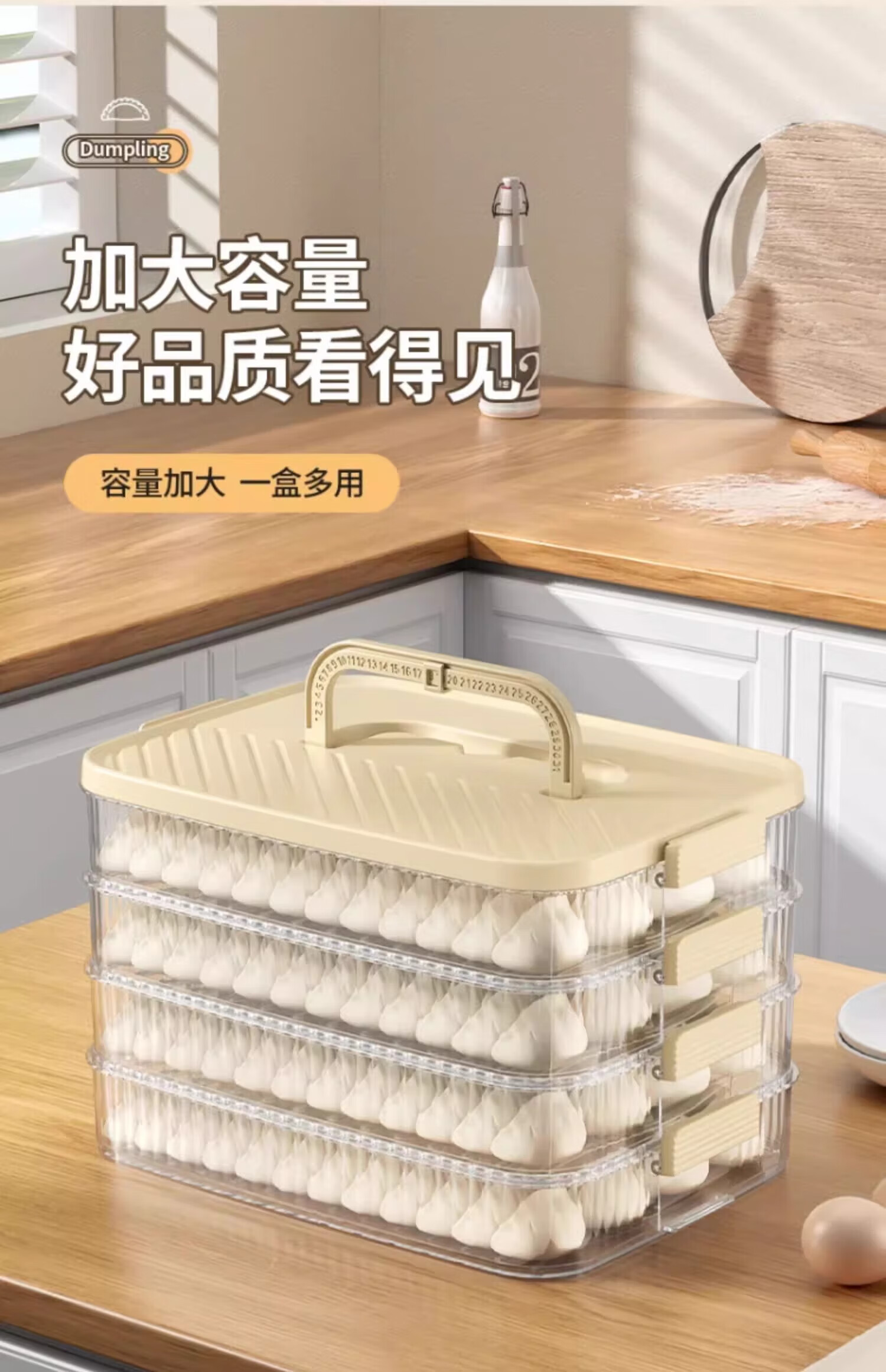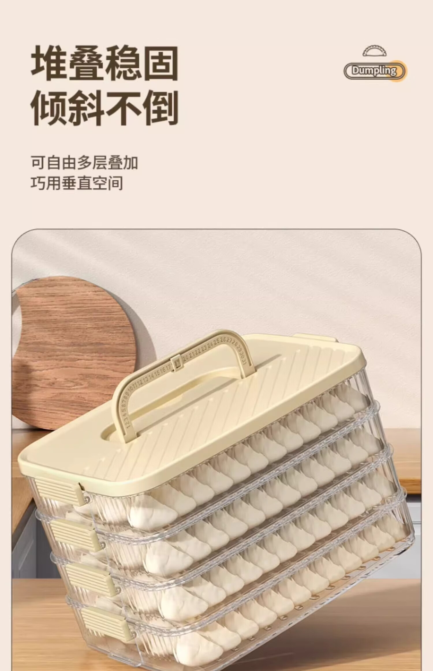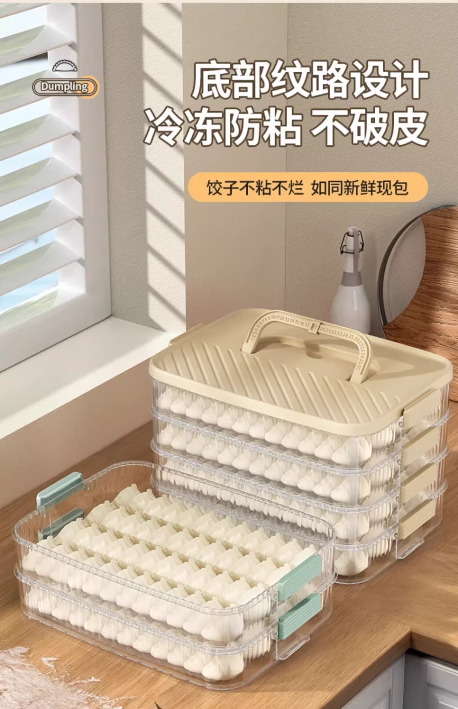 Cilock Dumpling Box Refrigerator Storage Box Food Contact Grade Dumplings and Wontons Freezer Storage Box Portable Cream White Free Filling Pick 3 Layers
