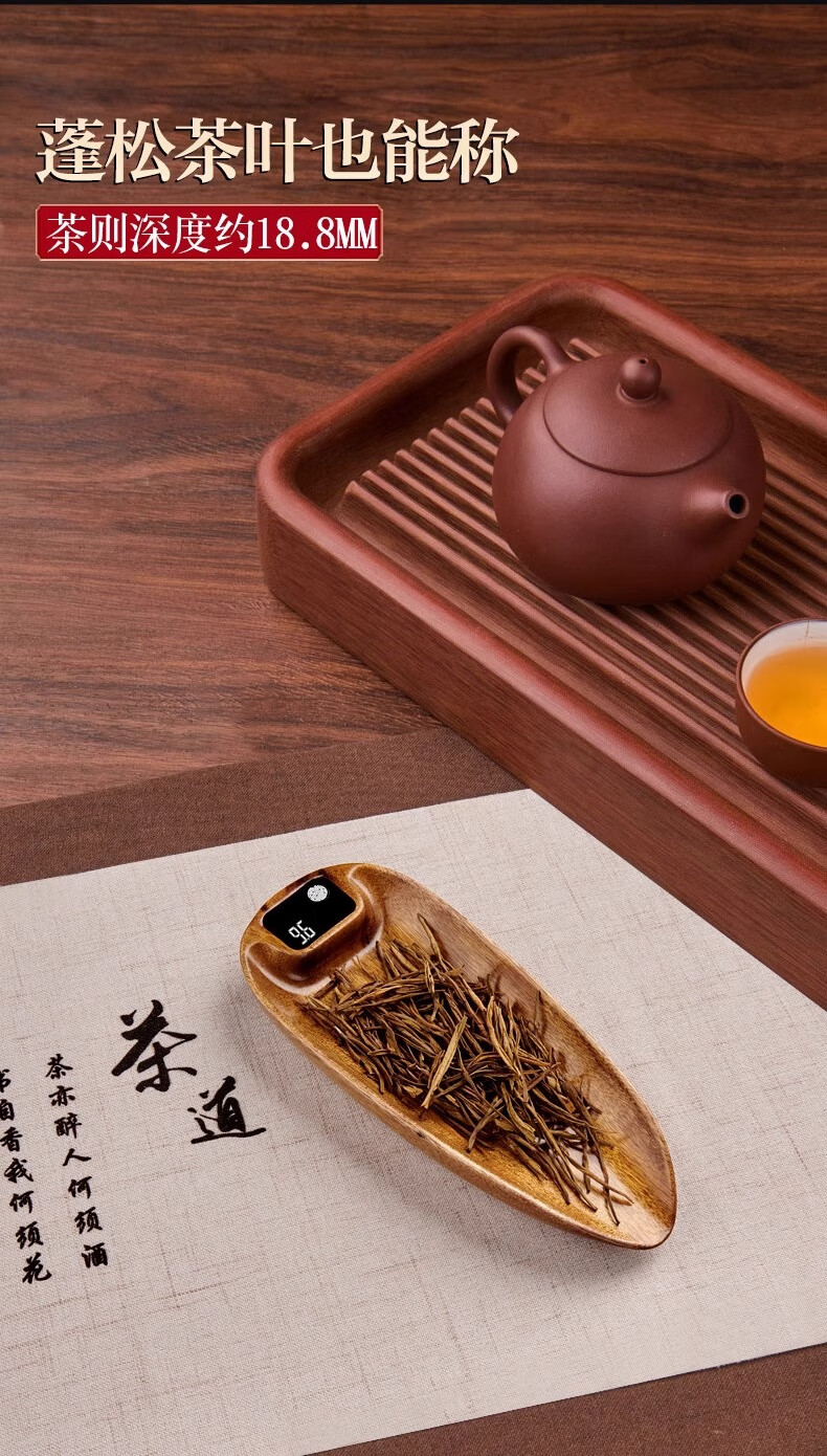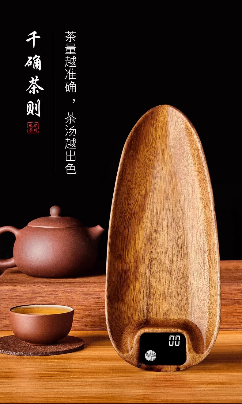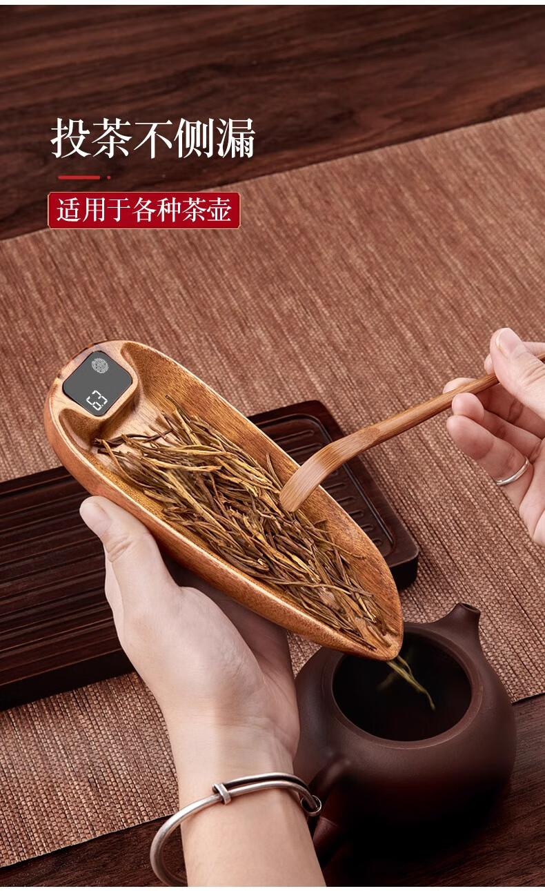 KTRUE exquisite solid wood electronic tea weighing tea set electronic scale tea weighing device tea lotus tea spoon tea ceremony accessories weighing tea solid wood golden nanmu 200g0.1g free tea knife set