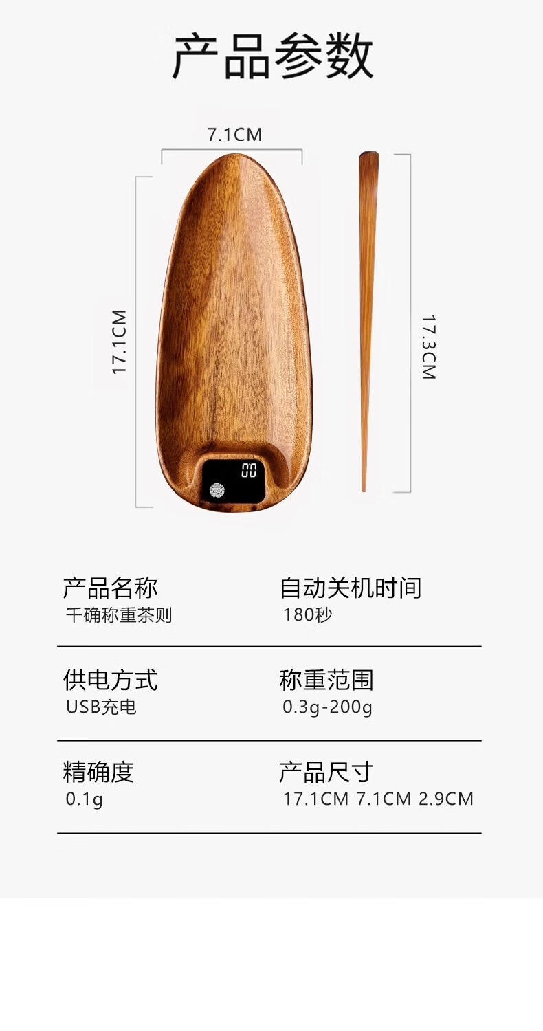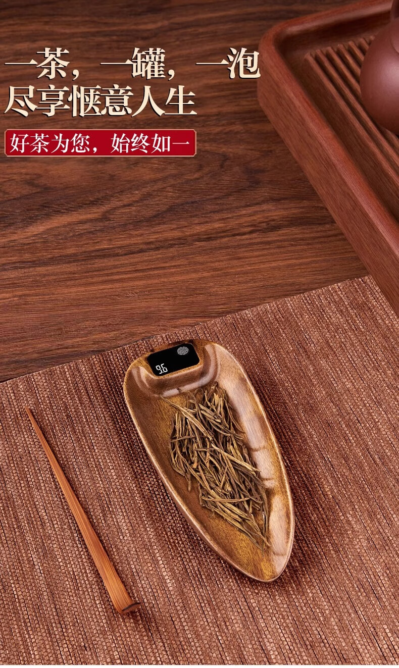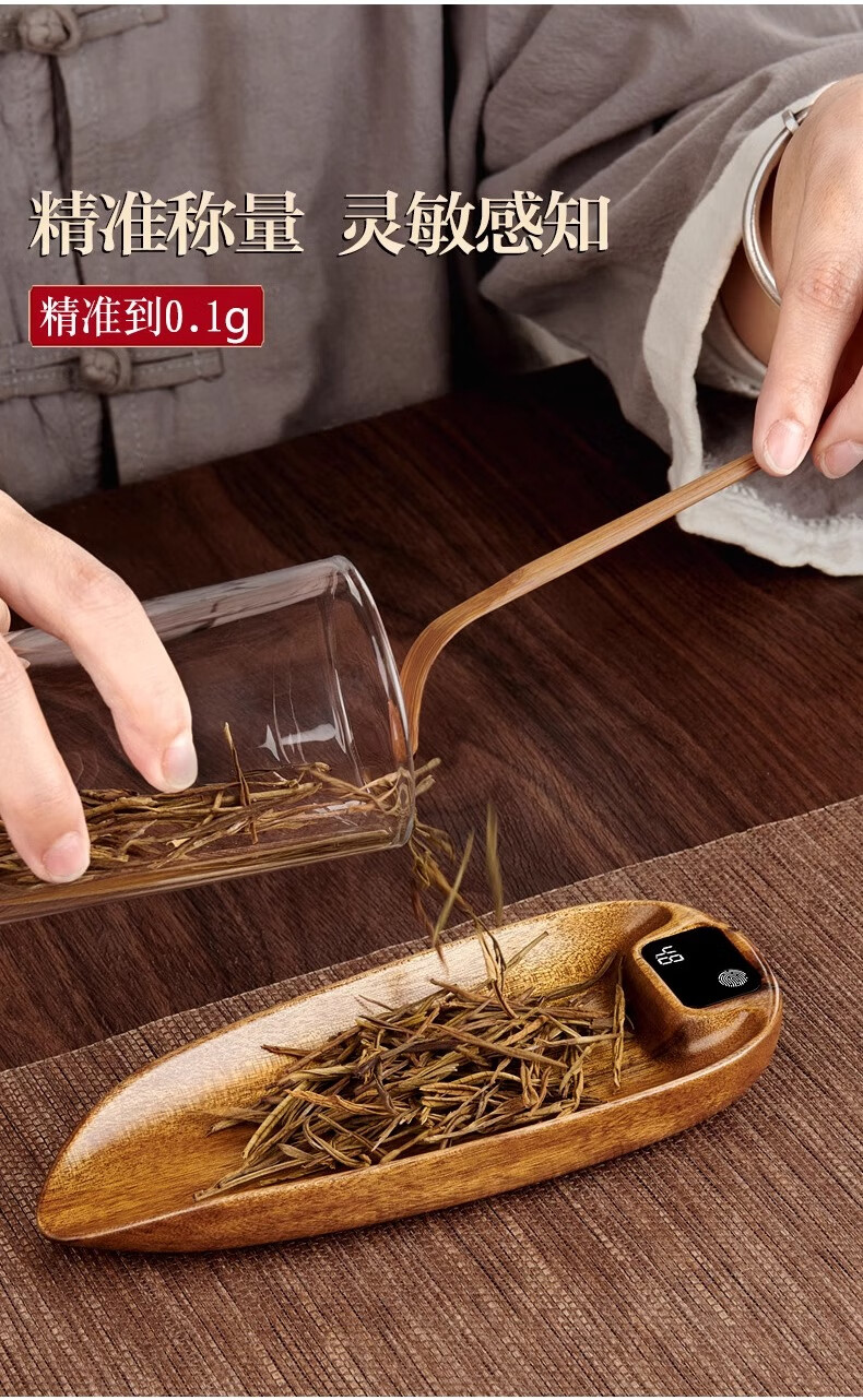 KTRUE exquisite solid wood electronic tea weighing tea set electronic scale tea weighing device tea lotus tea spoon tea ceremony accessories weighing tea solid wood golden nanmu 200g0.1g free tea knife set
