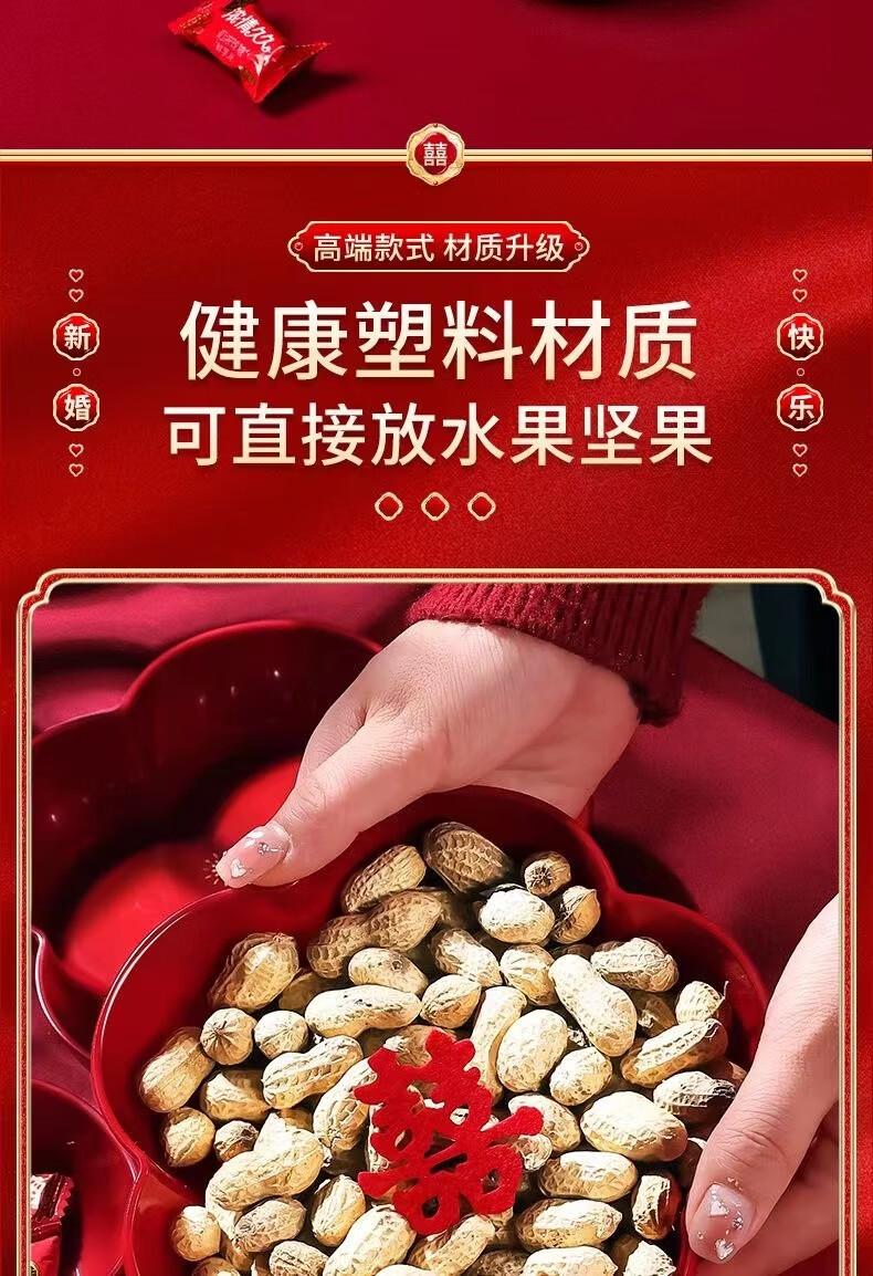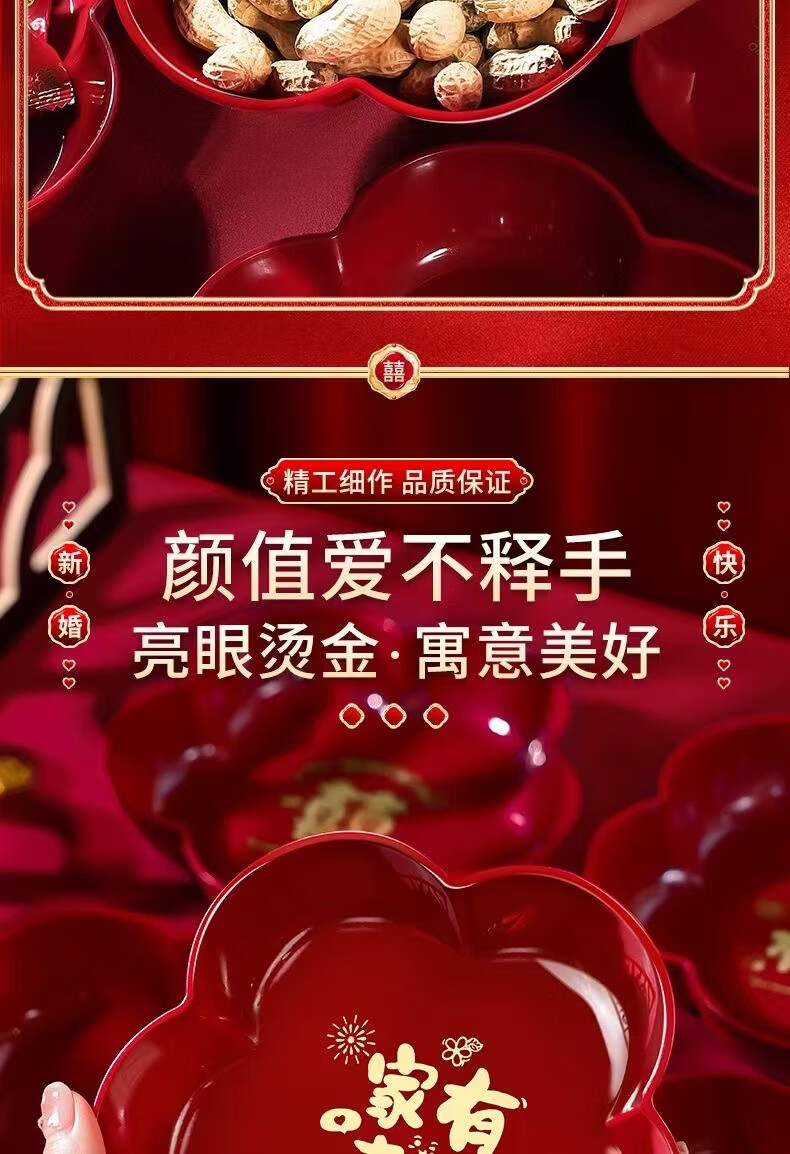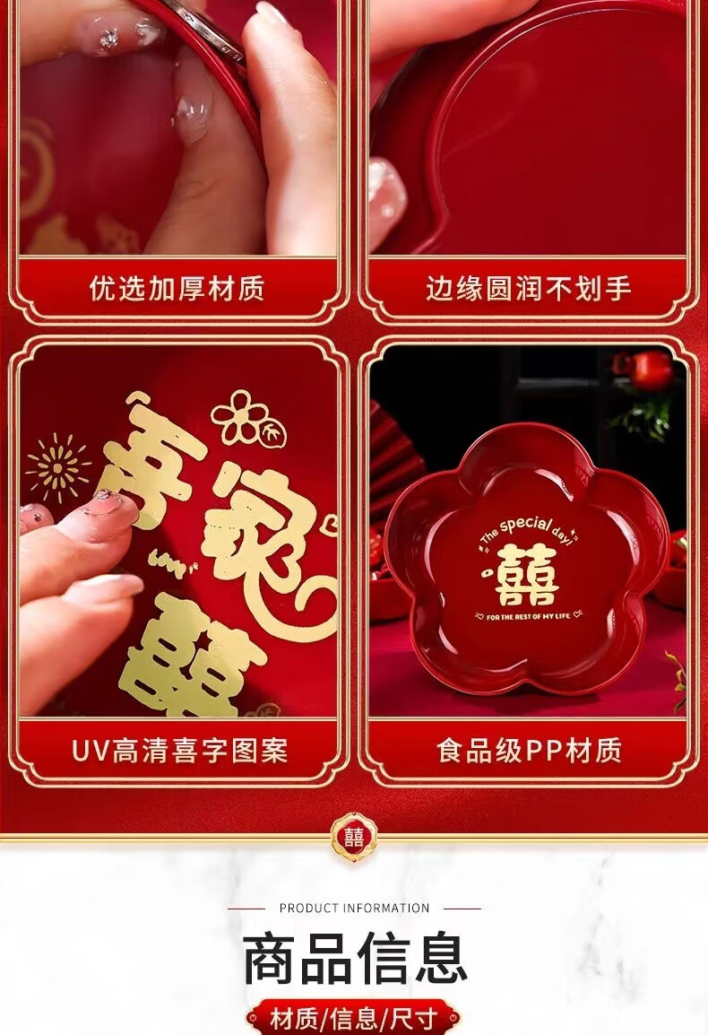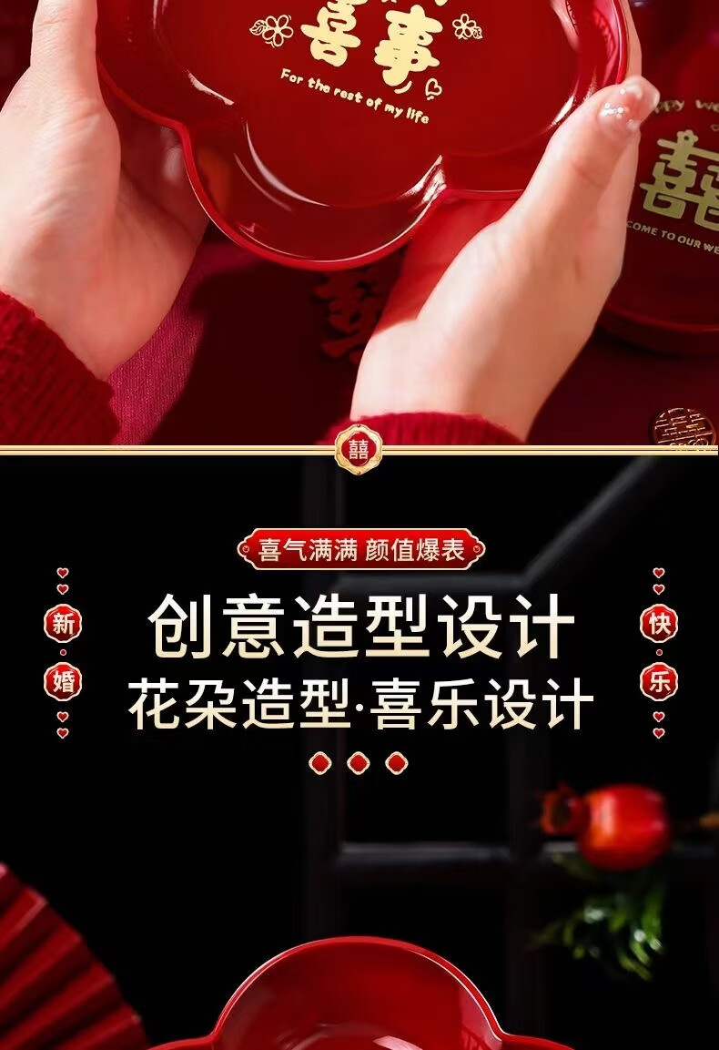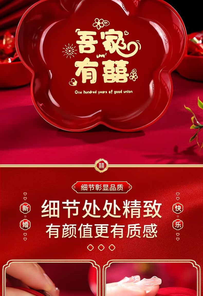 UOSO Wedding Candy Plate Living Room Red Dried Fruit Plate Engagement Ornaments Wedding Happy Words Fruit Plate Wedding Decoration Arrangement Plate (My Family Is Happy) Large Size 22*3.5cm 8 pcs + 20 small happy words