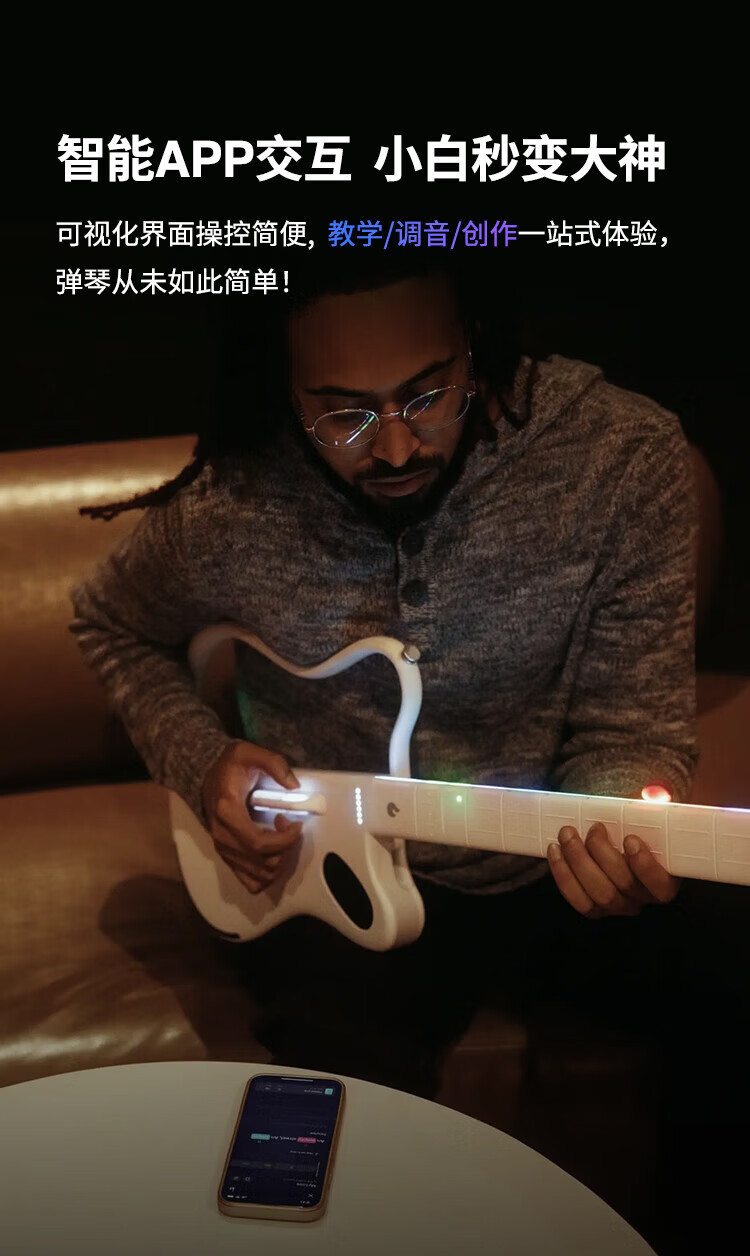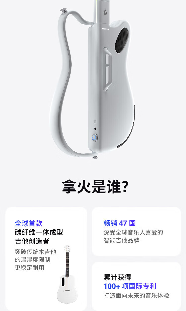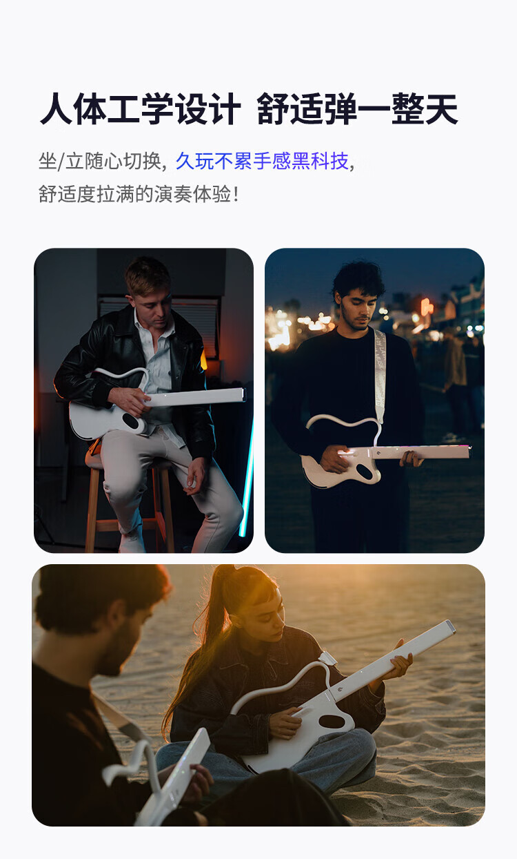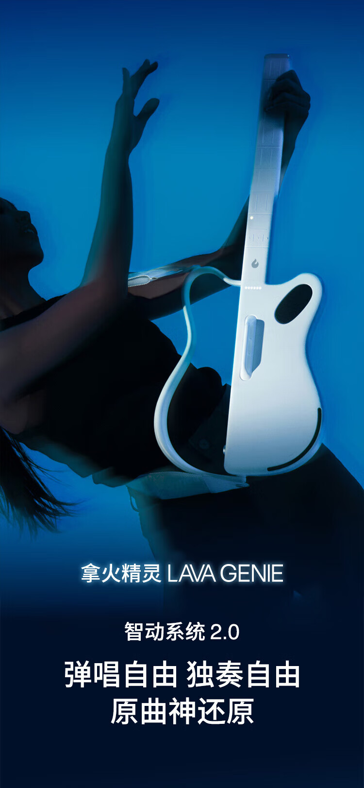 LAVAGUITAR LAVAGUITAR Lafire Elf Stringless Guitar Smart Guitar Automatic Ballad Professional Playing and Singing Guitar Beginner Cyber Guitar White 500+ Tone Colors Free to Play and Sing