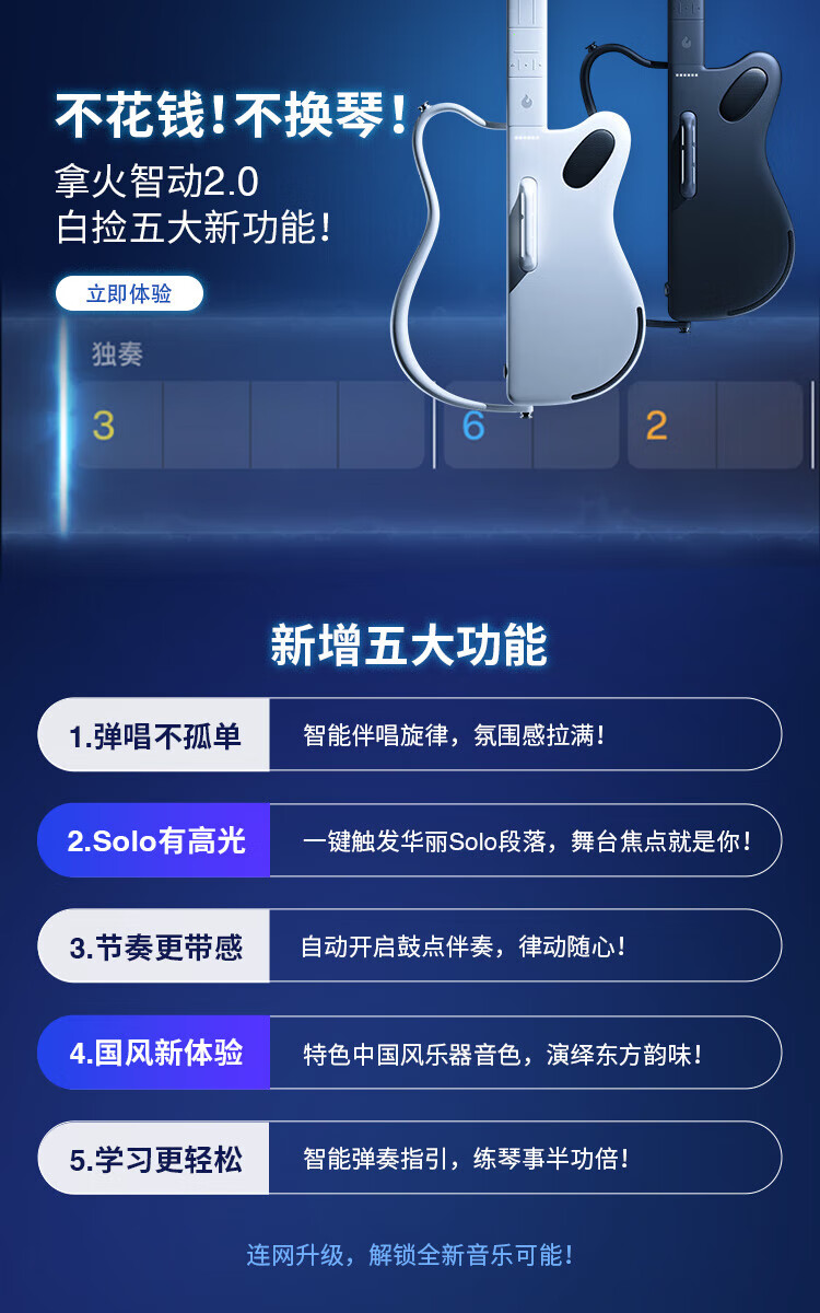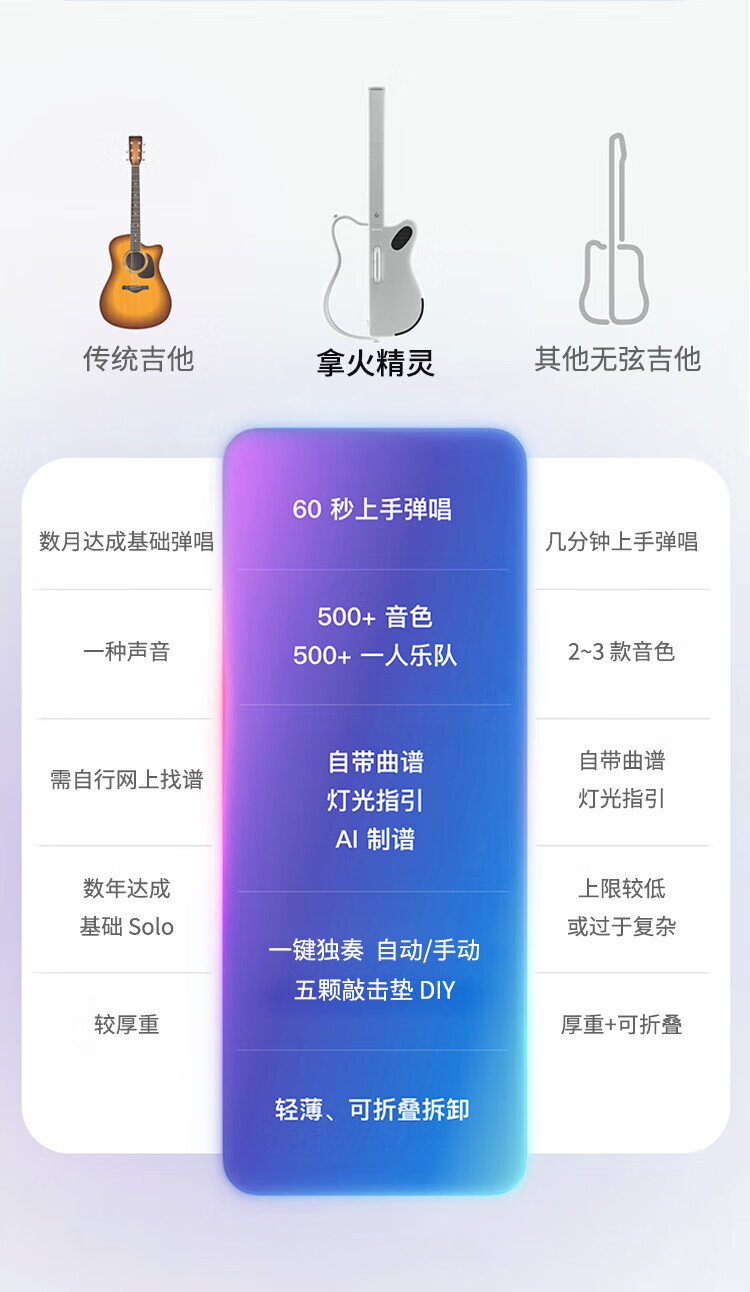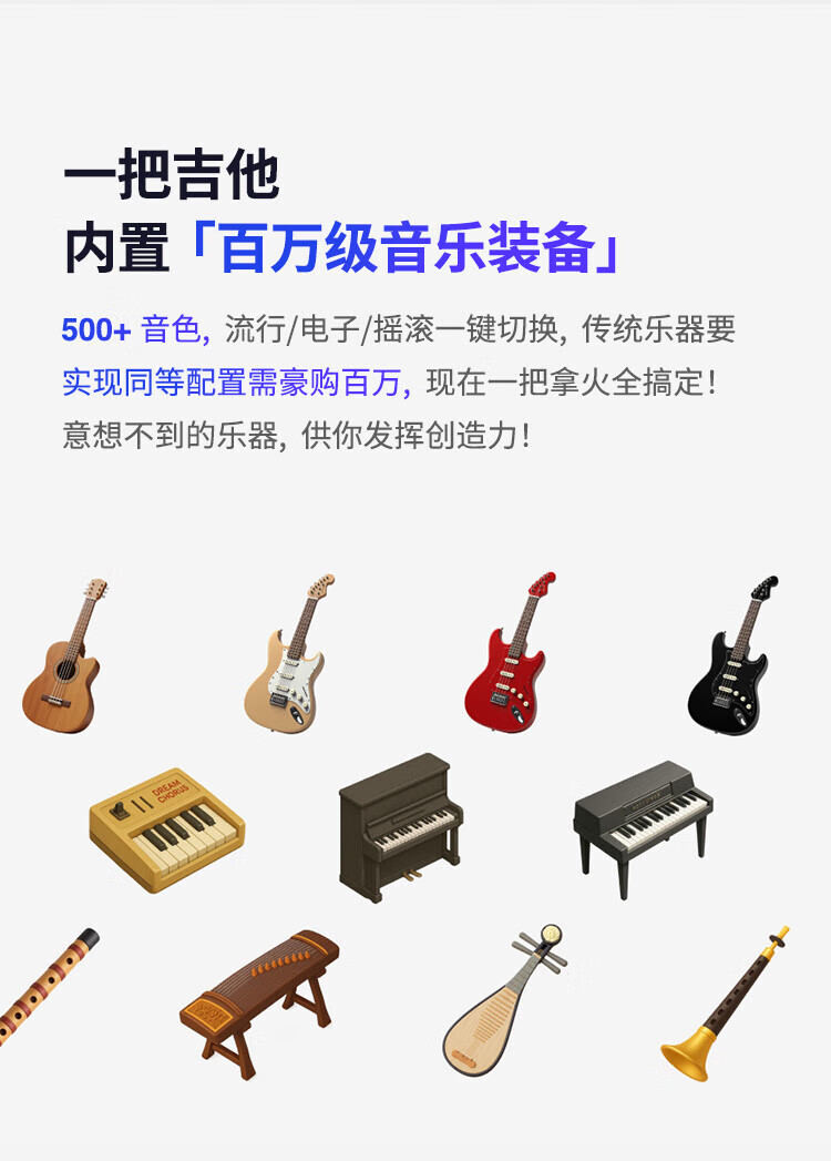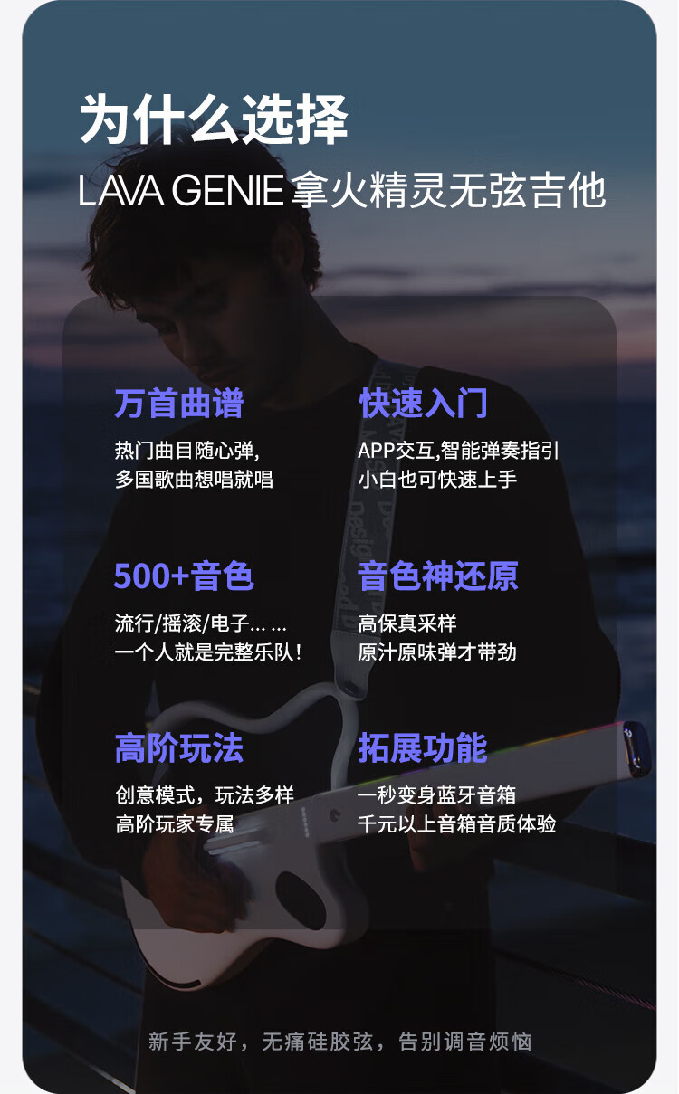 LAVAGUITAR LAVAGUITAR Lafire Elf Stringless Guitar Smart Guitar Automatic Ballad Professional Playing and Singing Guitar Beginner Cyber Guitar White 500+ Tone Colors Free to Play and Sing