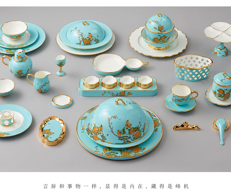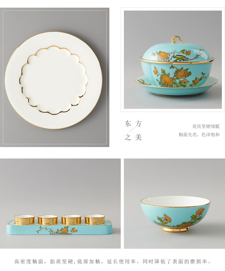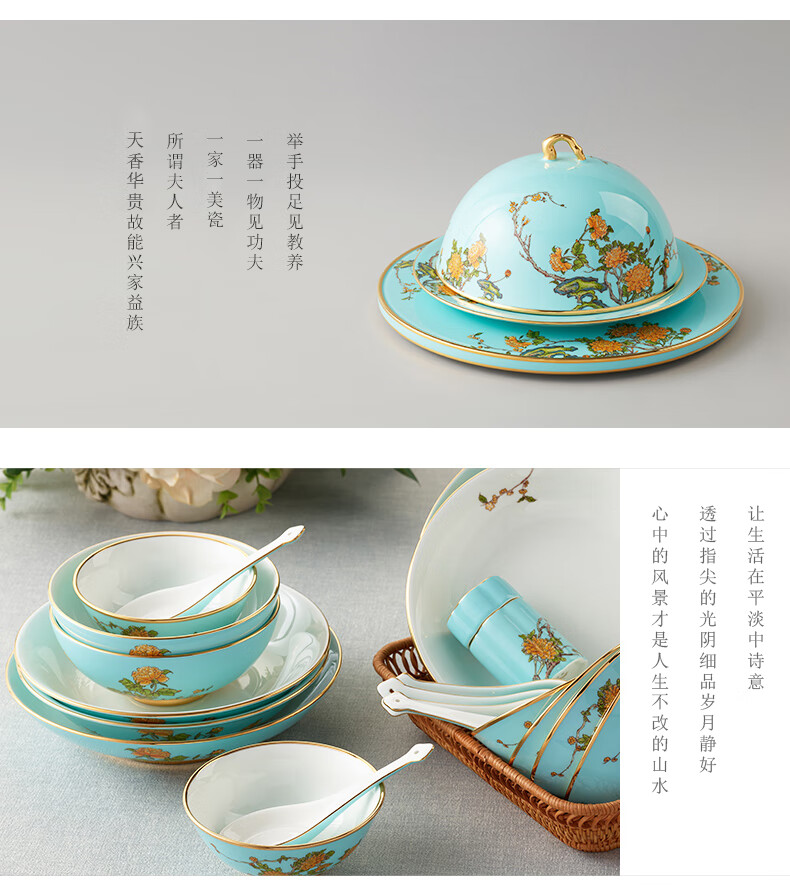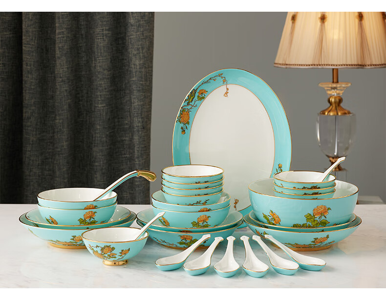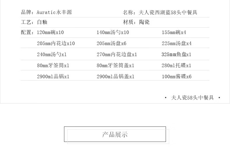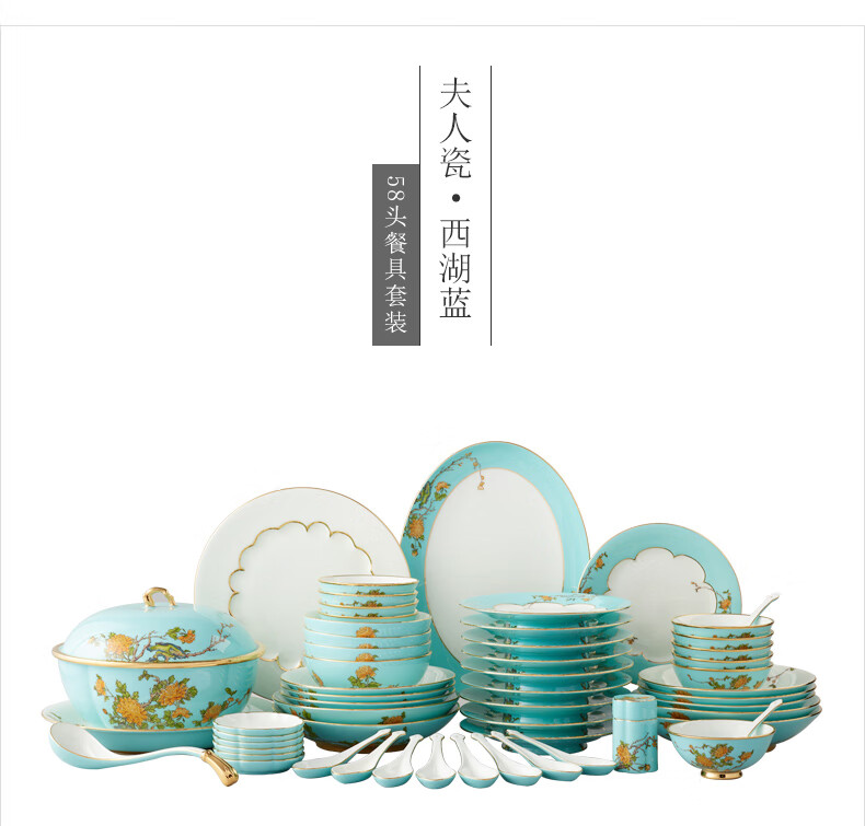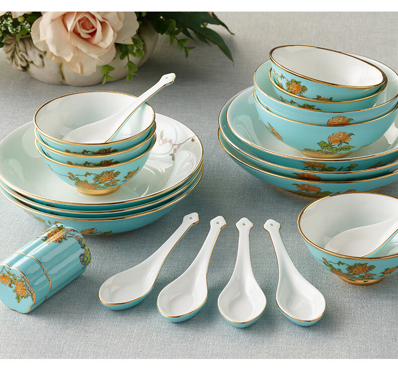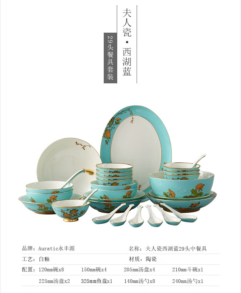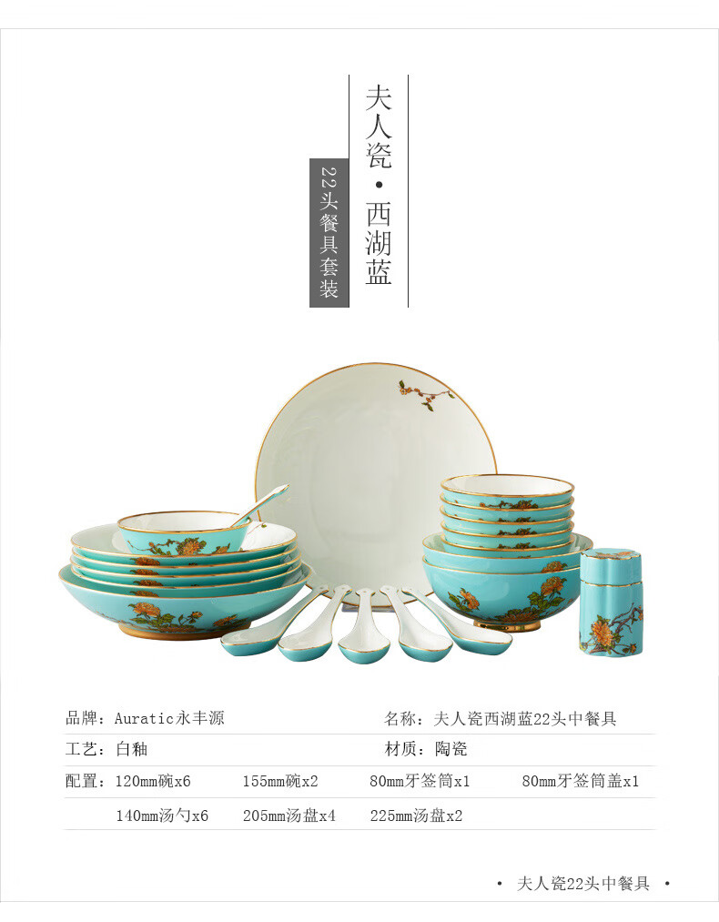 Yongfengyuan (auratic) West Lake Blue 22-piece, 29-piece, 58-piece tableware set, exquisite tableware, ceramic dishes for home use, moving gift, West Lake Blue 6-person tableware, 22 pieces