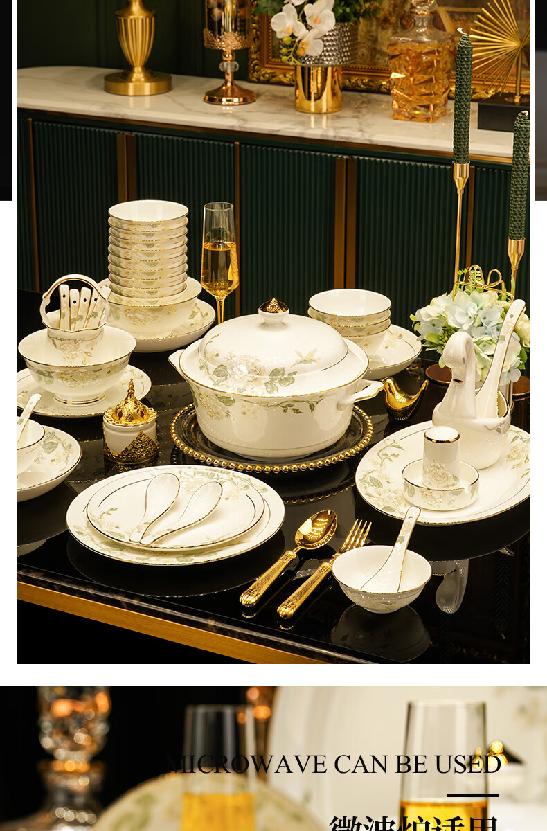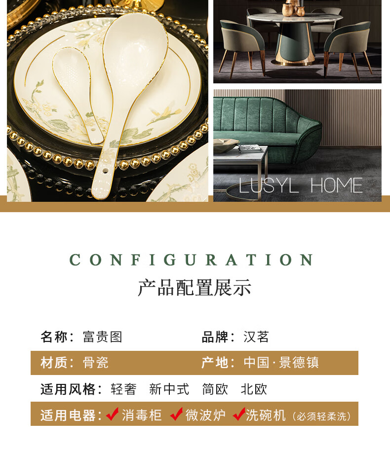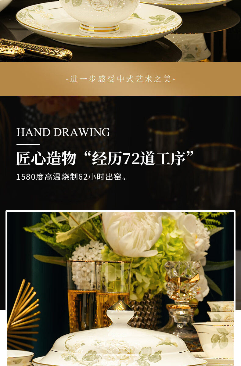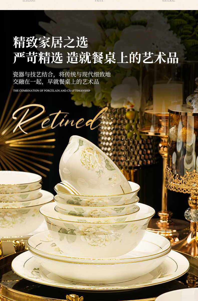 Han Ming New Year's Gift Jingdezhen Chinese-style bowls, plates and tableware complete set for home relocation bone china bowls and chopsticks set high-end luxury version 88-piece set丨with high-end brocade box