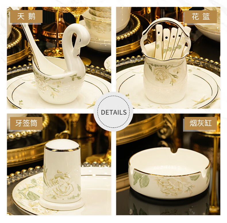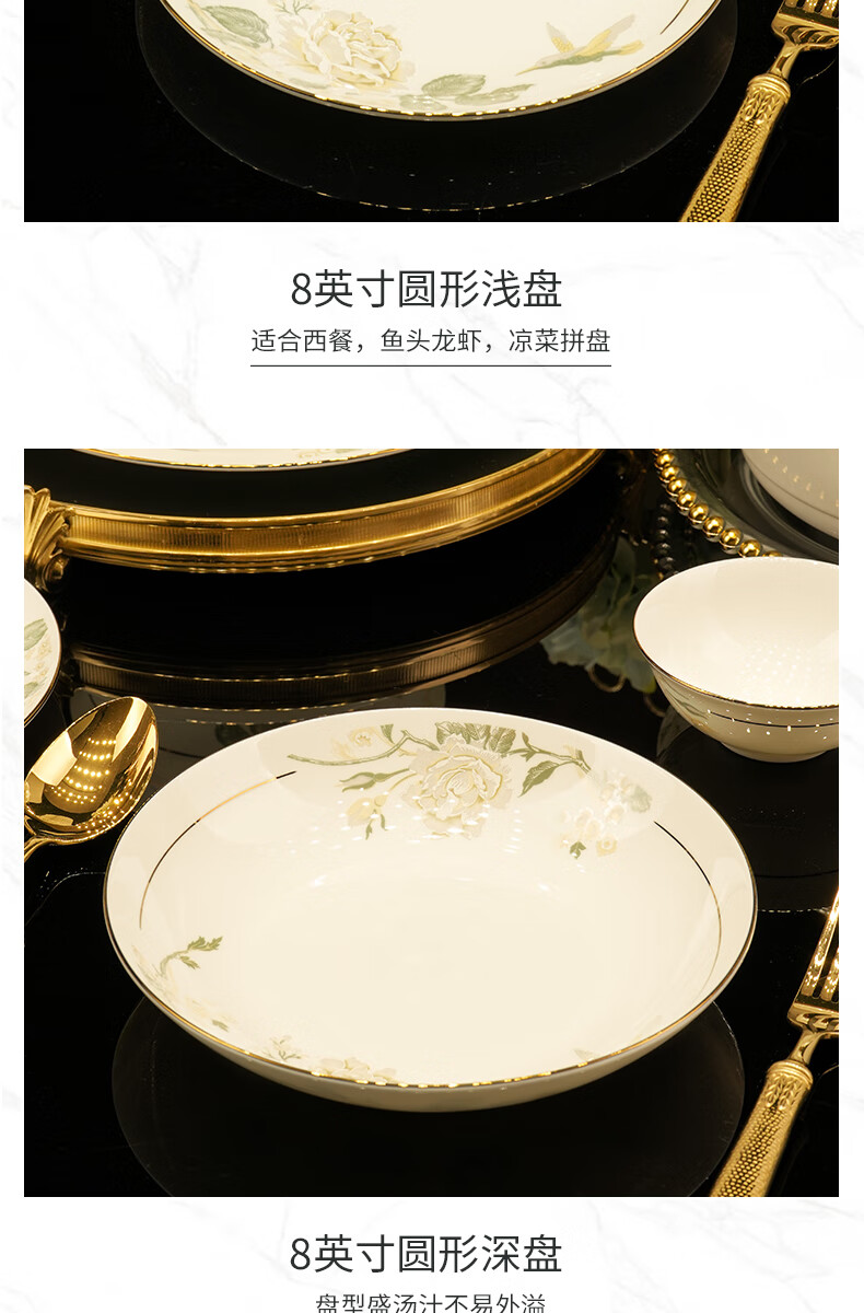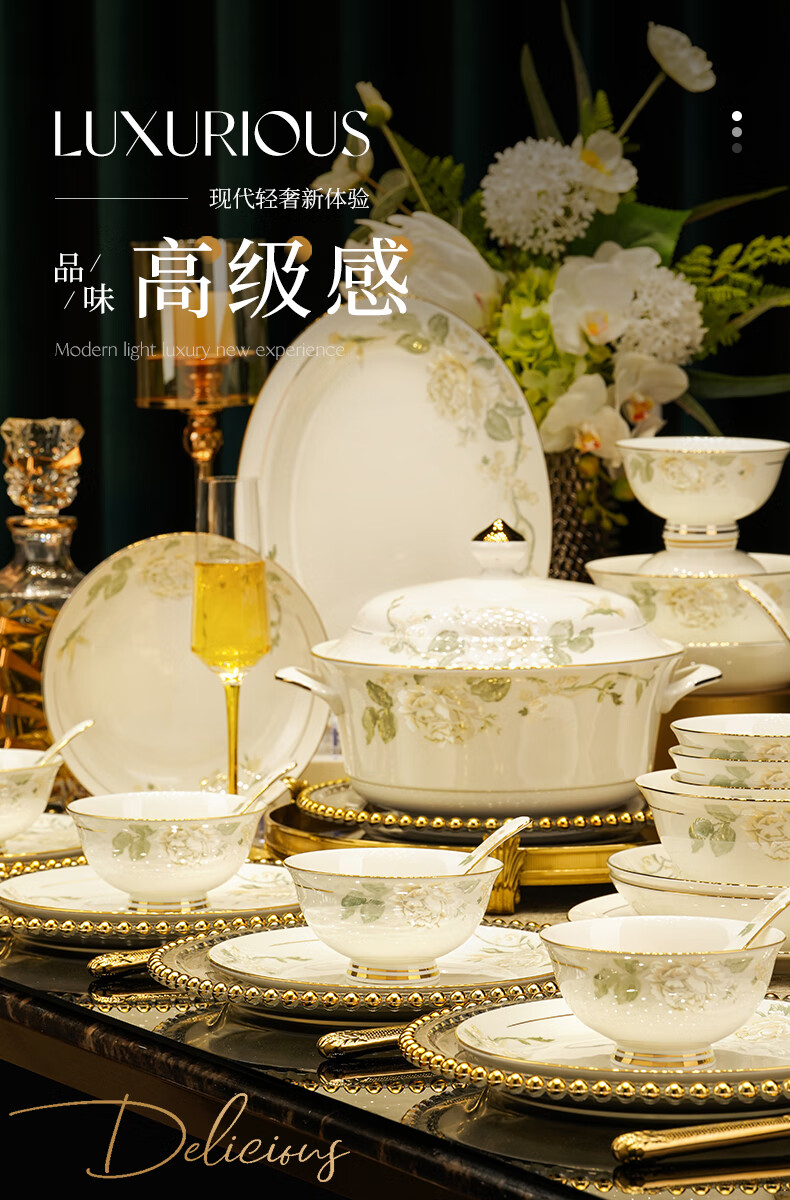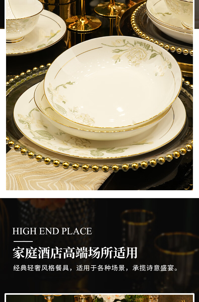 Han Ming New Year's Gift Jingdezhen Chinese-style bowls, plates and tableware complete set for home relocation bone china bowls and chopsticks set high-end luxury version 88-piece set丨with high-end brocade box
