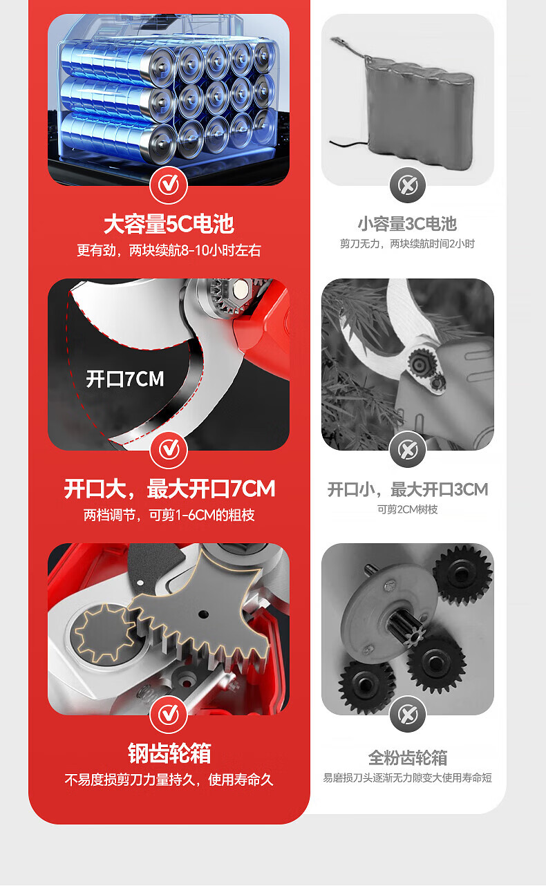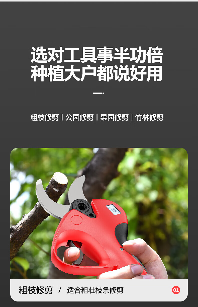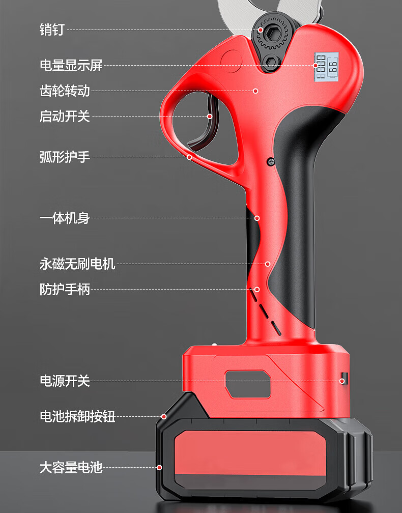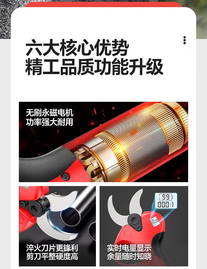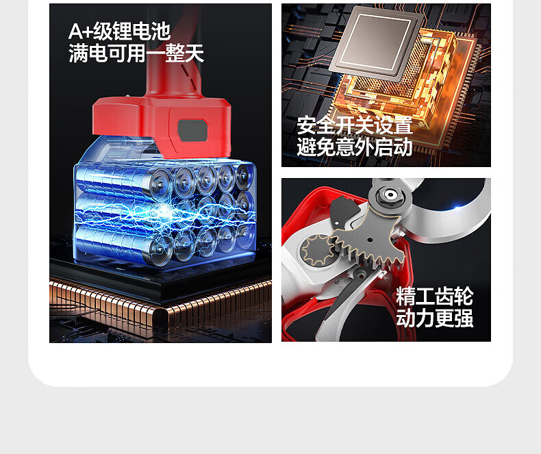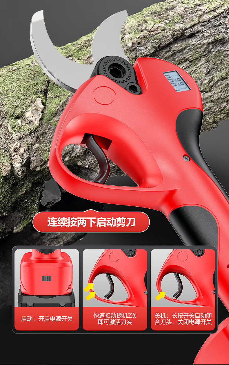 Huchen German electric pruning shears, special fruit tree high branch shears, brushless Makita lithium-ion electric shears, large opening, high voltage - 1000 times force/diameter 5cm/10 sections dual electricity, one second pruning/pure copper motor/free tool box gift bag