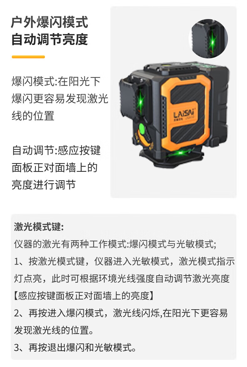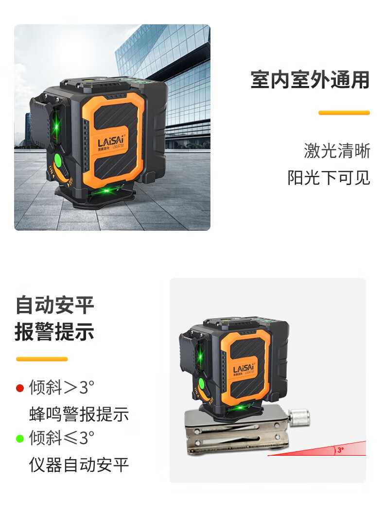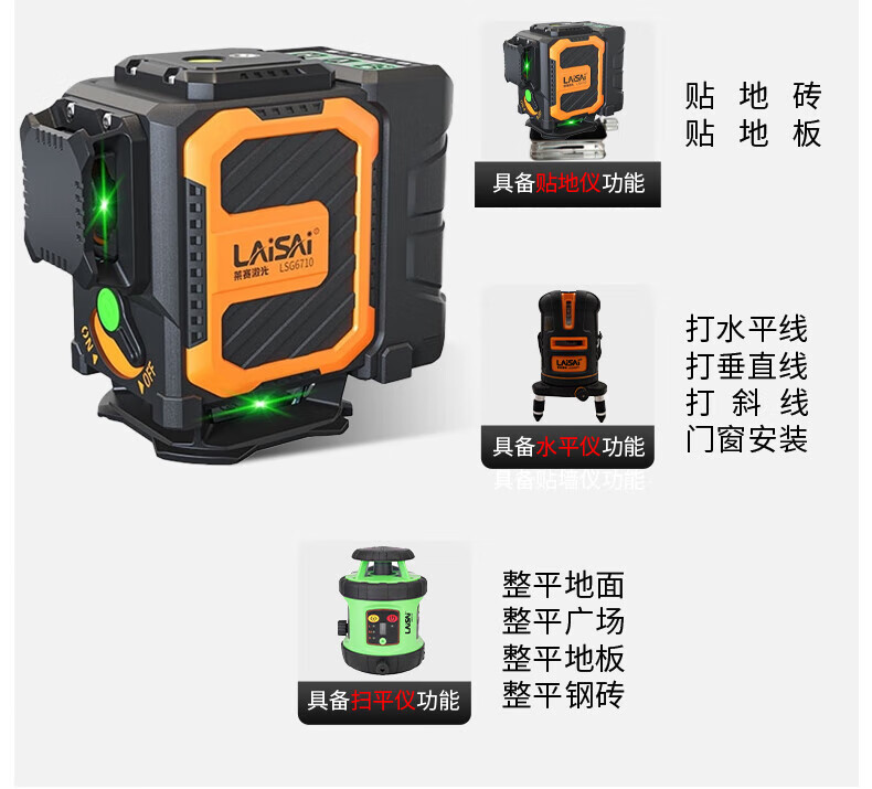 Laser Laser's new LSG6720 green light 16-wire wall-mounted automatic Anping strong light outdoor dot infrared level meter red light 6710 dual-power standard configuration lower level