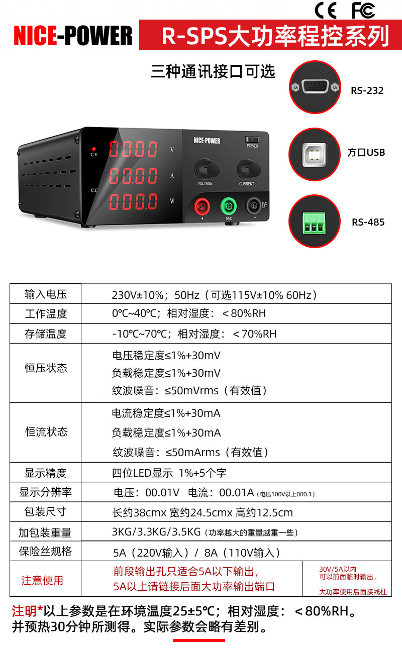 KUAIQU high-power program-controlled adjustable DC regulated power supply 30V60V150V programmable power supply high-precision adjustable power supply R-SPS1530 15V30A450W