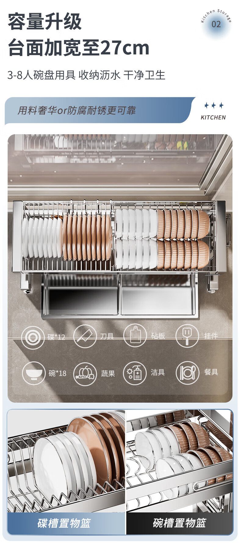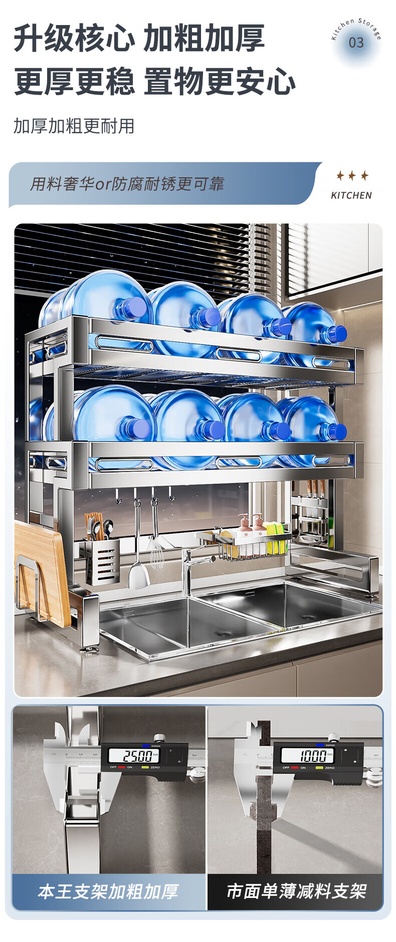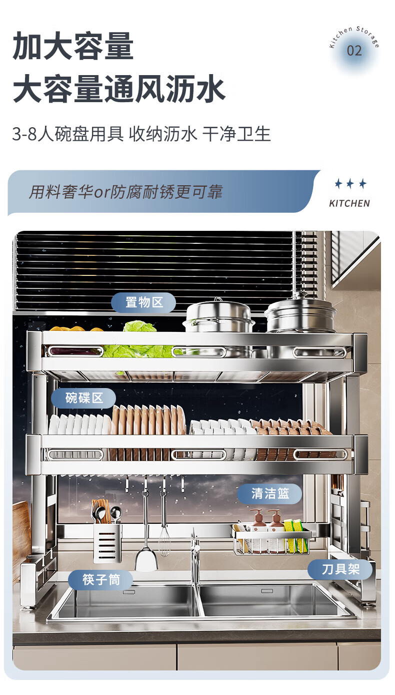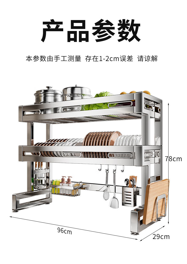 Benwang (BW) 304 stainless steel kitchen sink rack drain bowl rack multi-functional home kitchen dishware storage rack 304 stainless steel double-layer 86cm main rack + fully equipped