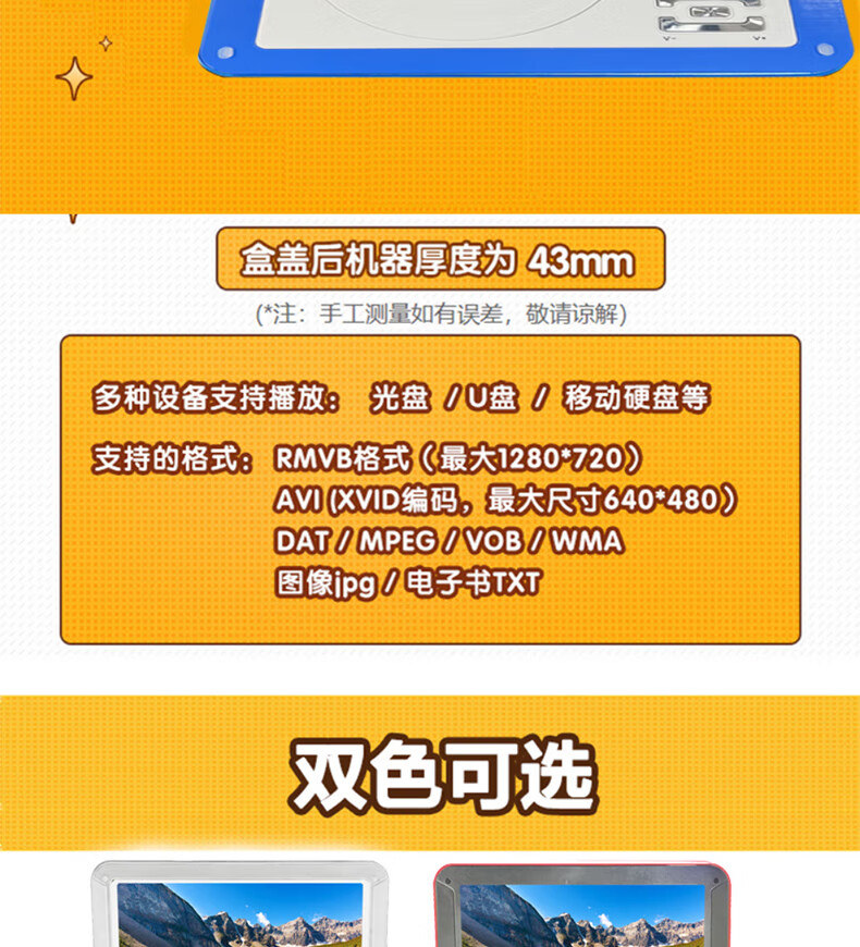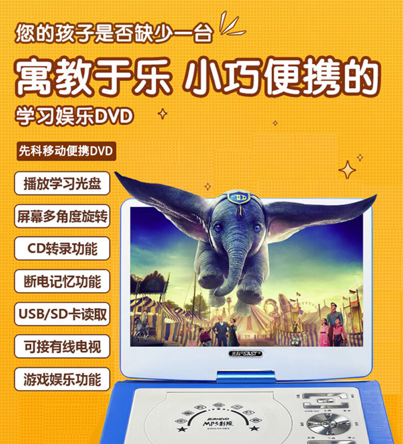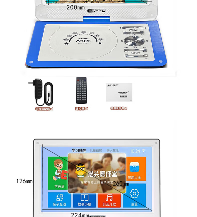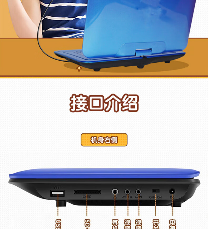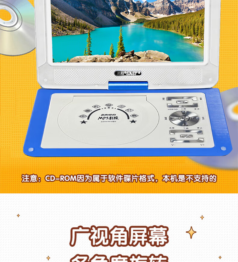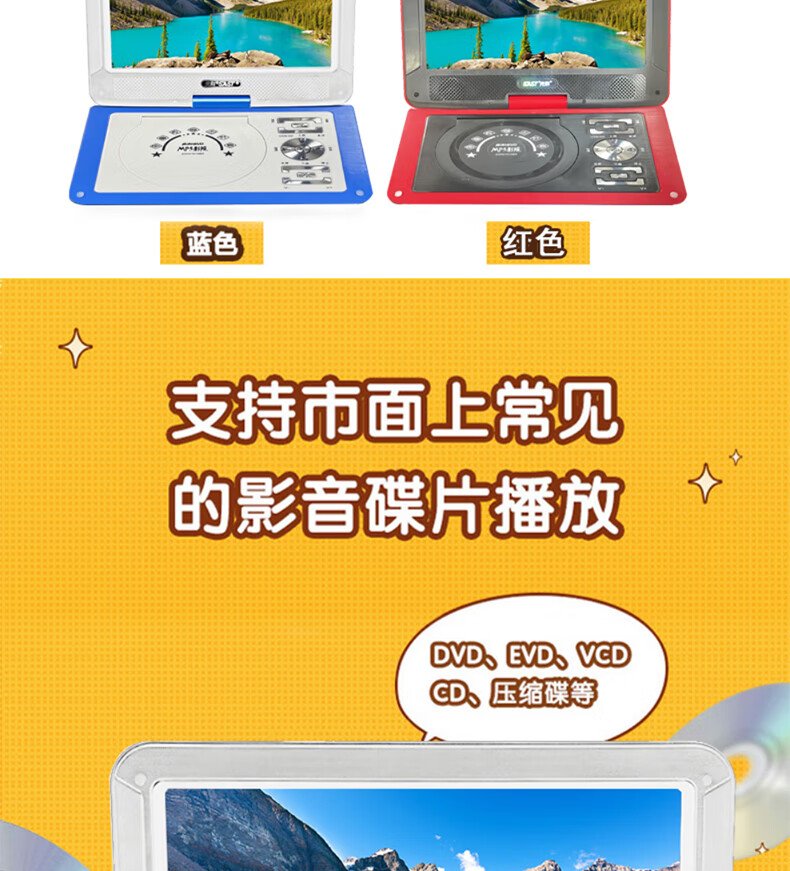 Xianke Mobile DVD Player Portable HD EVD TV Player 14# Blue HD Version Standard