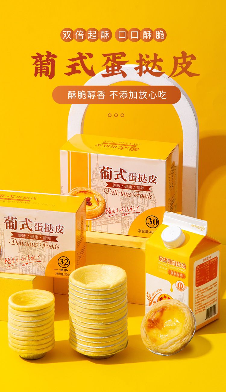 Egg tart liquid and egg tart crust McDonald's Portuguese large egg tart crust and egg tart liquid combination with tin bottom for home use Large egg tart crust 30 pieces