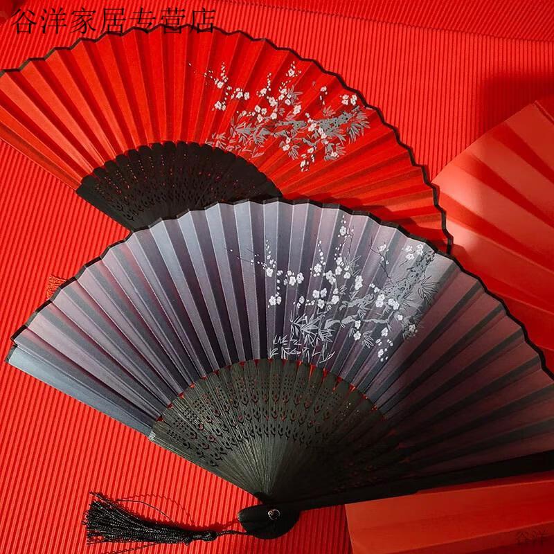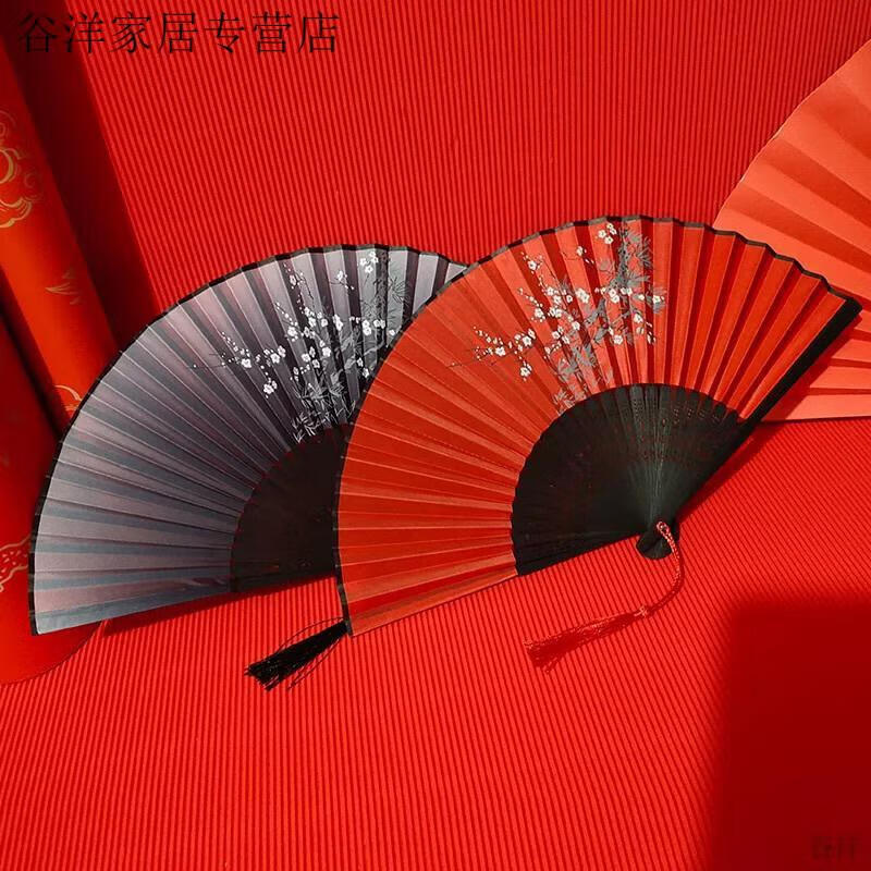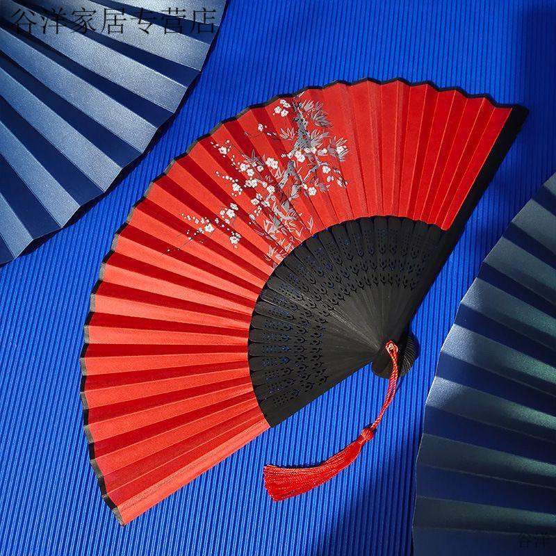 Ancient fan folding fan Chinese style men's and women's national fashion Hanfu cheongsam shooting dance portable portable folding compact fan Yixiaobaimei-red