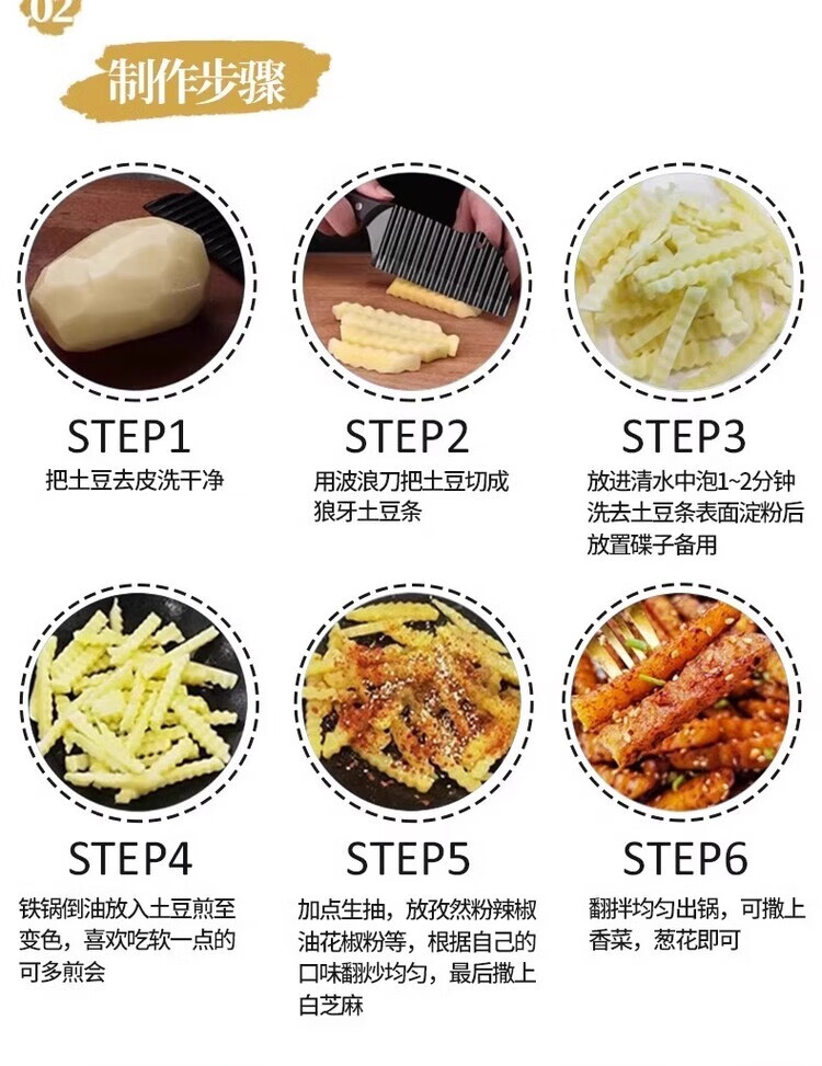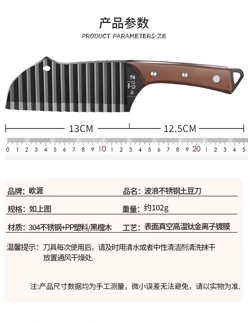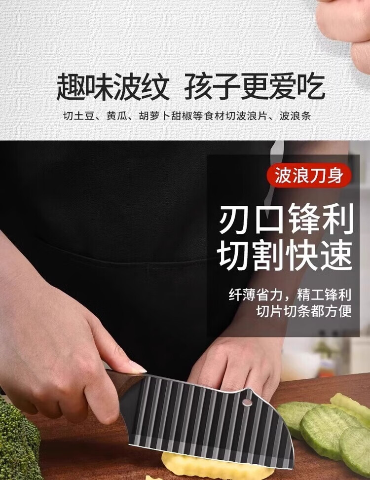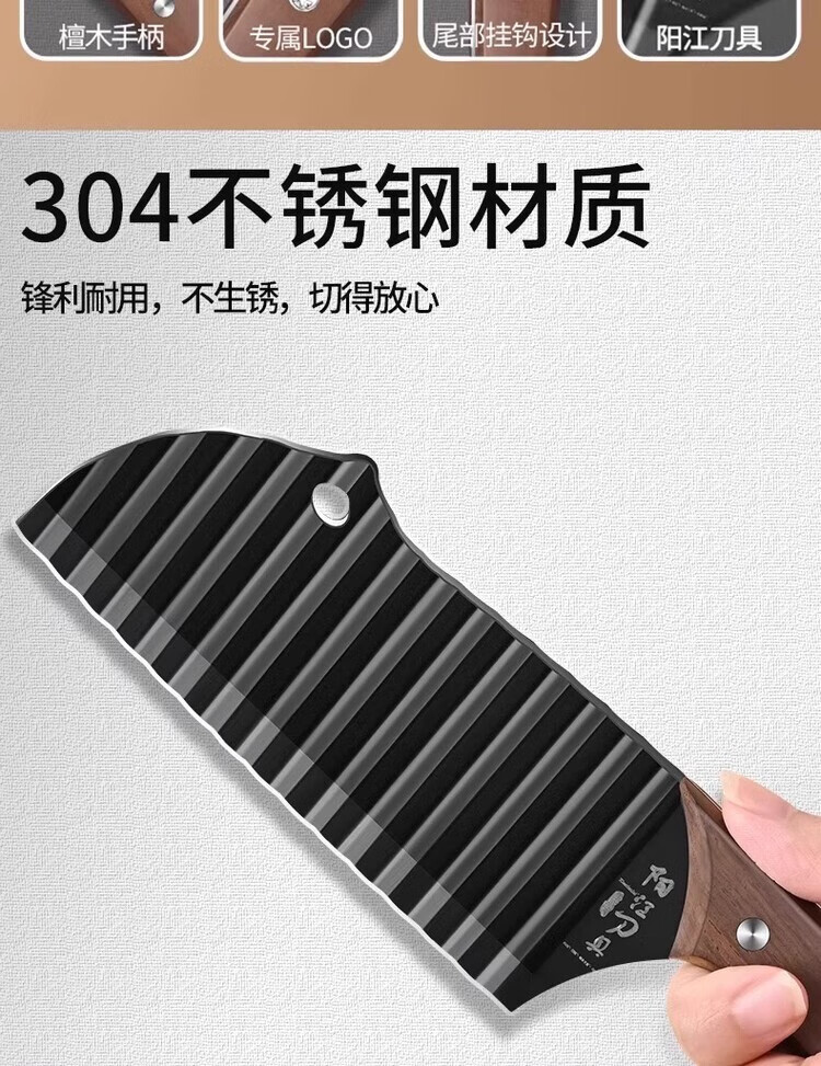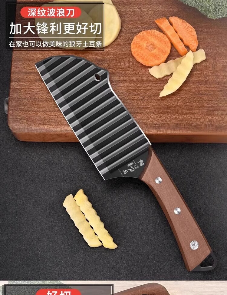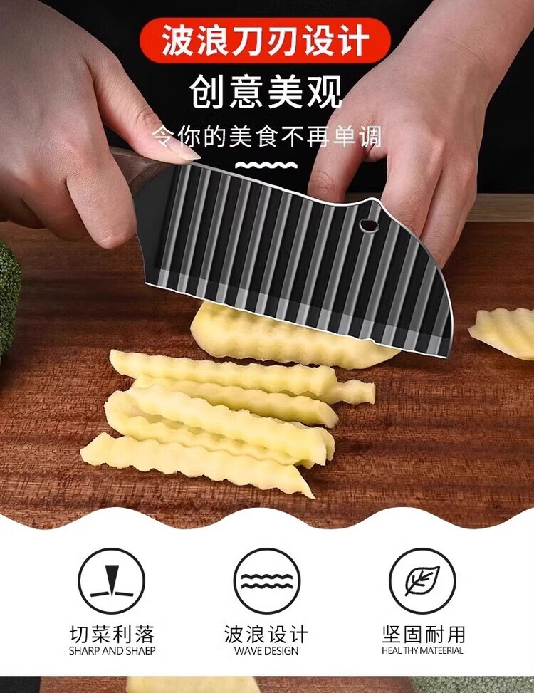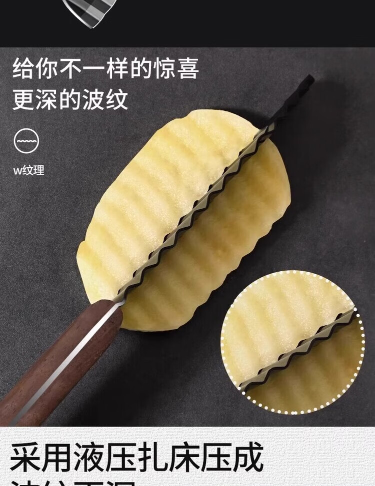 Oppein 304 Wolf Tooth Potato Knife Corrugated Knife Cut Potatoes Wave Knife Multifunctional Commercial Potato Chip Special Artifact 304 Ebony French Fries Knife