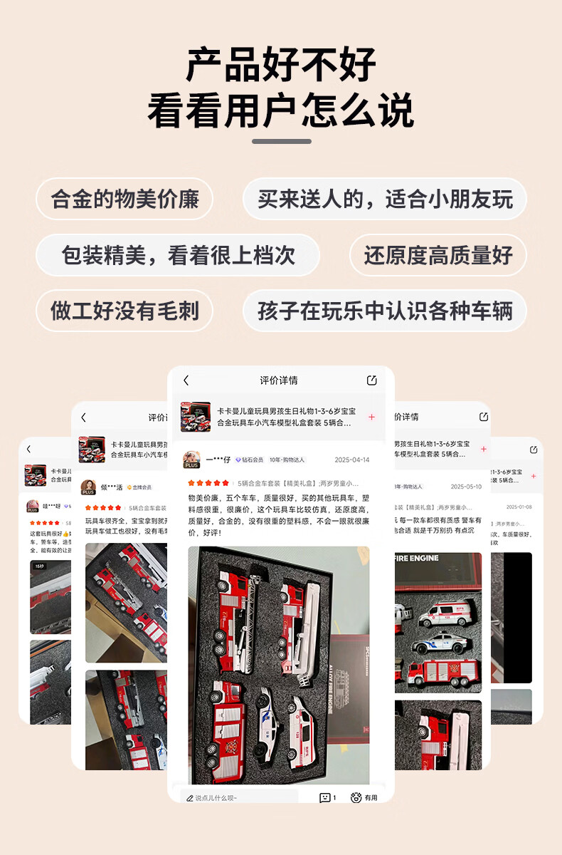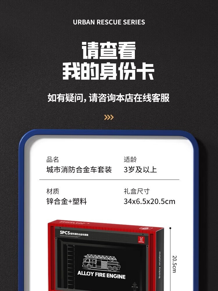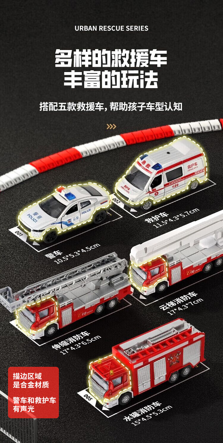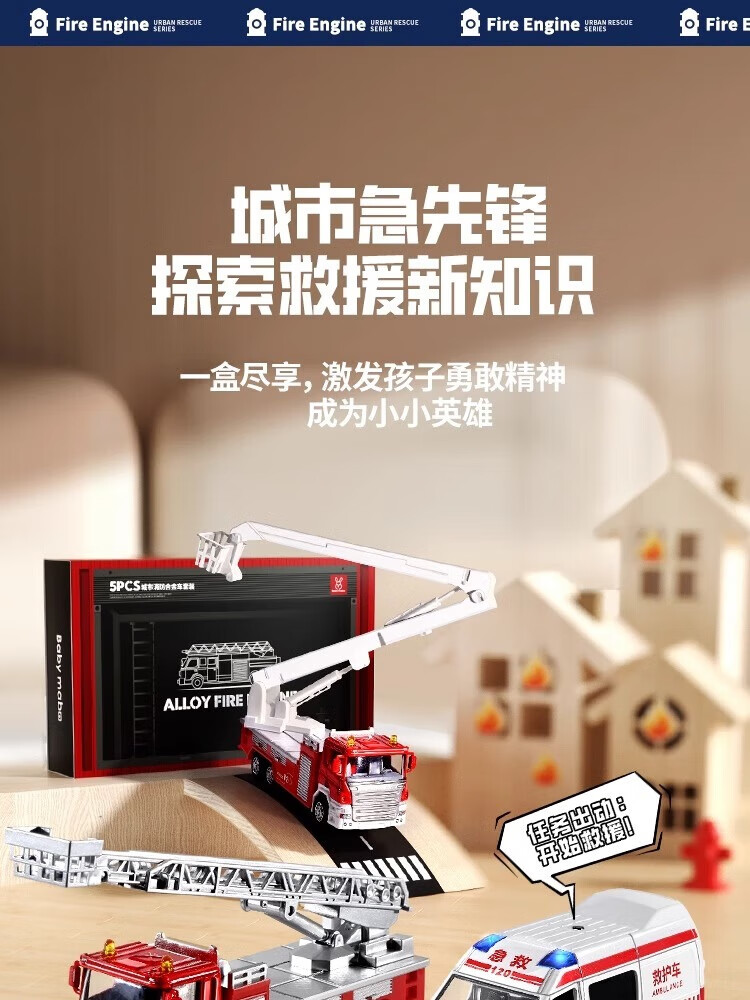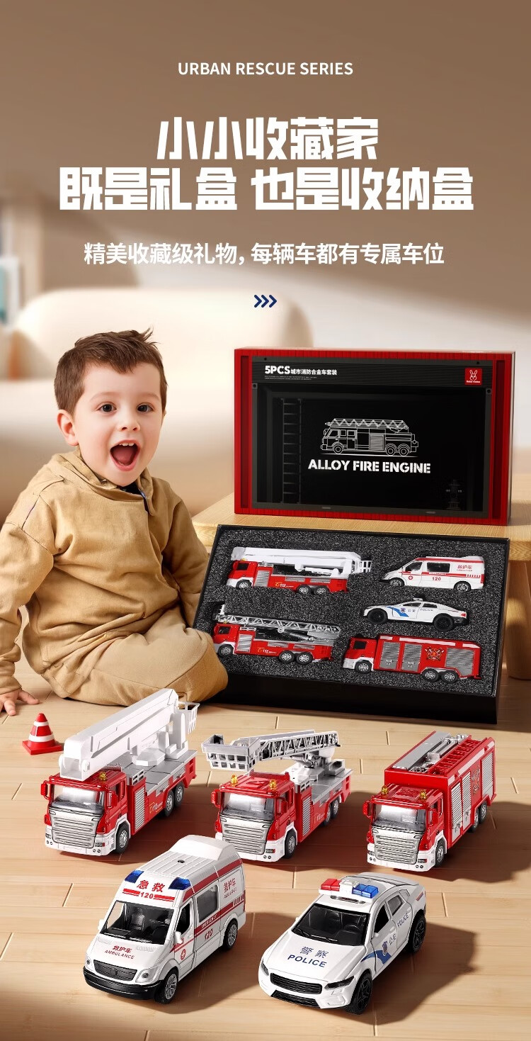 Kakaman children's toys boy birthday gift 1-3-6 years old baby alloy toy car car model gift box set 5 alloy car set exquisite gift box two-year-old boy fire truck ambulance toy New Year's Day and Spring Festival gift
