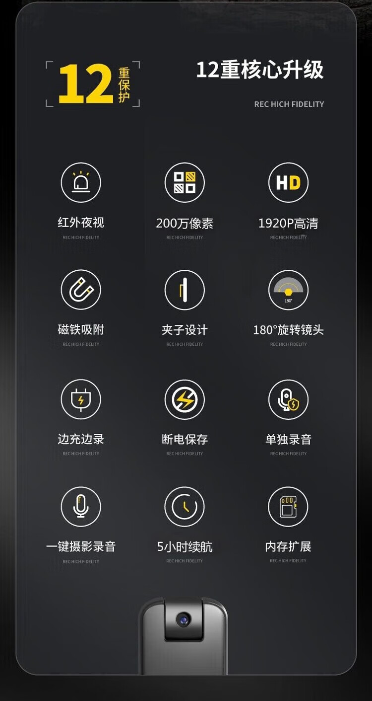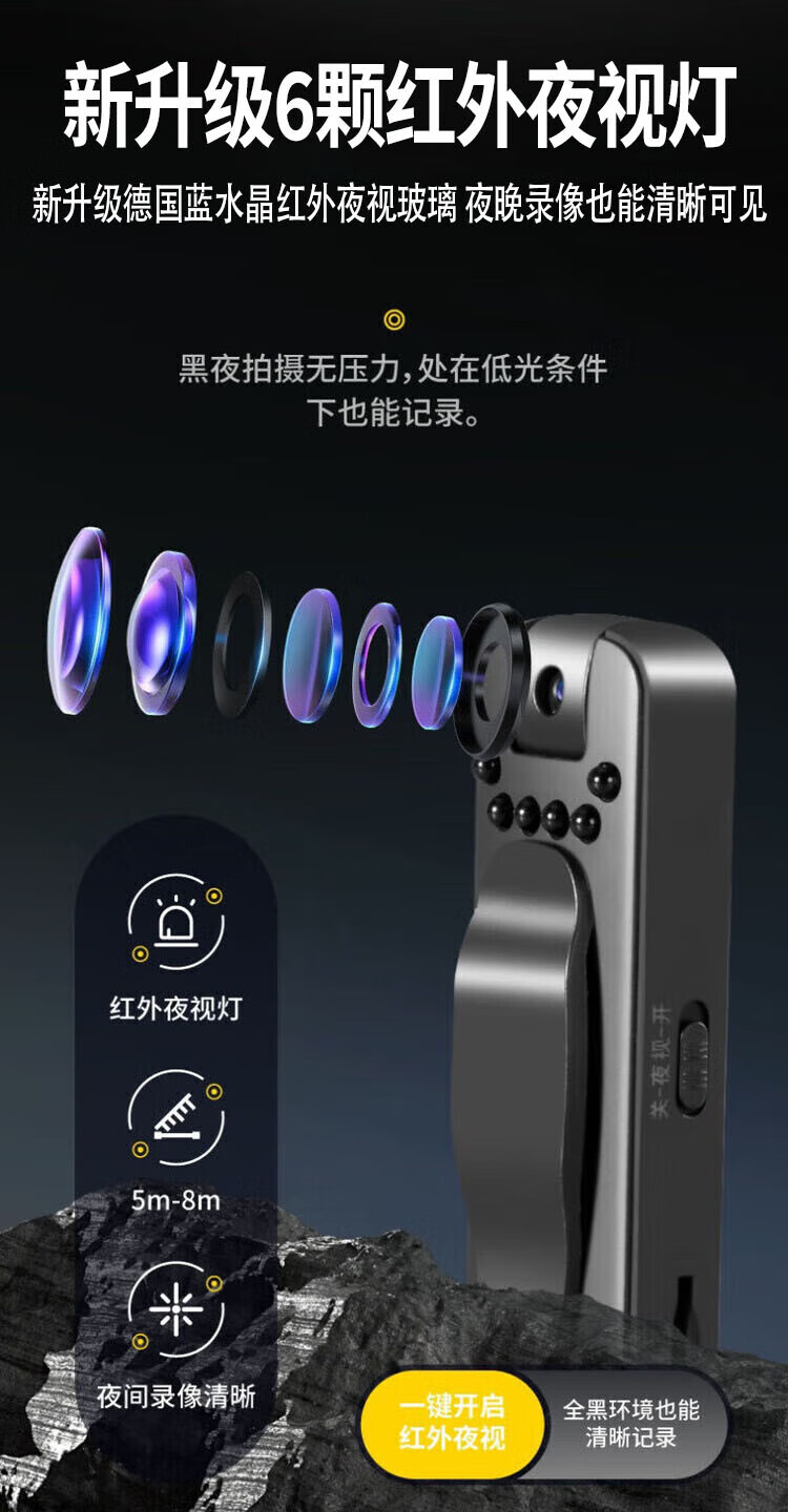 Tianjiliu German 4k high-definition conference recorder DV camera camera high-definition 1920p surveillance outdoor portable video recorder wearable clip-on video artifact German 5k ultra-clear + mobile phone interconnection + free adapter German 5k ultra-clear + no memory card version