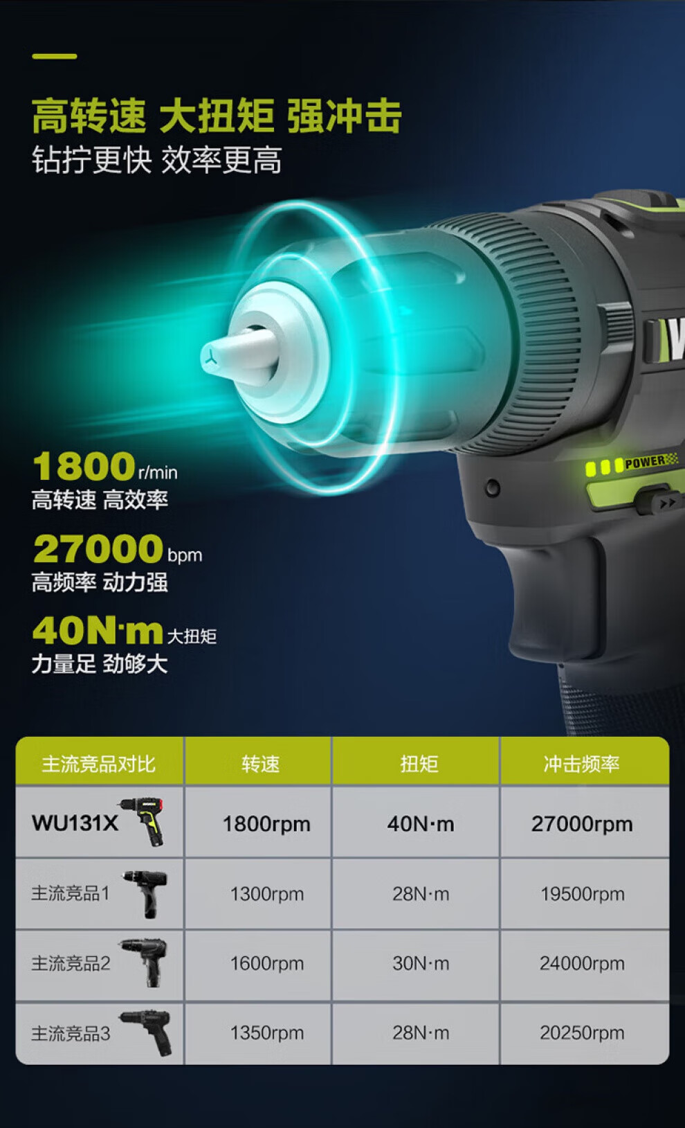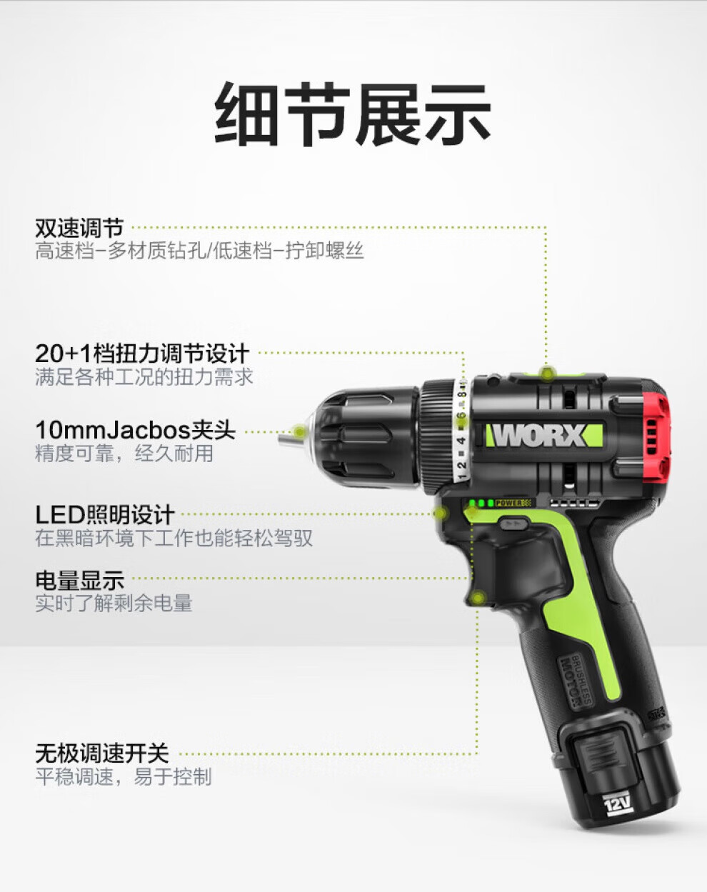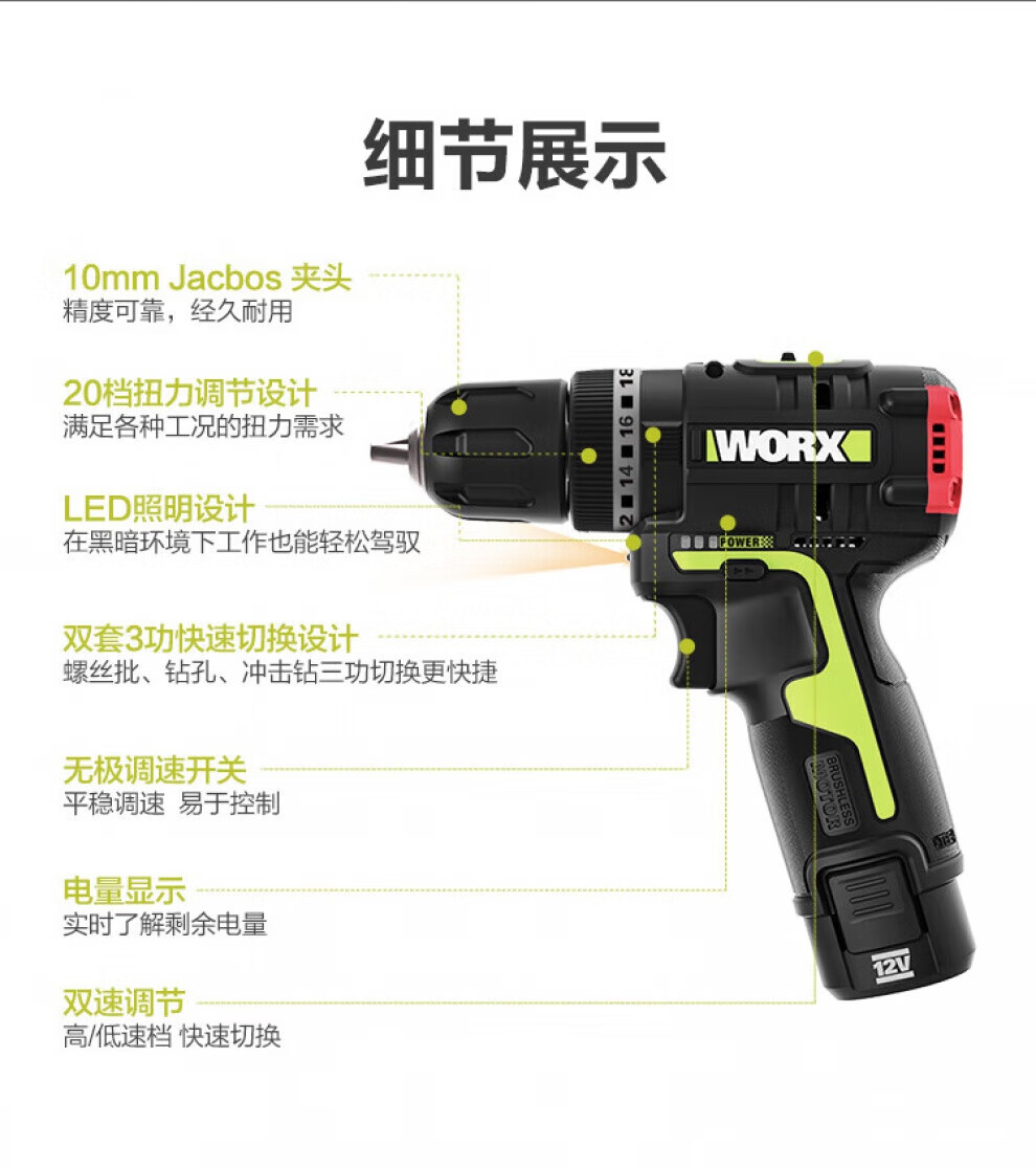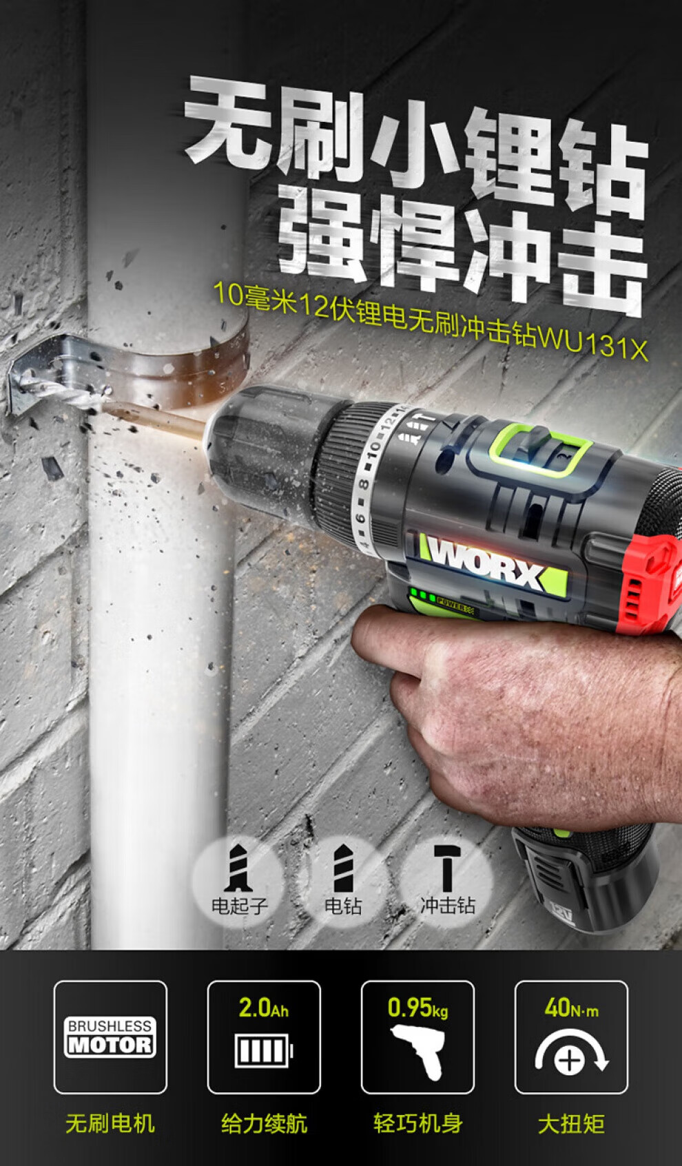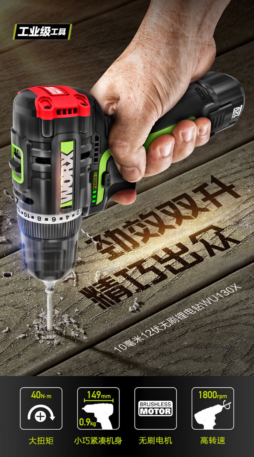WORX 12V brushless lithium impact drill WU130X multifunctional hand drill driver electric screwdriver power tool WU130X bare metal without accessories