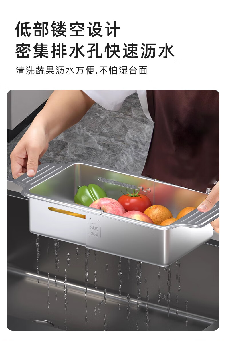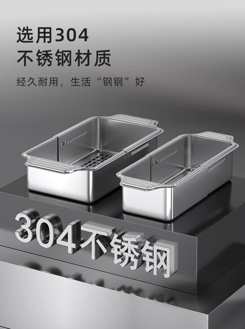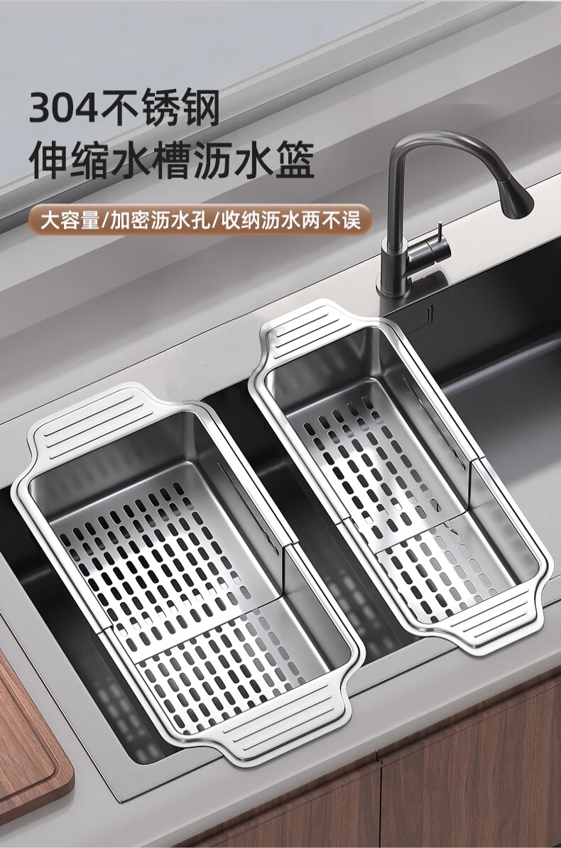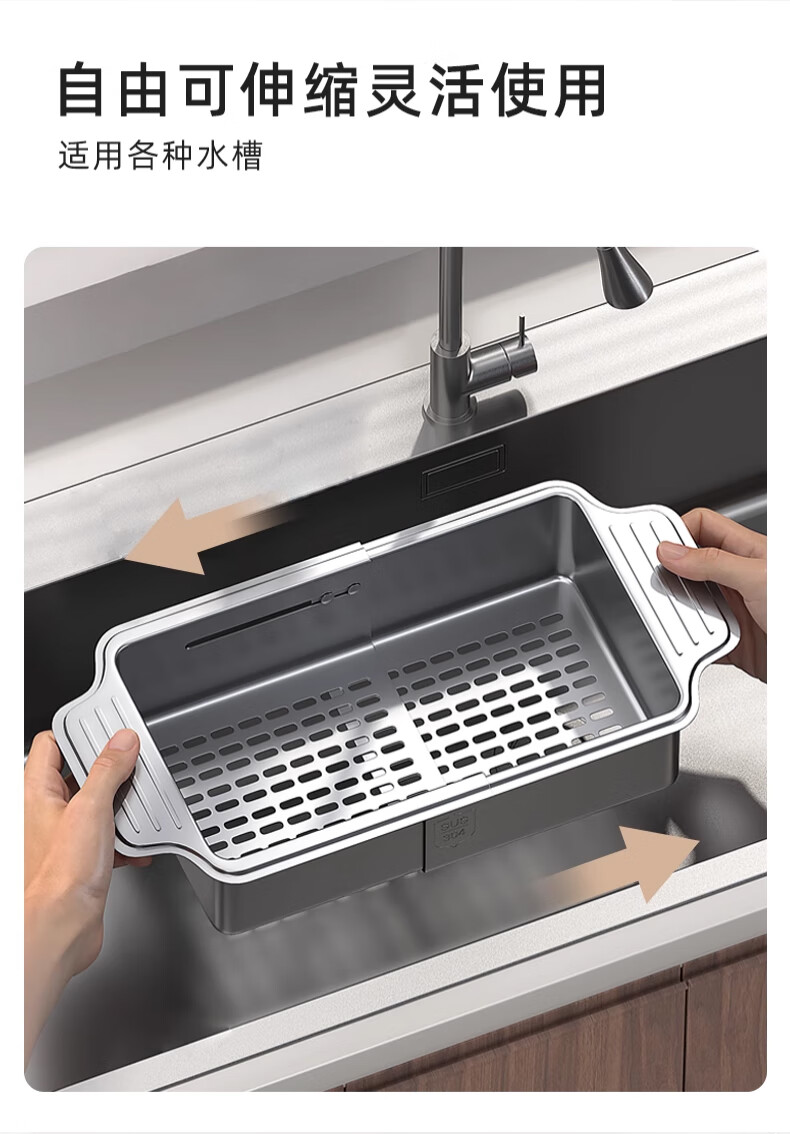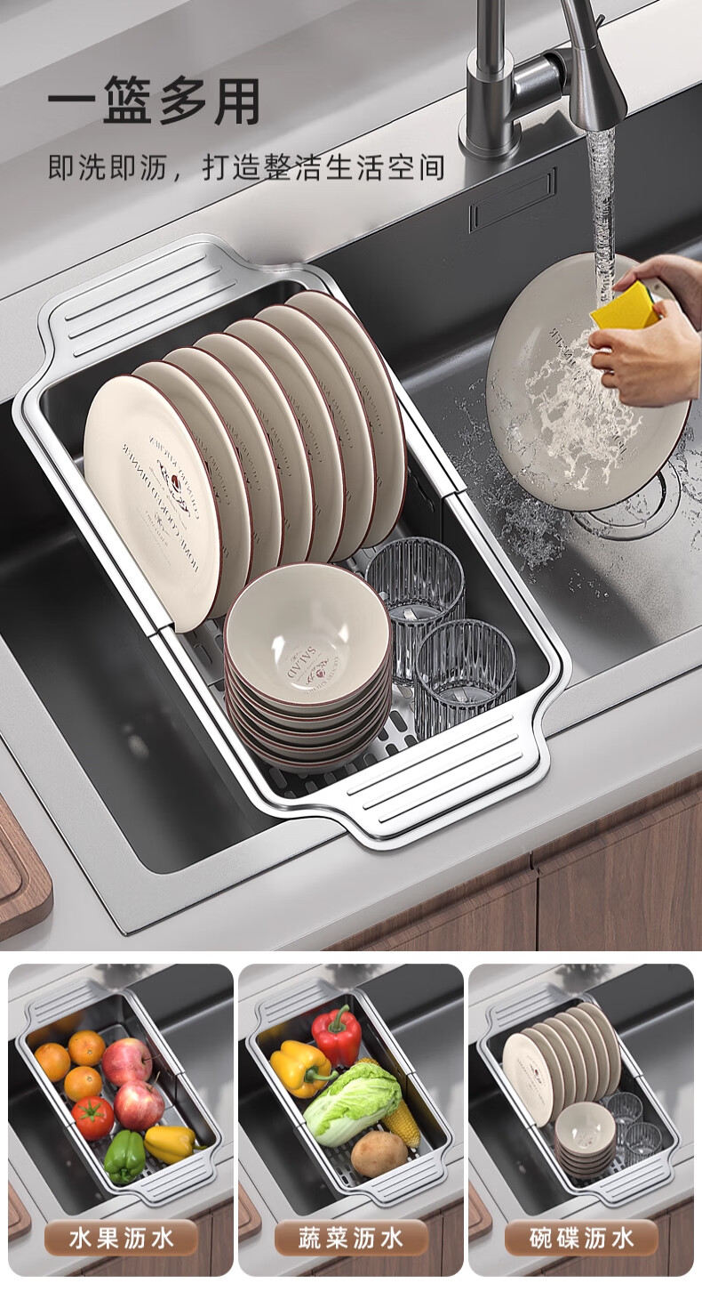 Jiudulong kitchen sink drain rack 304 stainless steel telescopic drain basket new style bowl and chopsticks storage rack above the sink retractable 304 drain basket - large size