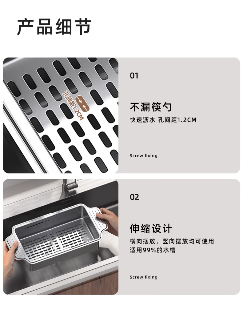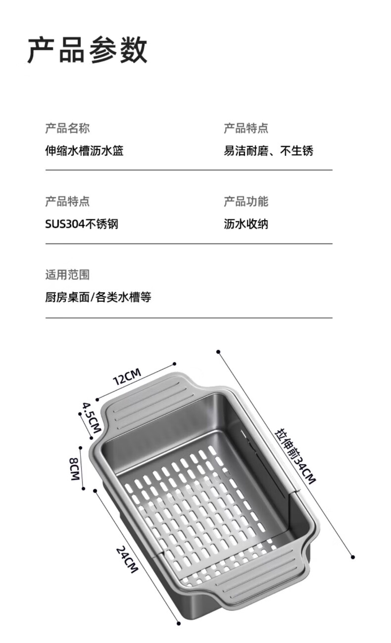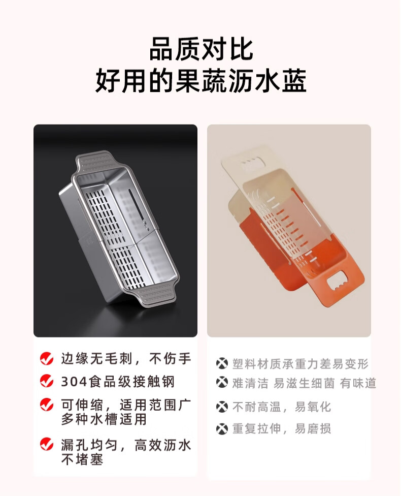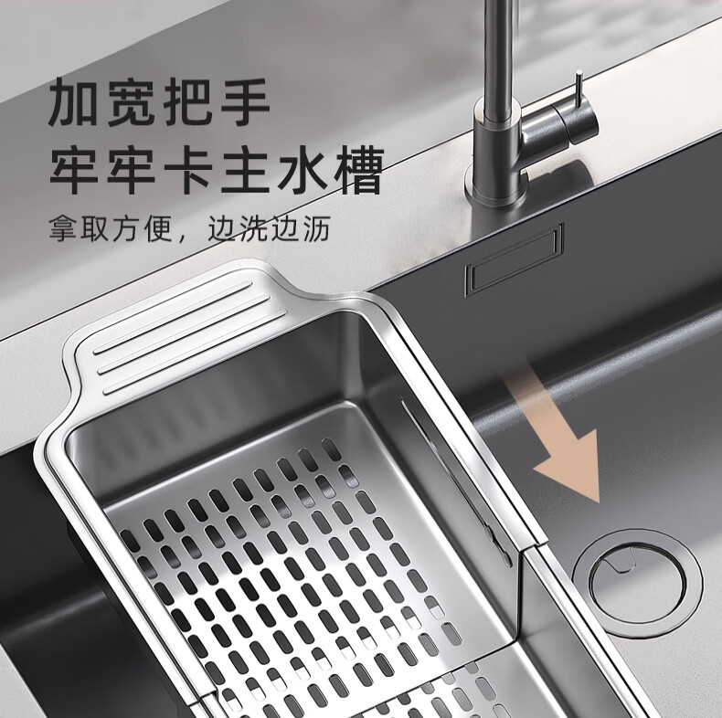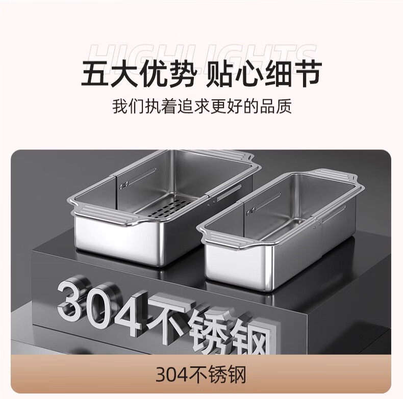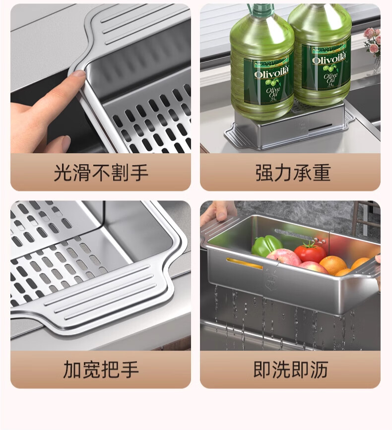 Jiudulong kitchen sink drain rack 304 stainless steel telescopic drain basket new style bowl and chopsticks storage rack above the sink retractable 304 drain basket - large size