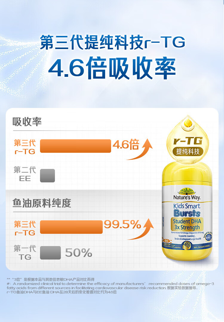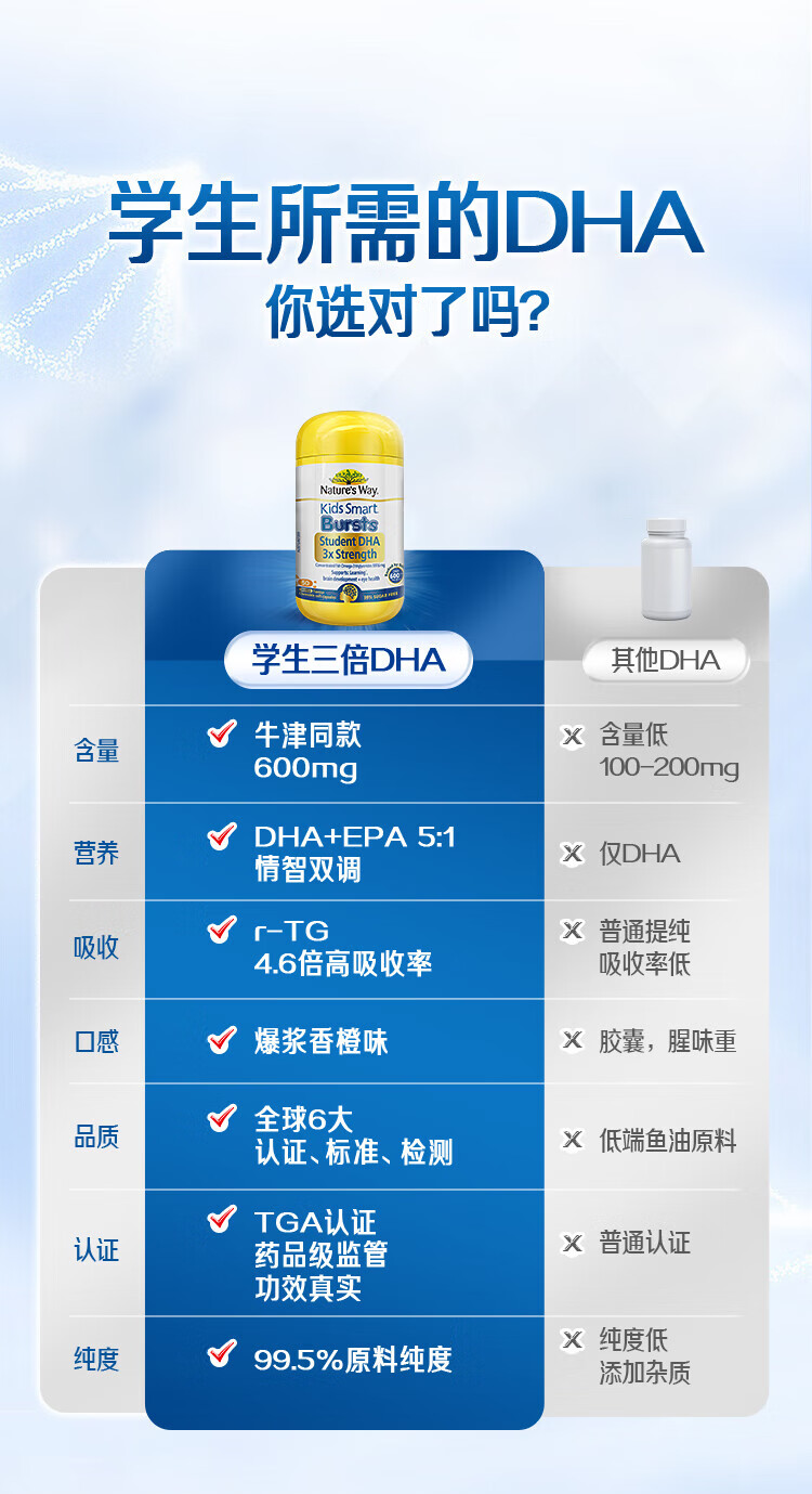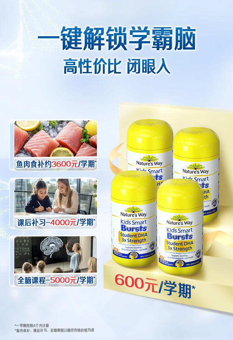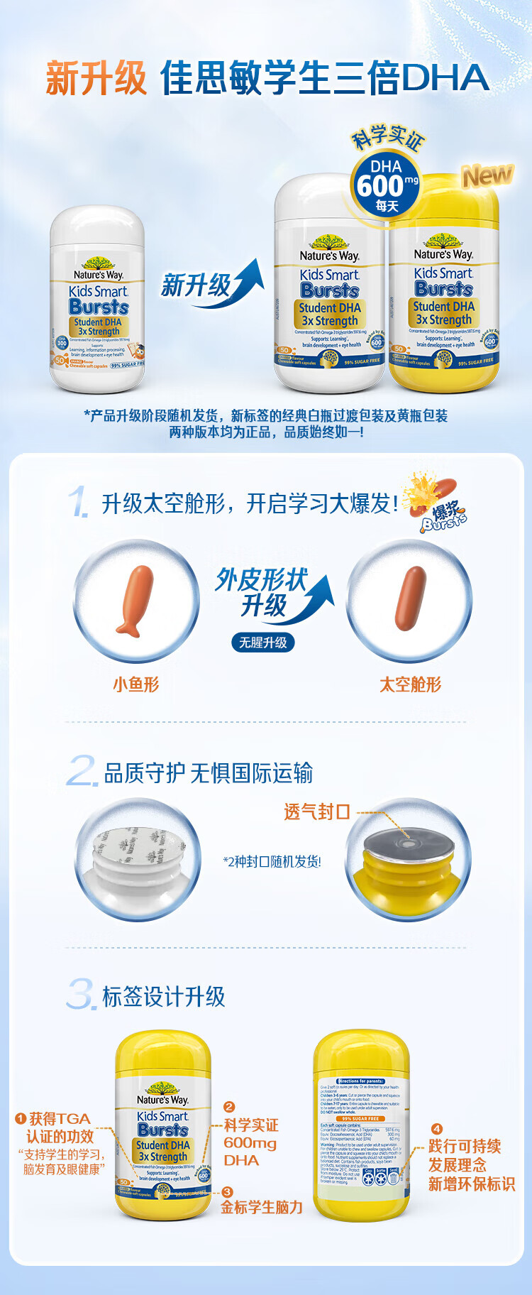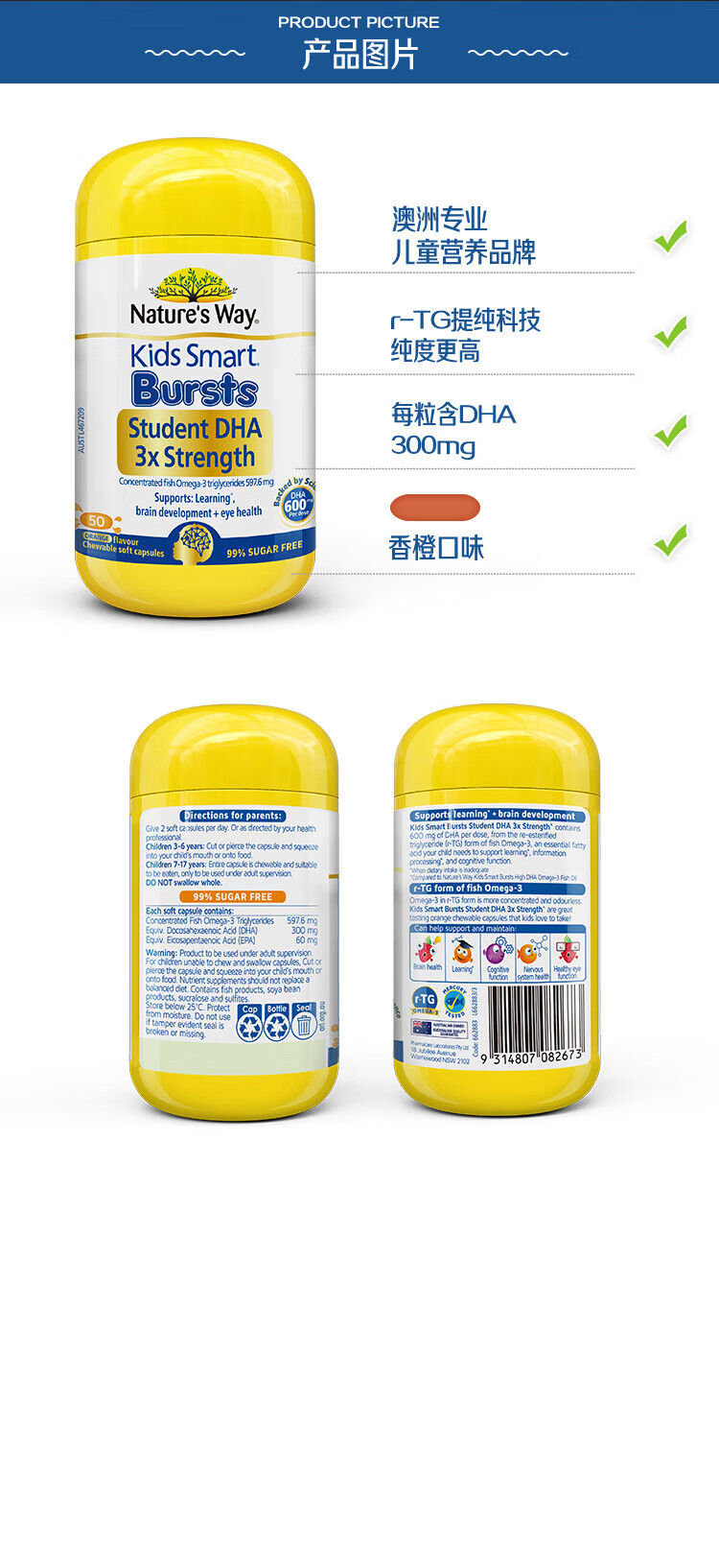 Nature's Way Student's Triple High Content DHA Fish Oil Teenagers' Brain and Memory Booster No Odor Xueba Pill Triple DHA Fish Oil 50 capsules*1 bottle
