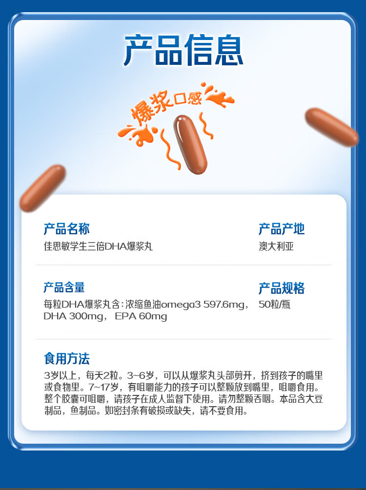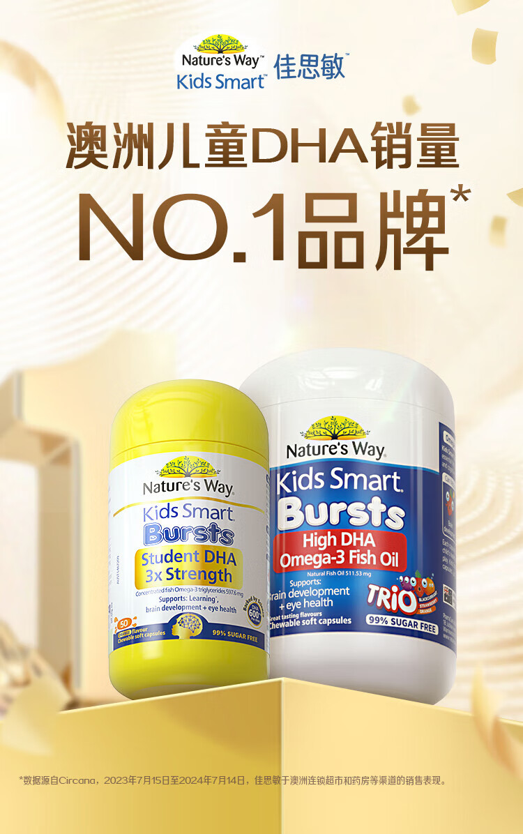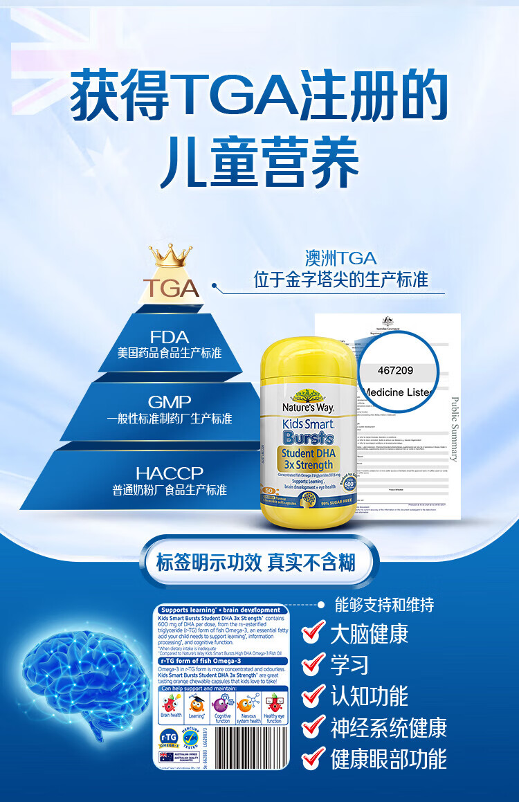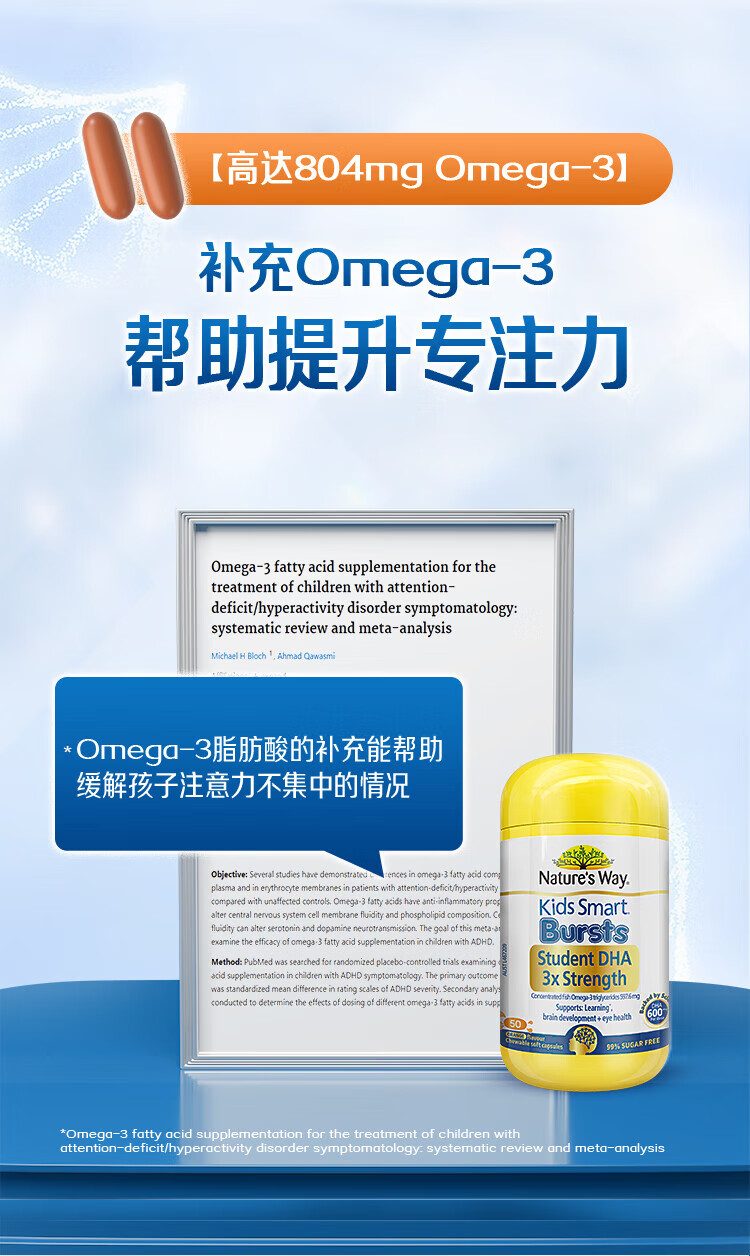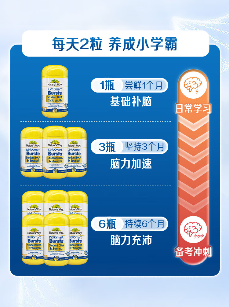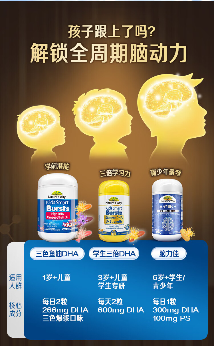 Nature's Way Student's Triple High Content DHA Fish Oil Teenagers' Brain and Memory Booster No Odor Xueba Pill Triple DHA Fish Oil 50 capsules*1 bottle
