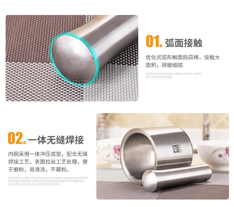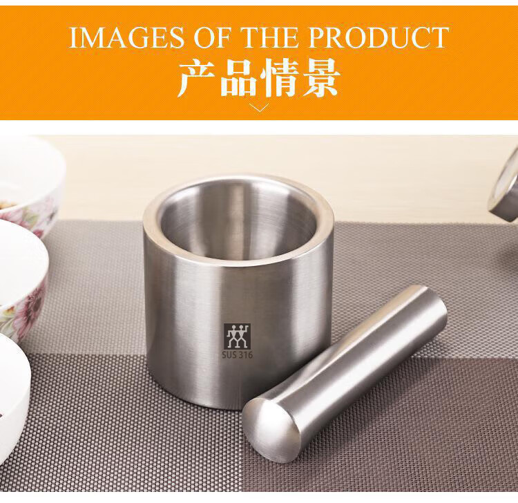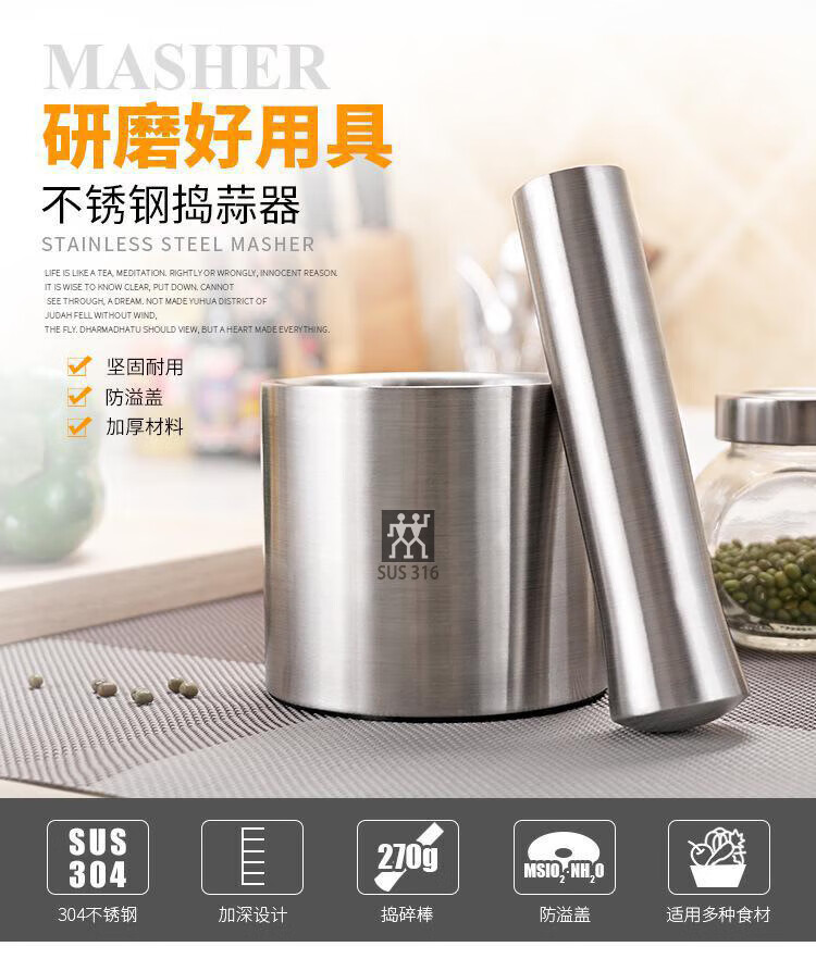 Zwilling (ZWILLING) German tail goods 304 stainless steel masher solid garlic masher household grinder medicine jar bowl 316 garlic masher