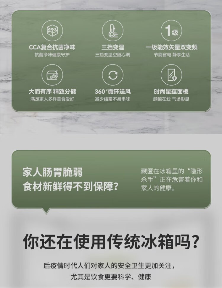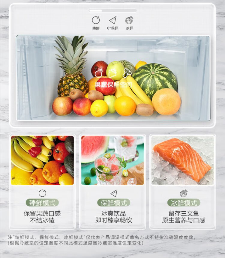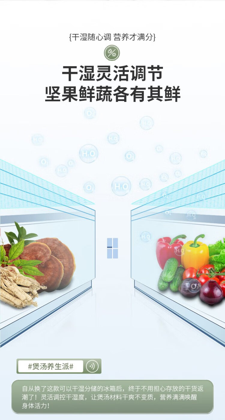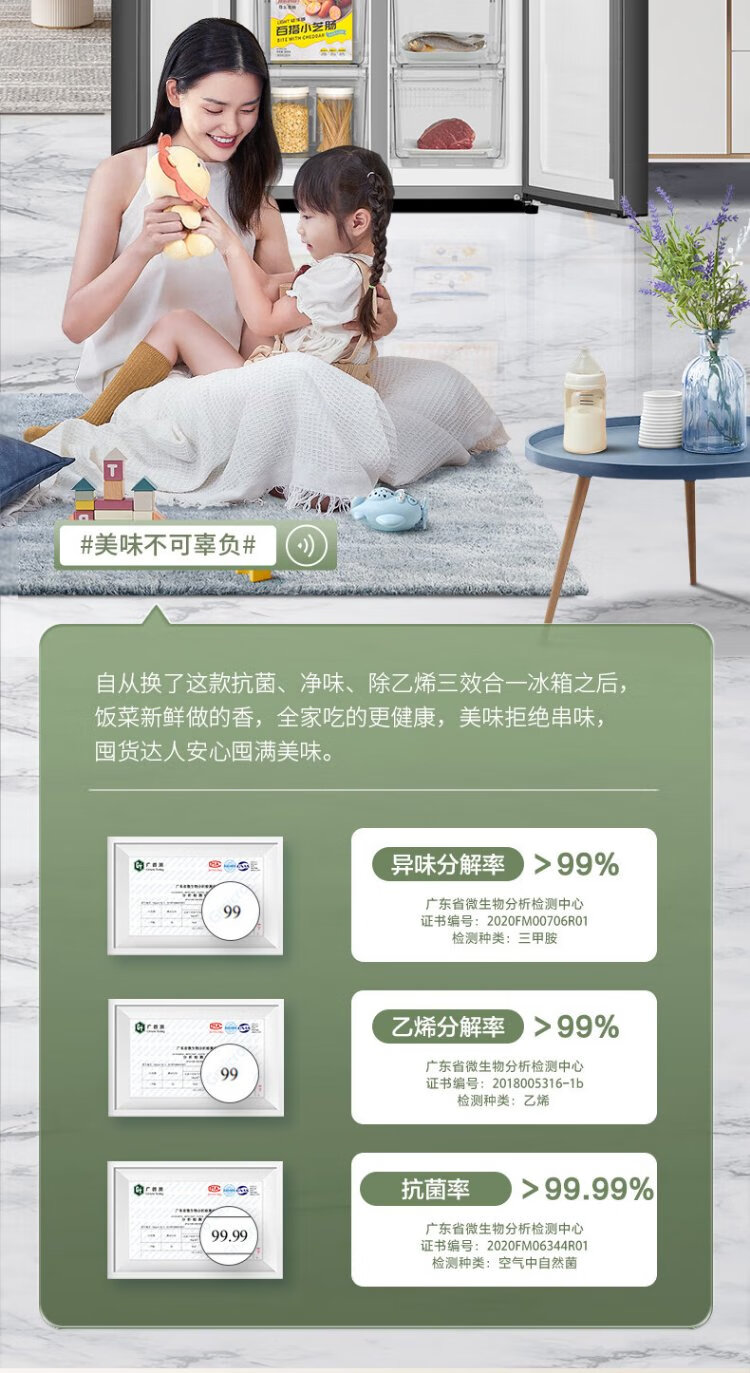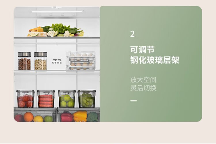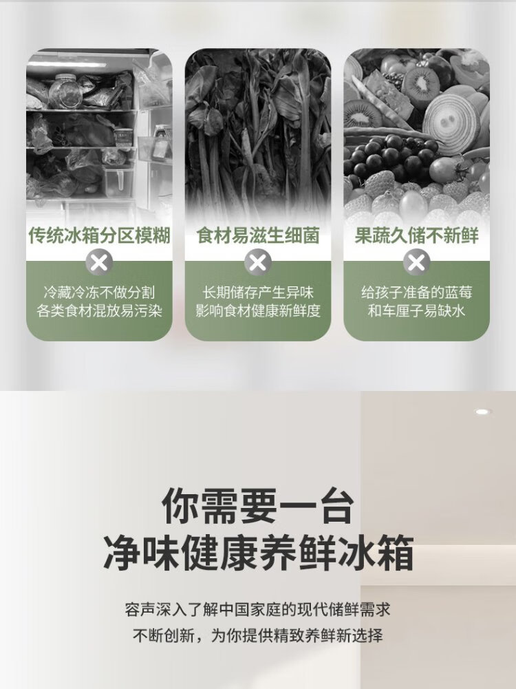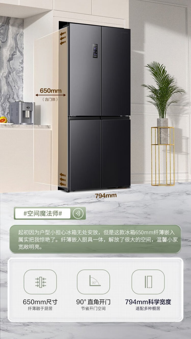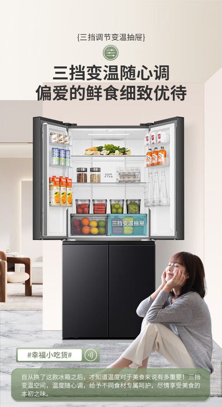 Rongsheng 460 liters cross-fold four-door refrigerator with separate dry and wet storage, air-cooled, frost-free, dual frequency conversion, dual cycle, first-level energy-saving, maternal and infant home, ultra-thin, large capacity, trade-in 460 liters, full space purification + separate wet and dry storage