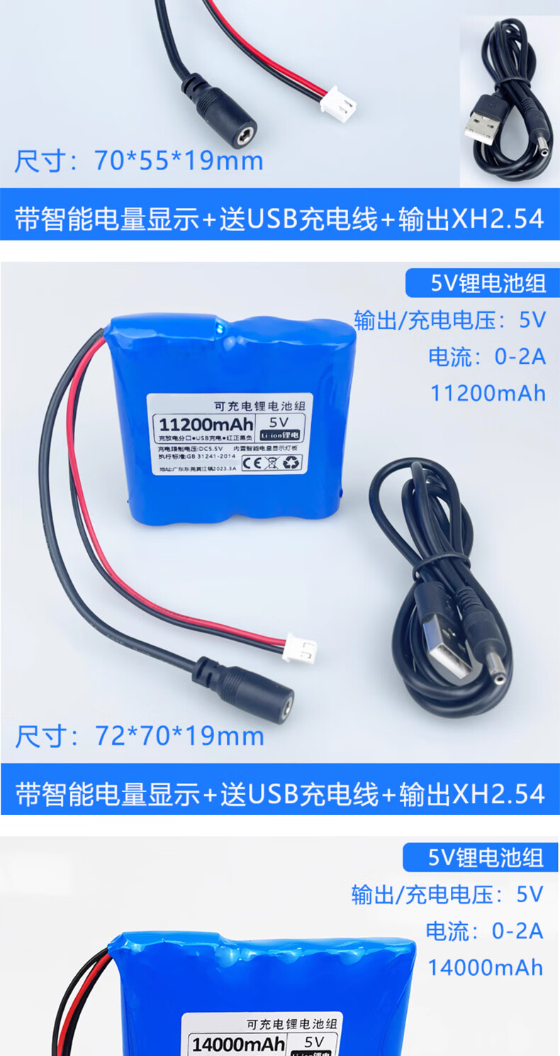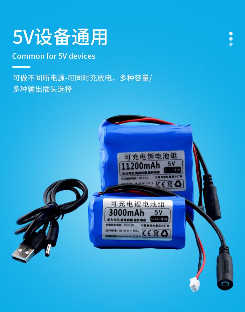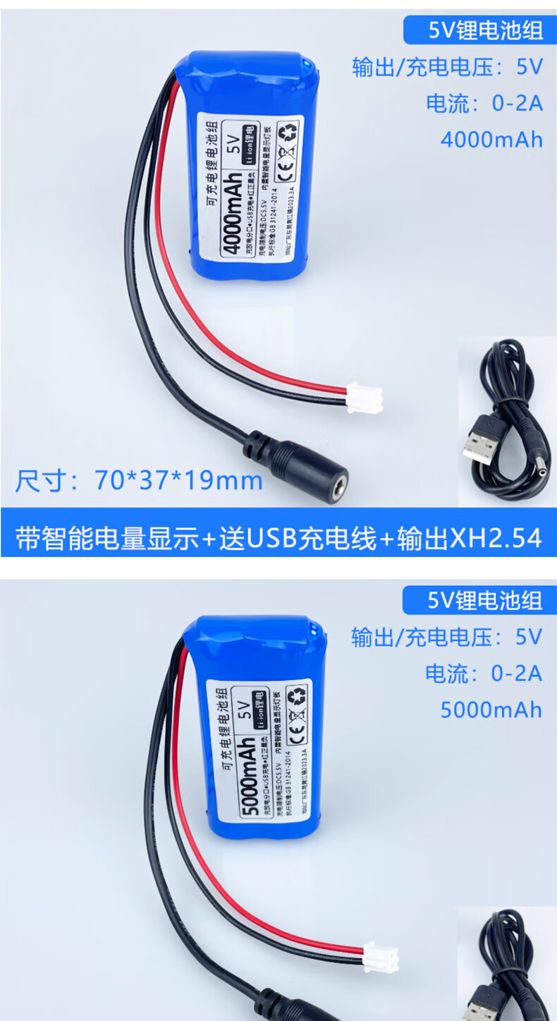 Smart Car Lithium Battery Large Capacity LED Light USB Fan Router Light Cat Wifi Bluetooth Module 5000mAh5V Free 2A Charging Cable No Specifications