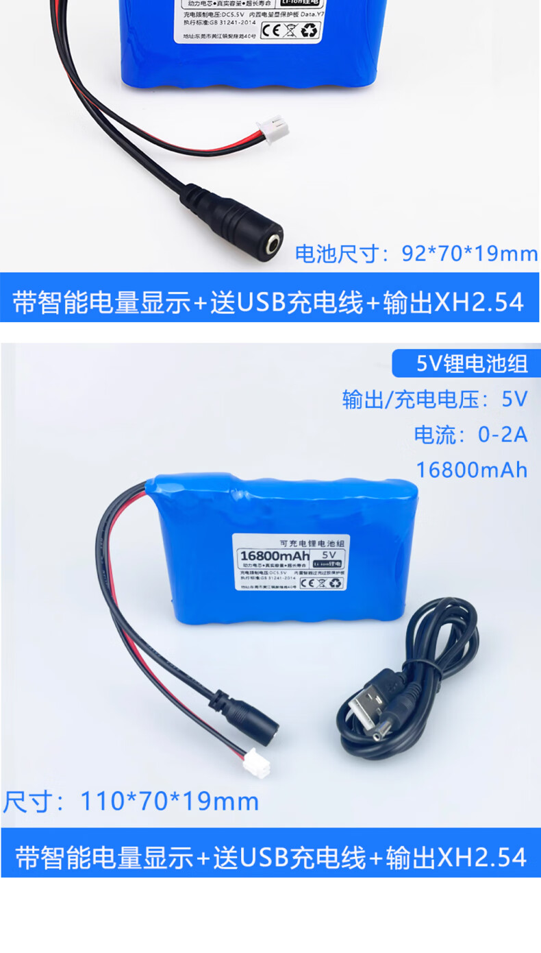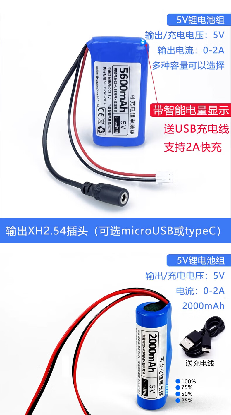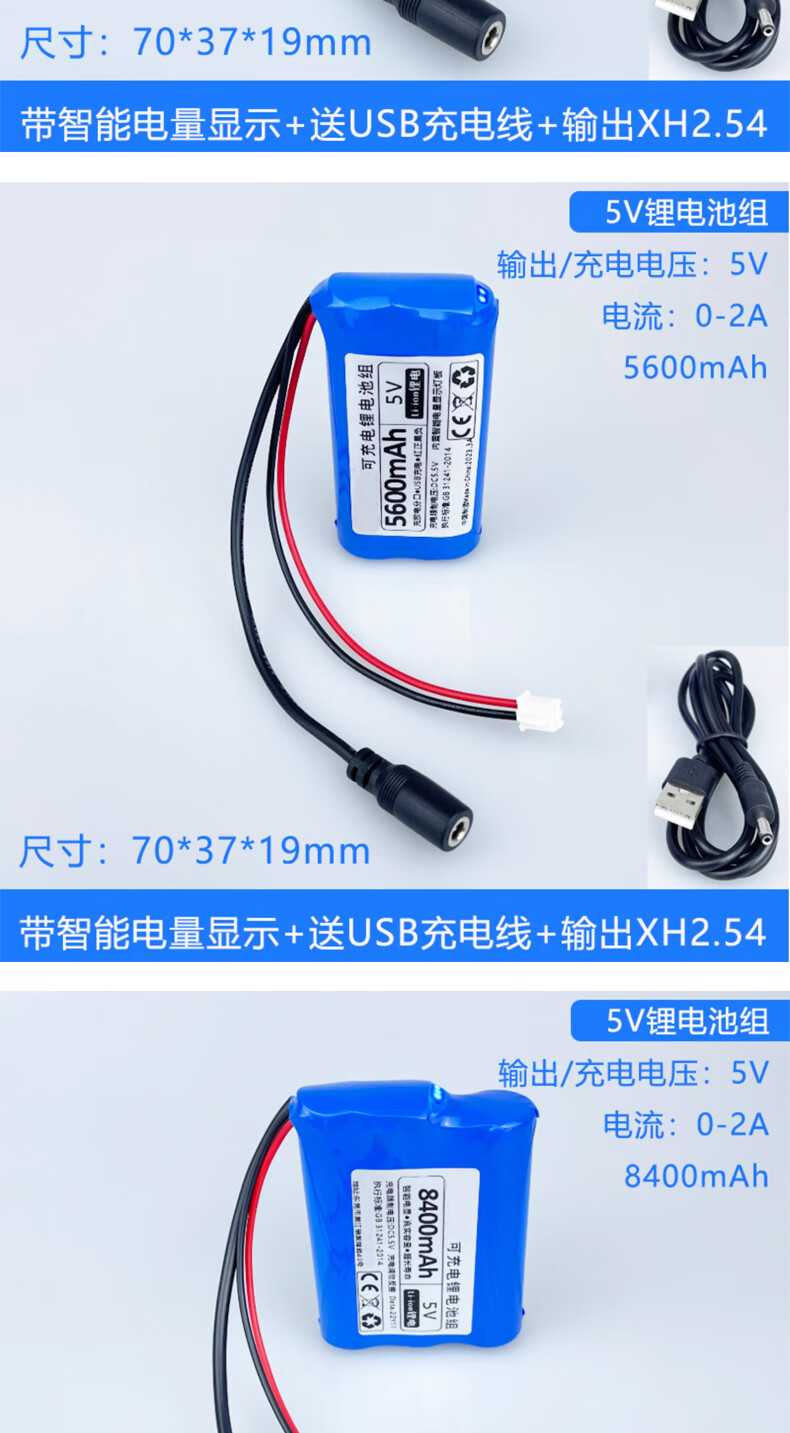 Smart Car Lithium Battery Large Capacity LED Light USB Fan Router Light Cat Wifi Bluetooth Module 5000mAh5V Free 2A Charging Cable No Specifications
